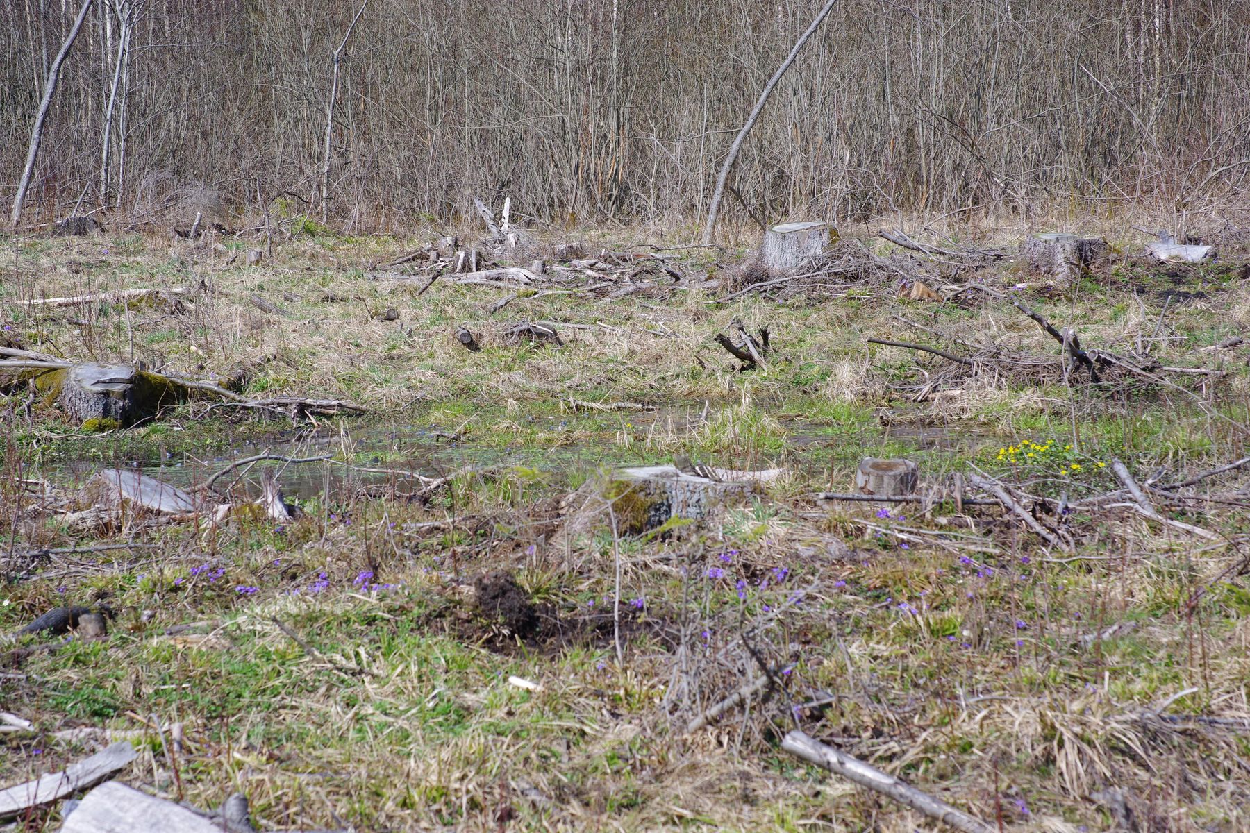 ein Kahlschlag vom vorletzten Winter, bisher sich selbst überlassen und nicht umgepflügt - teilweise recht nass