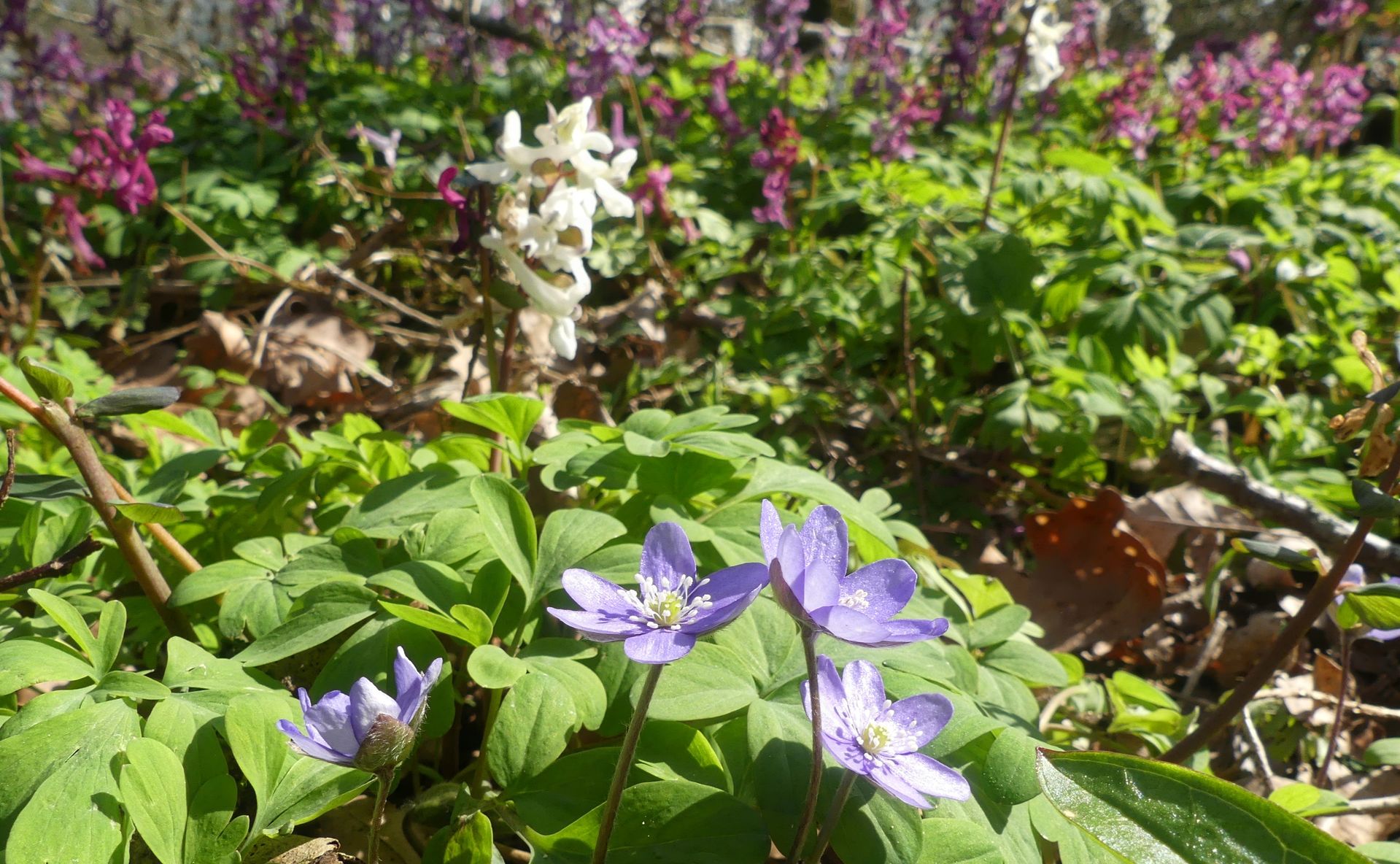Buschwindröschen immer wieder einmal in Rosa oder Lila