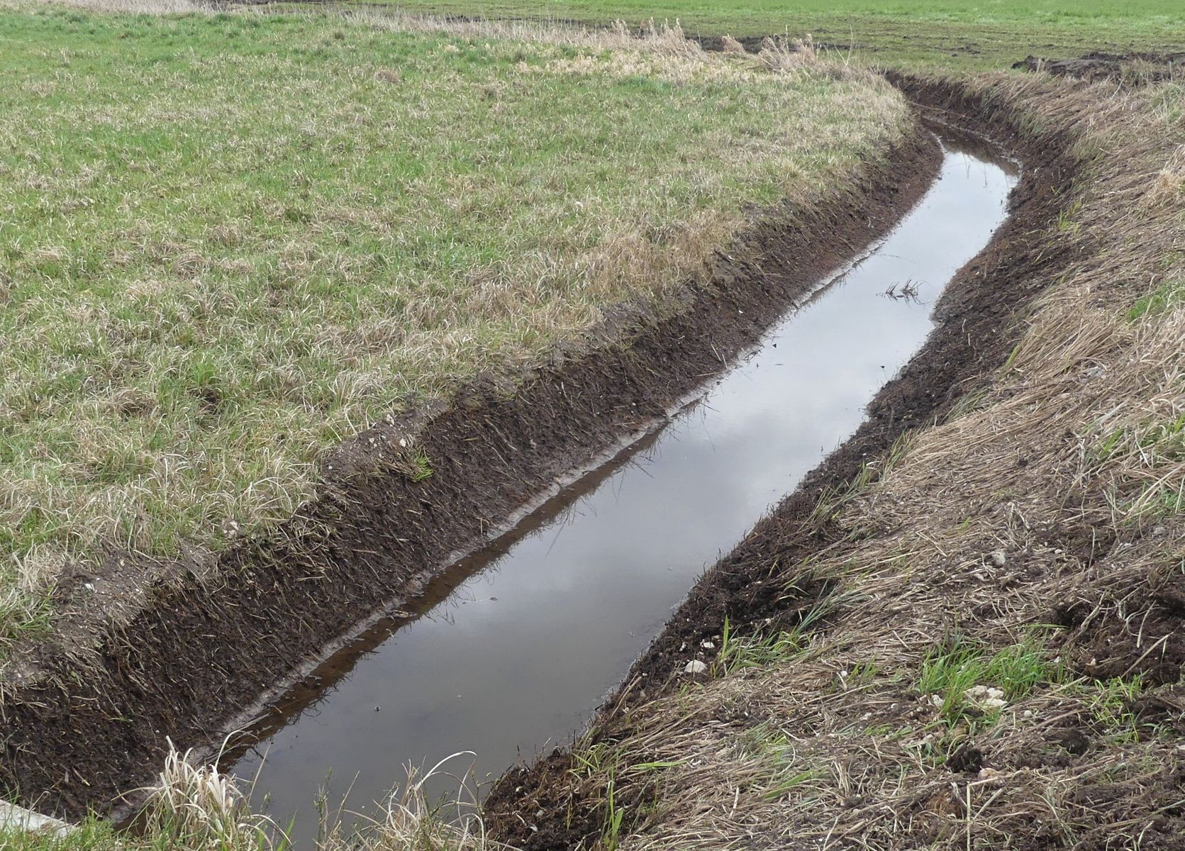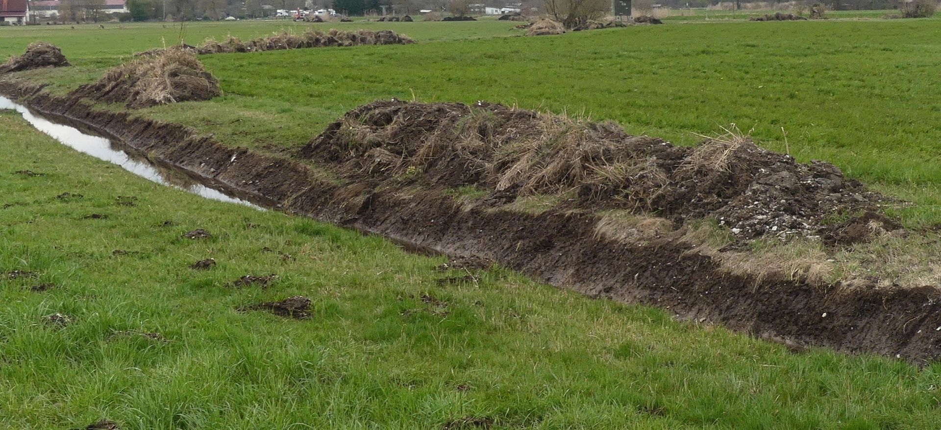 Von Bewuchs gesäuberte neue Gräben. Ca. 1 Meter tief und ca. 2 Meter breit. Perfekt zur Entwässerung.