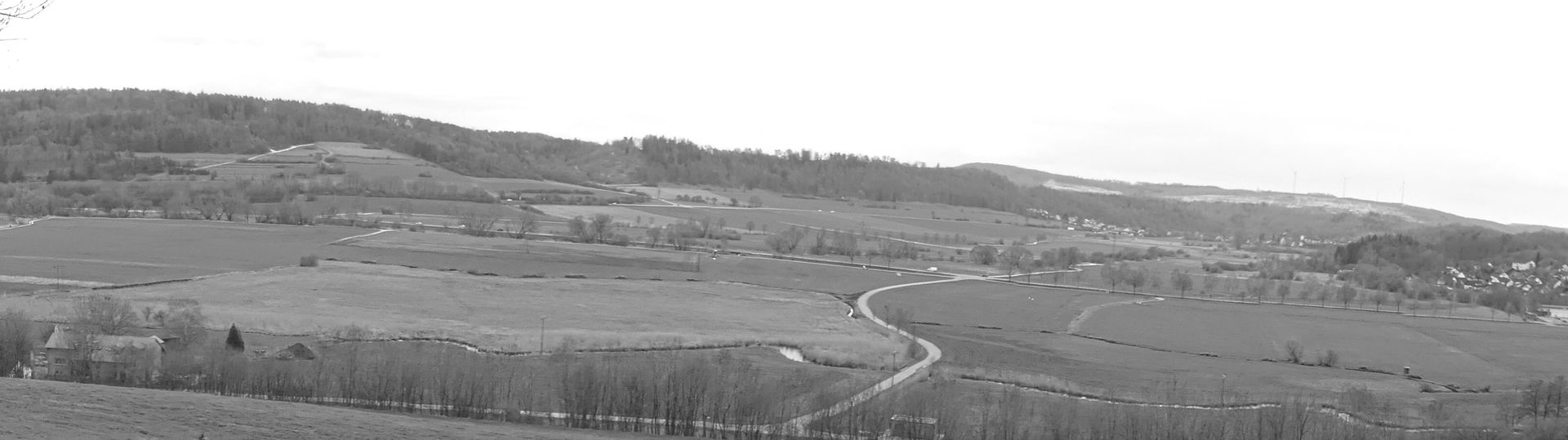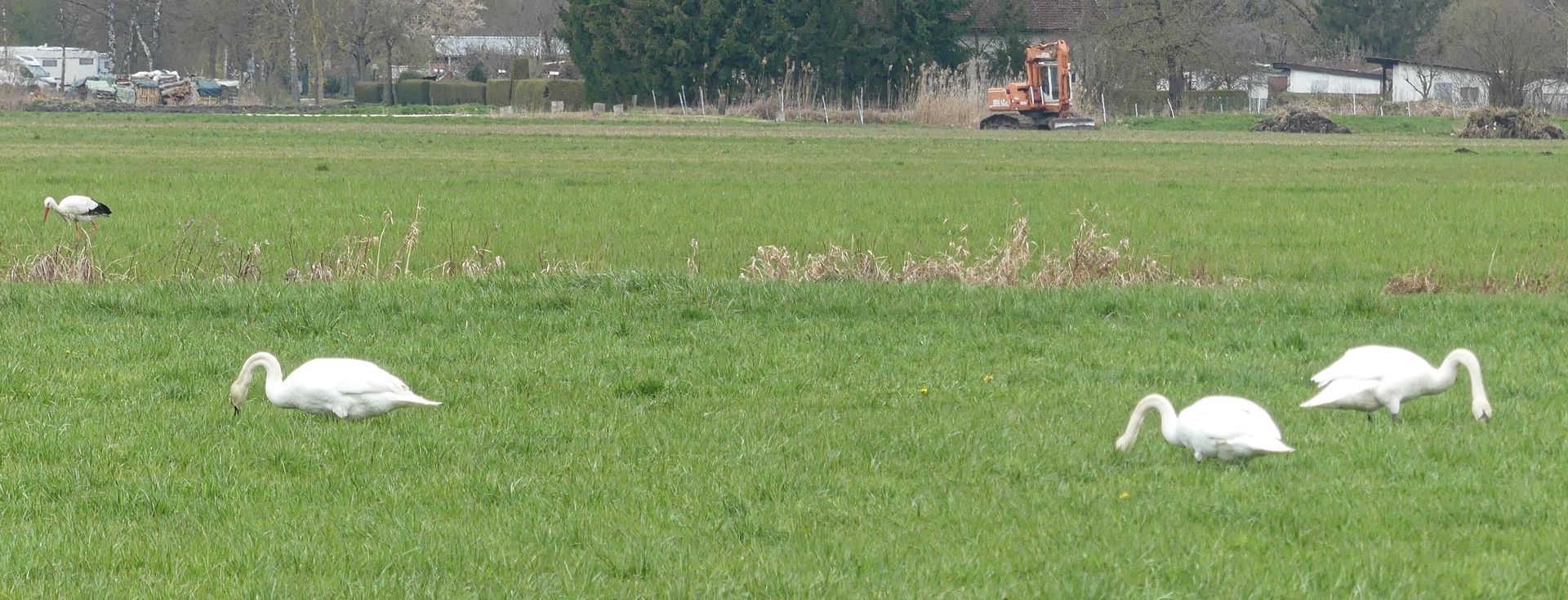 Am Stadtrand mit landwirtschaftlich genutzten Feuchtwiesen, der Bagger und die Erdaushebungen im Hintergrund ...