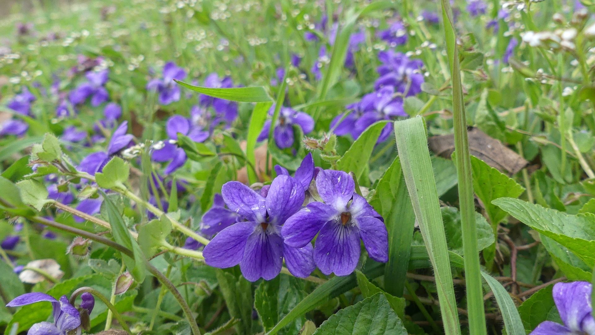 Ein Fleck mit ausschließlich diesen fast weißen Veilchen