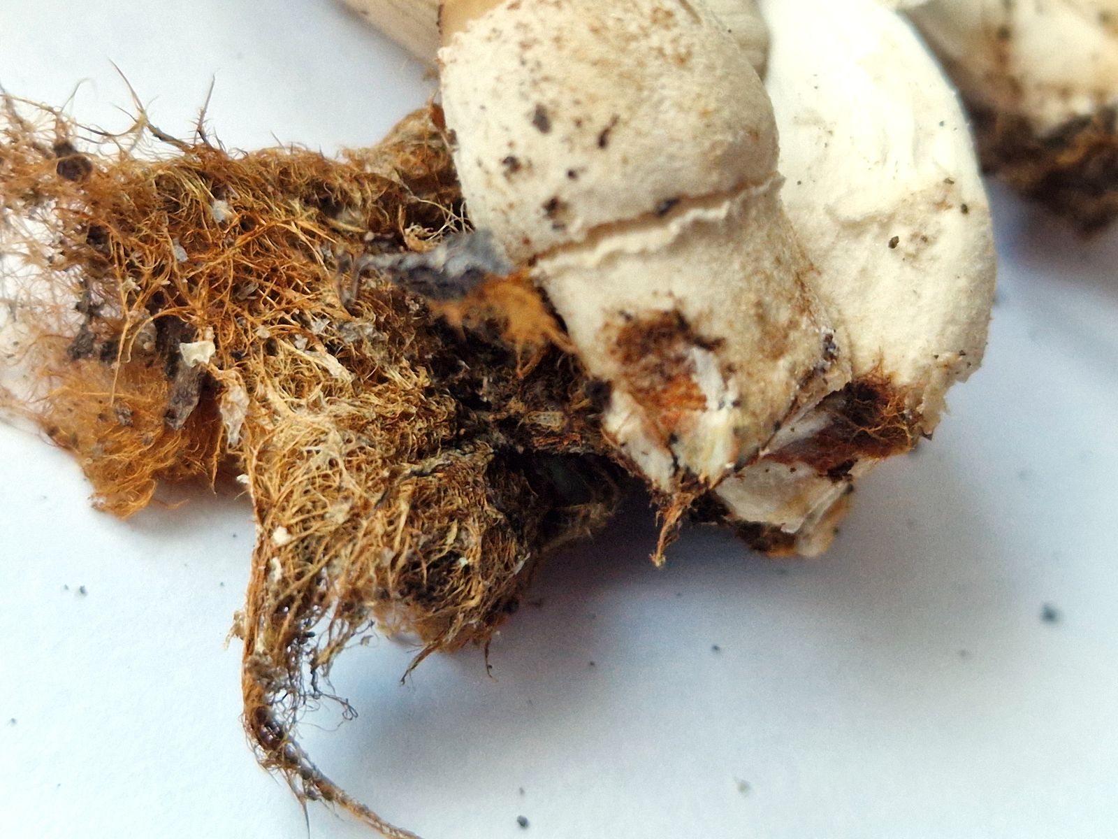 Unter den Fruchtkörper konnte man das Ozonium gut sehen wie ein filziger Teppich.