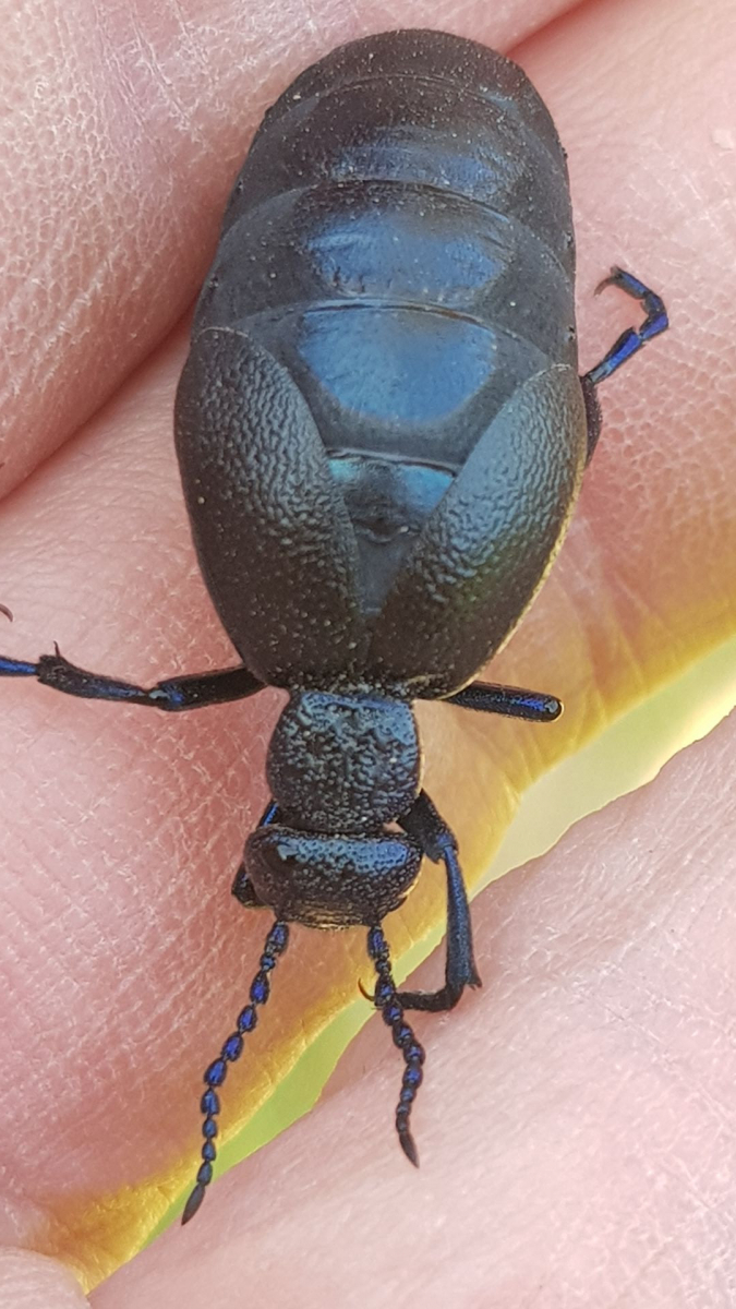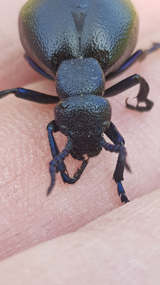 Schwarzblauer Ölkäfer. Hochgiftig und potentiell tödlich. Prost Mahlzeit!