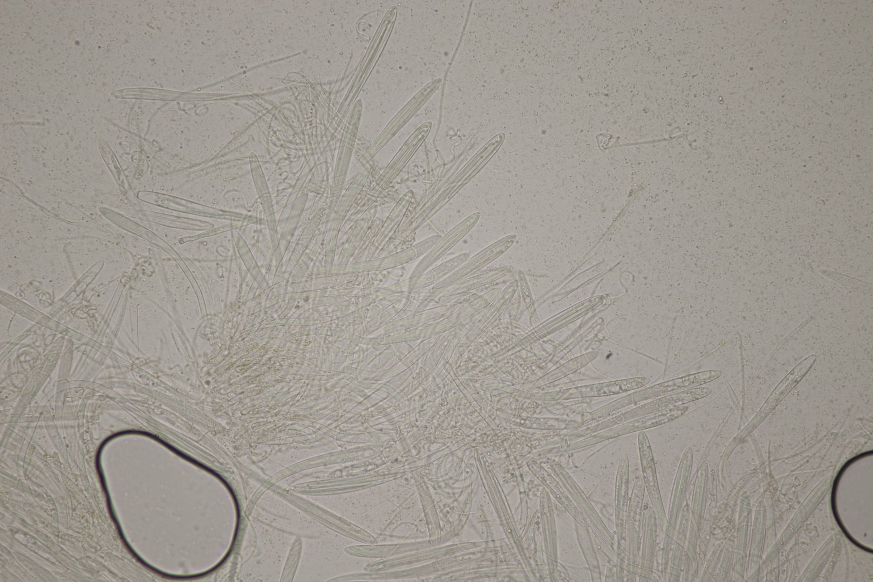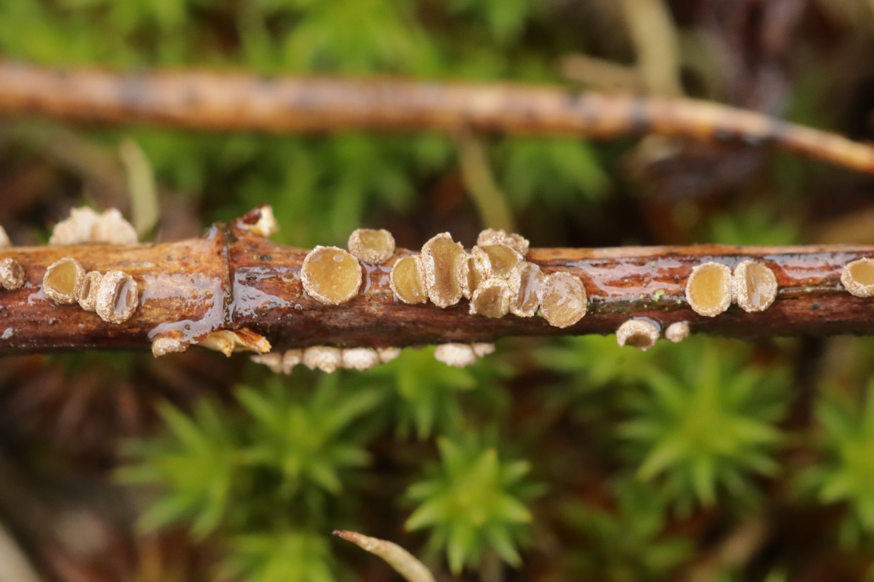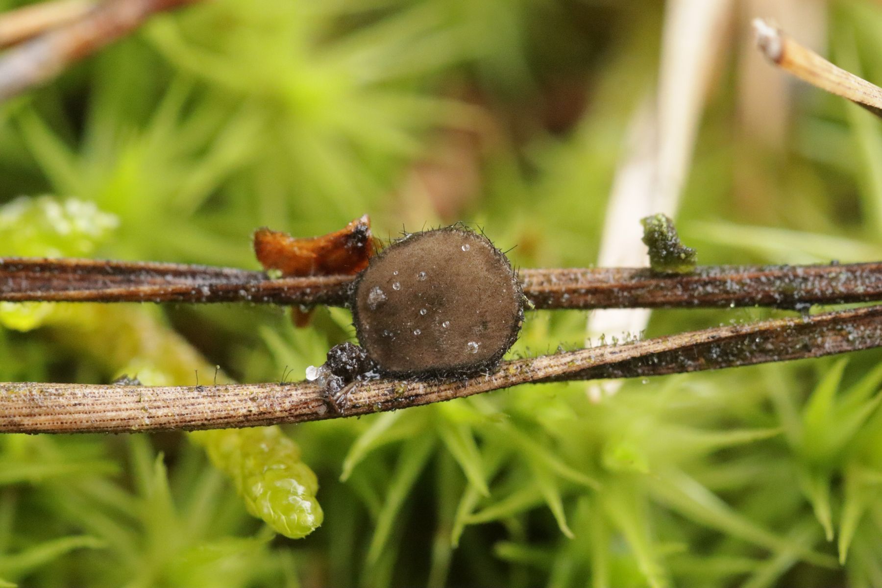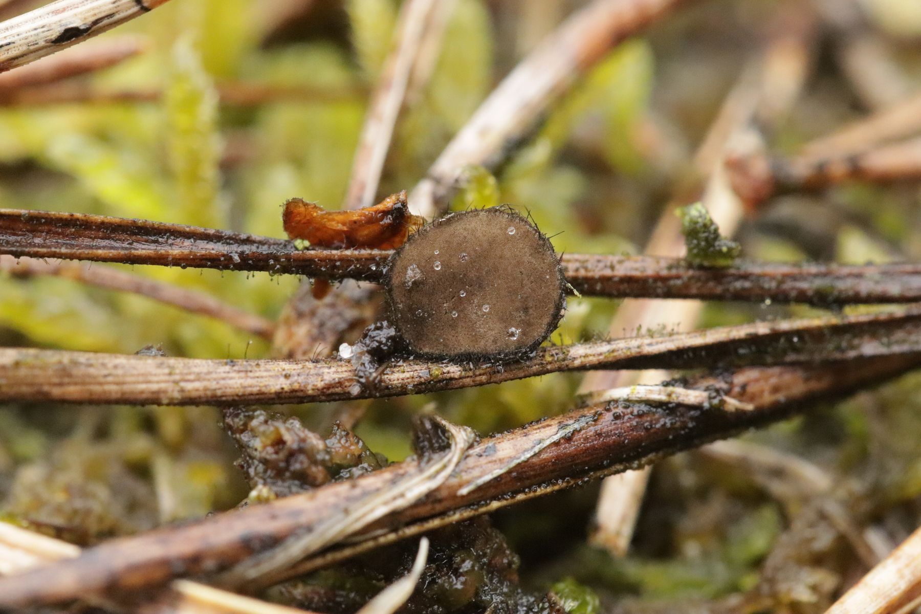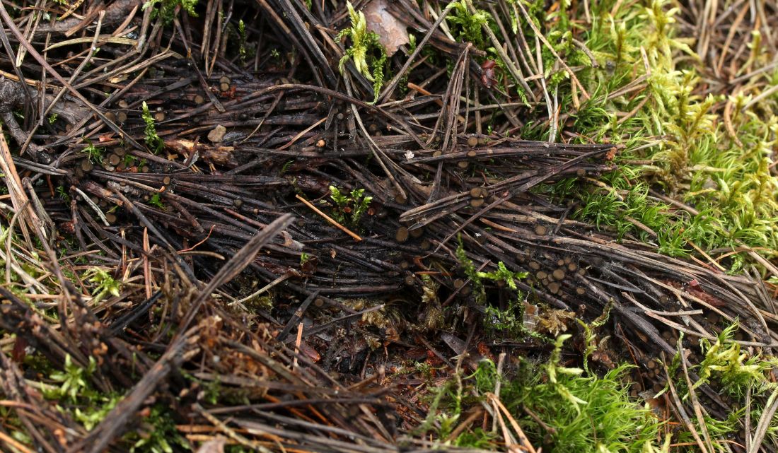 9. Und dann ein Griff in die feuchte Nadelstreu und die Nadel im Heuhaufen gefunden: Desmazierella acicola. Weitere Nachsuche hat dann keine weiteren Fruchtkörper zu Tage gebracht.