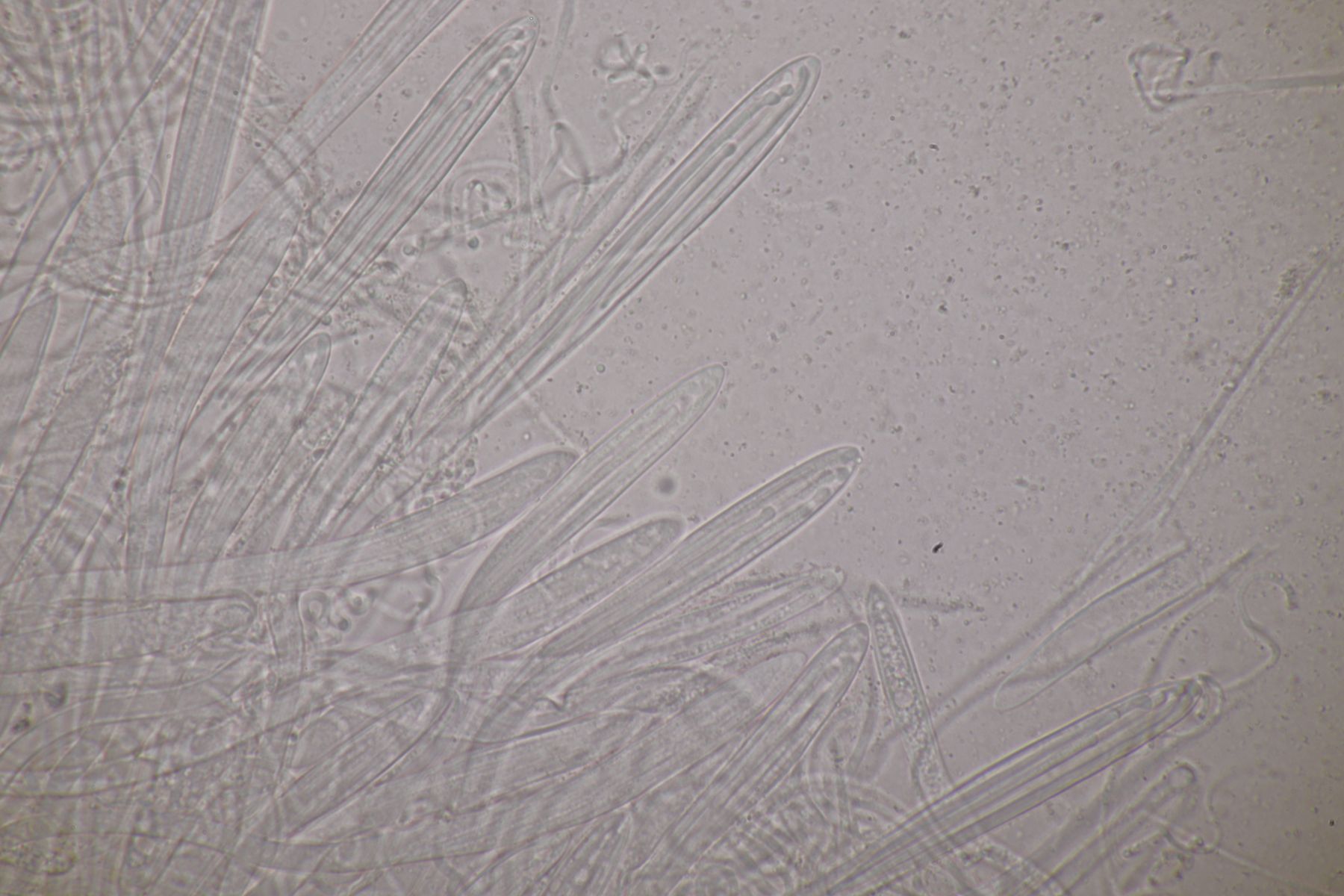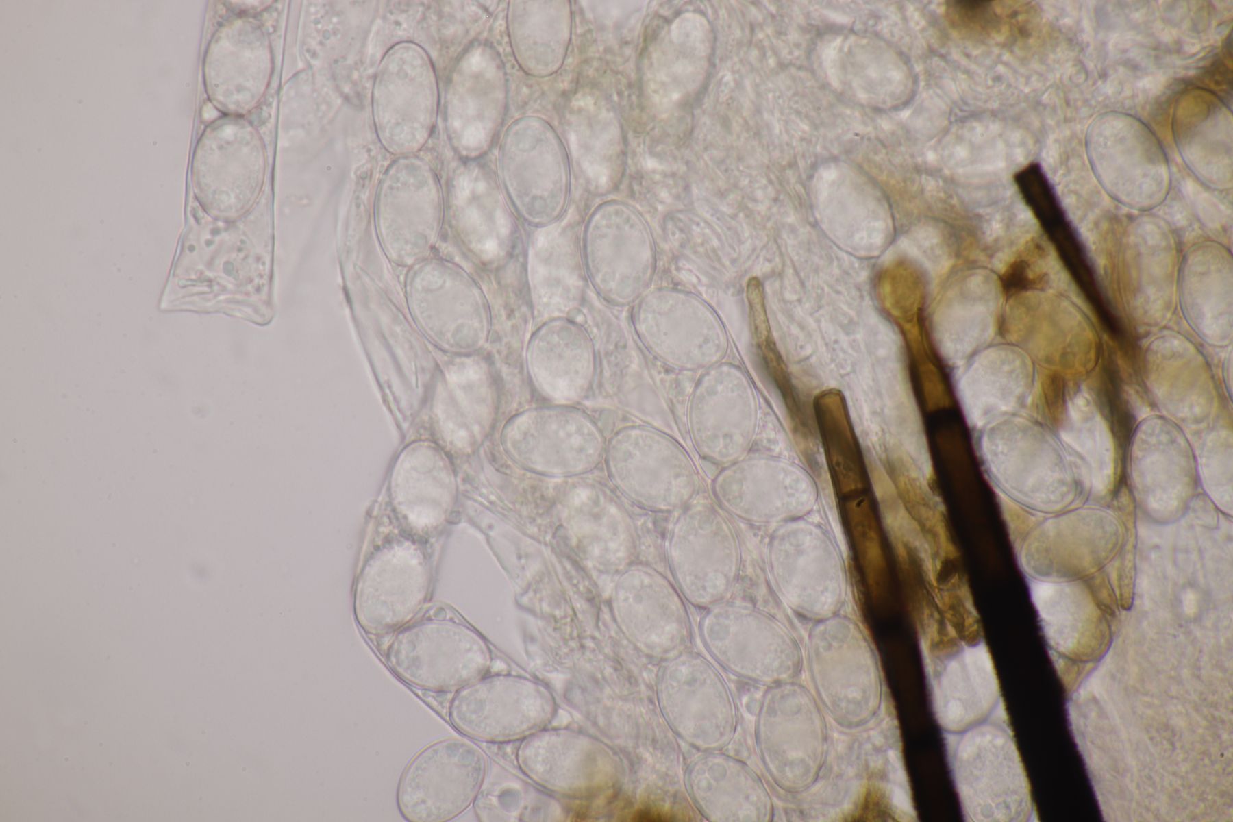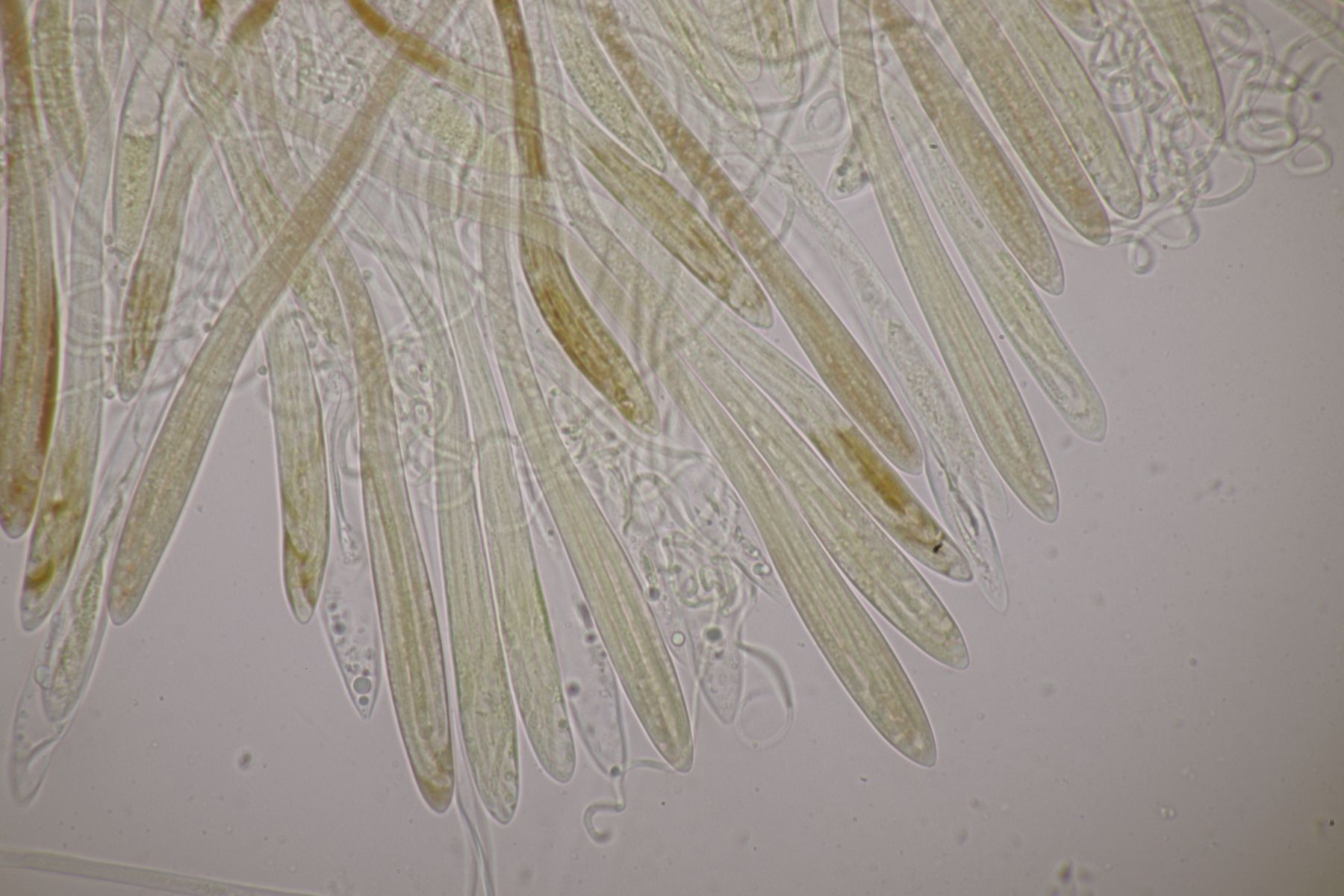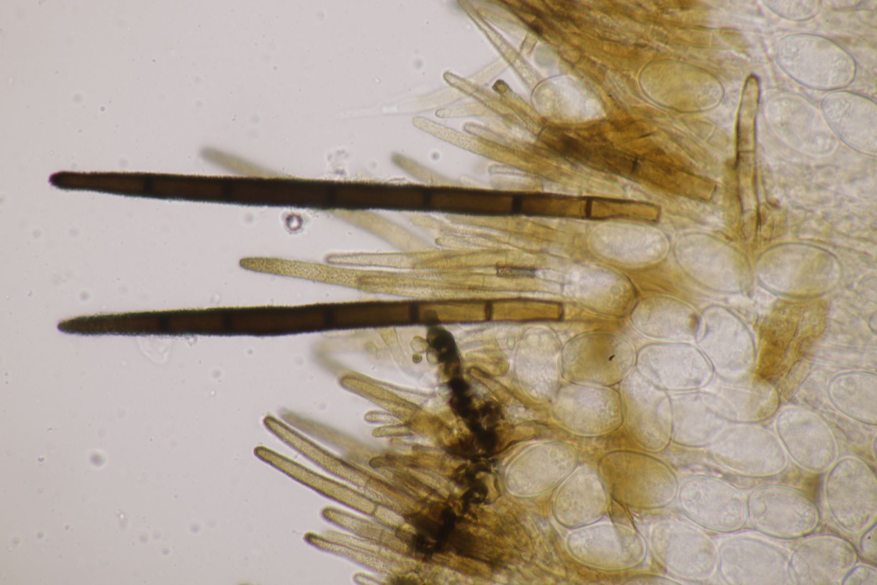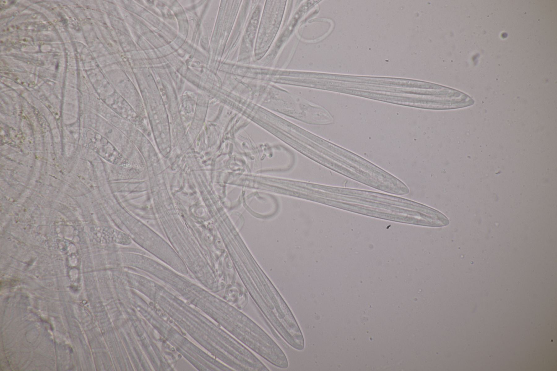 9. Und dann ein Griff in die feuchte Nadelstreu und die Nadel im Heuhaufen gefunden: Desmazierella acicola. Weitere Nachsuche hat dann keine weiteren Fruchtkörper zu Tage gebracht.