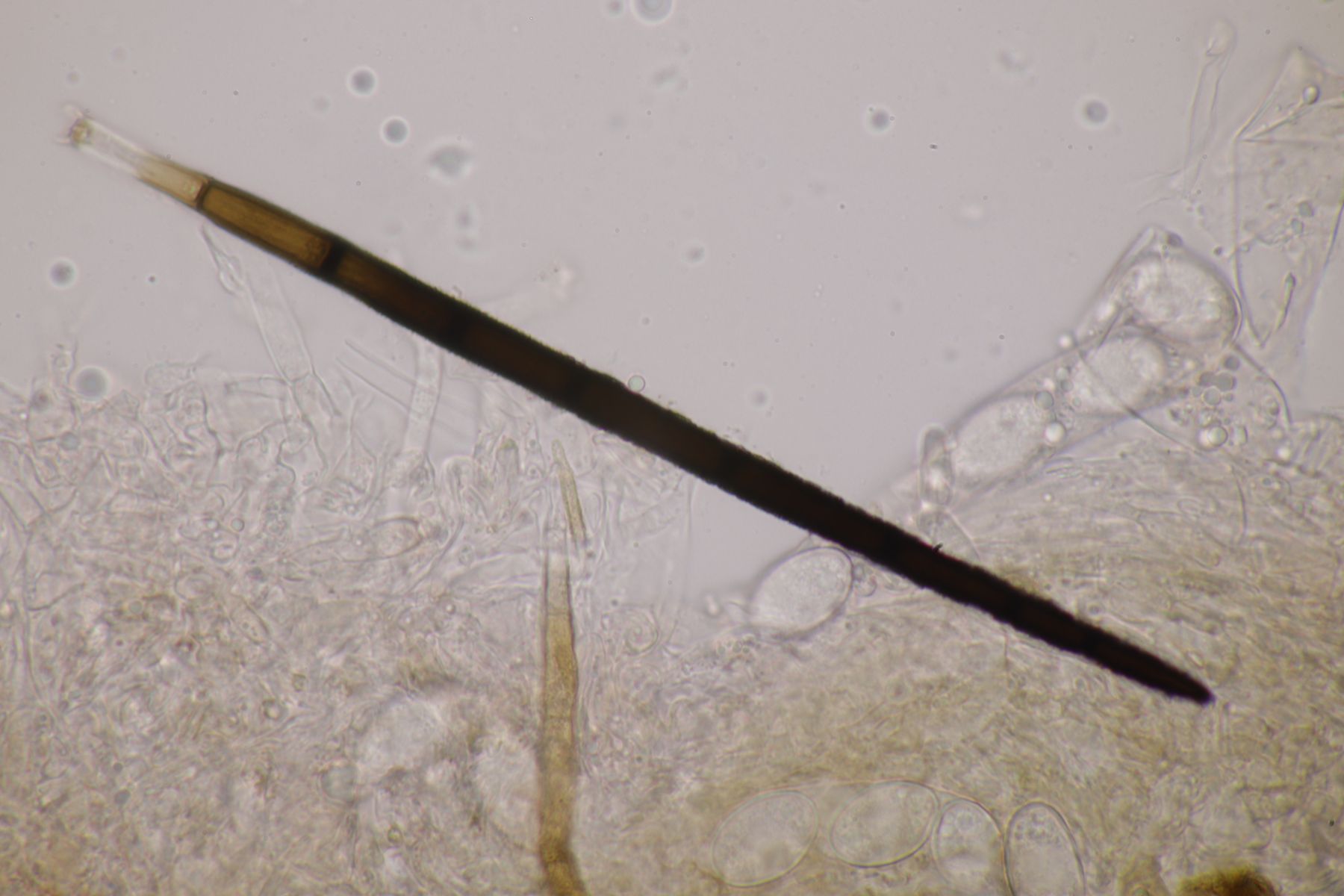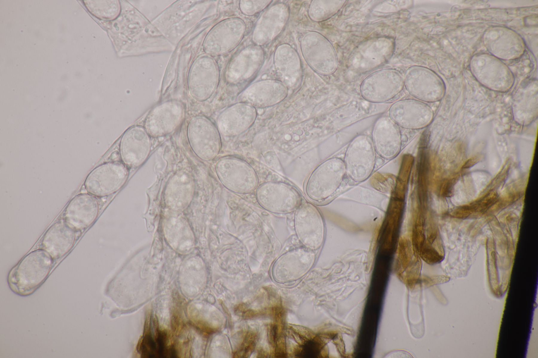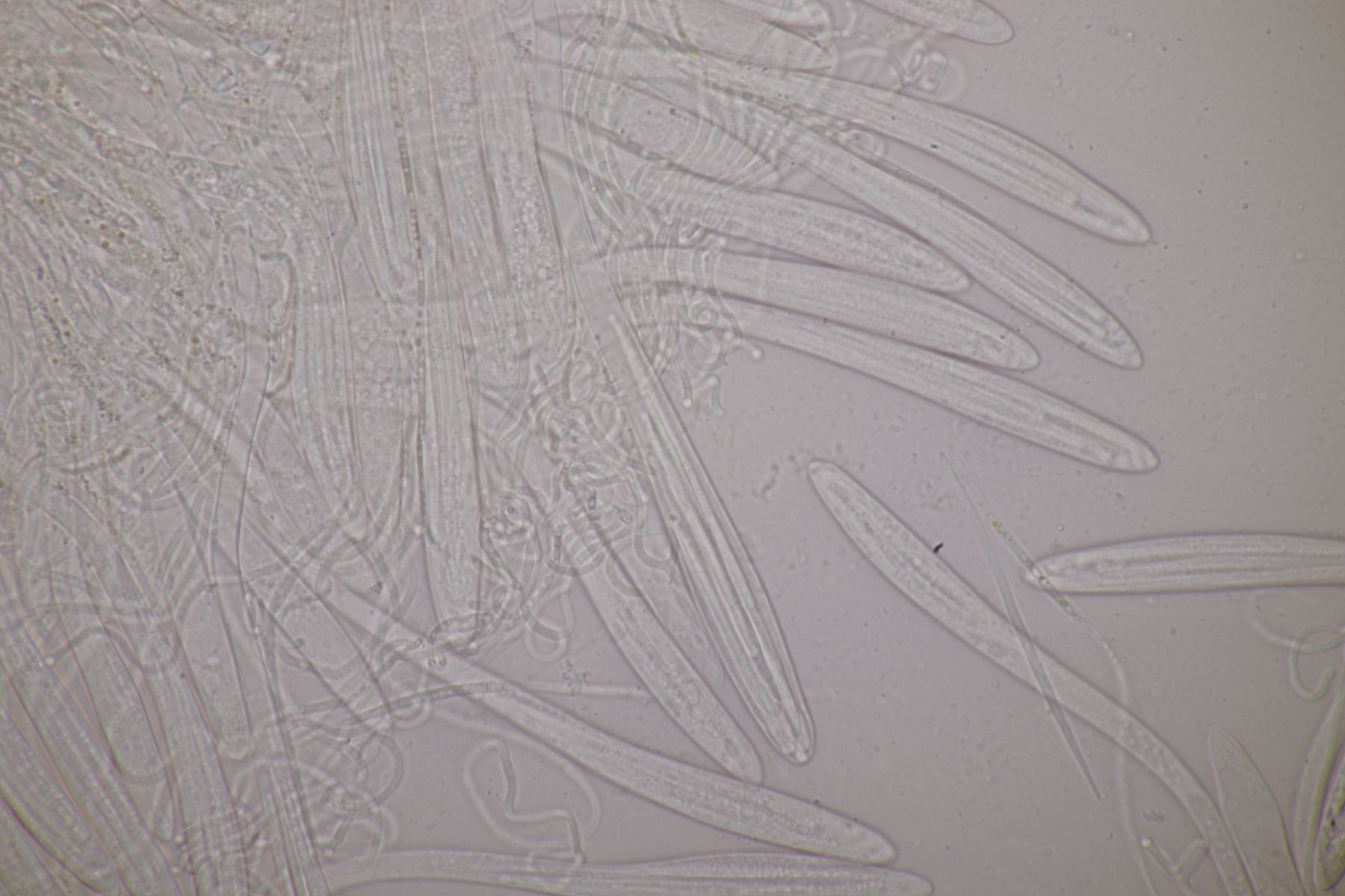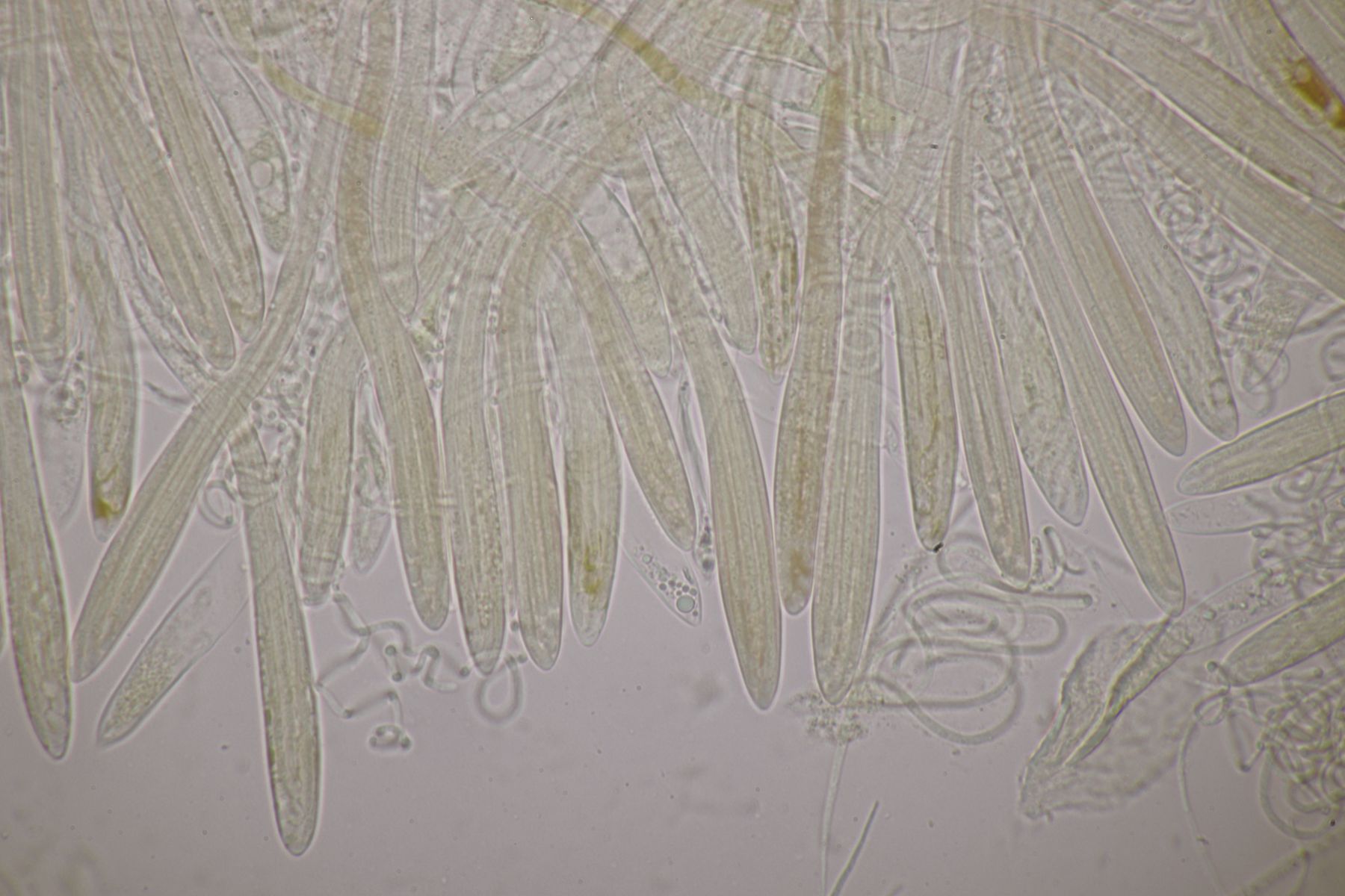 9. Und dann ein Griff in die feuchte Nadelstreu und die Nadel im Heuhaufen gefunden: Desmazierella acicola. Weitere Nachsuche hat dann keine weiteren Fruchtkörper zu Tage gebracht.