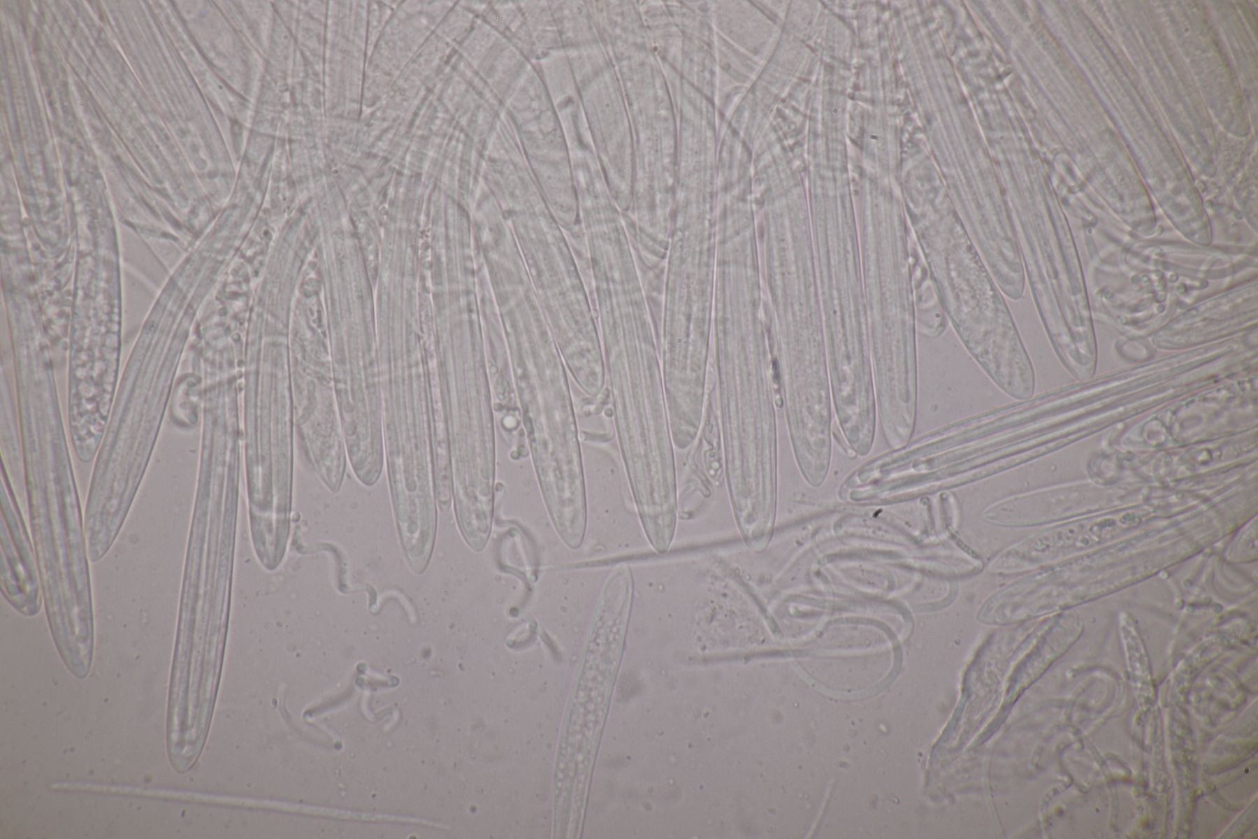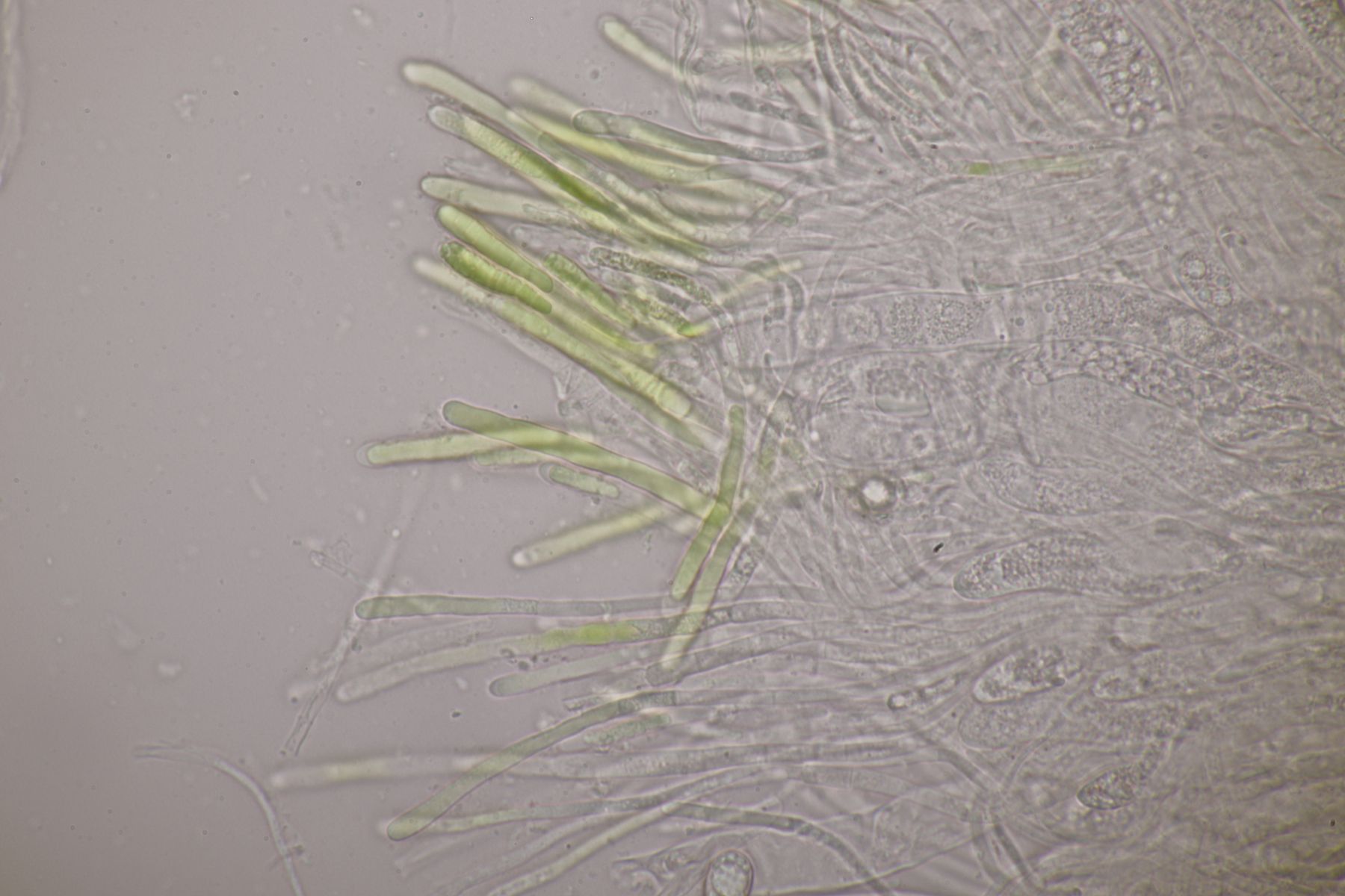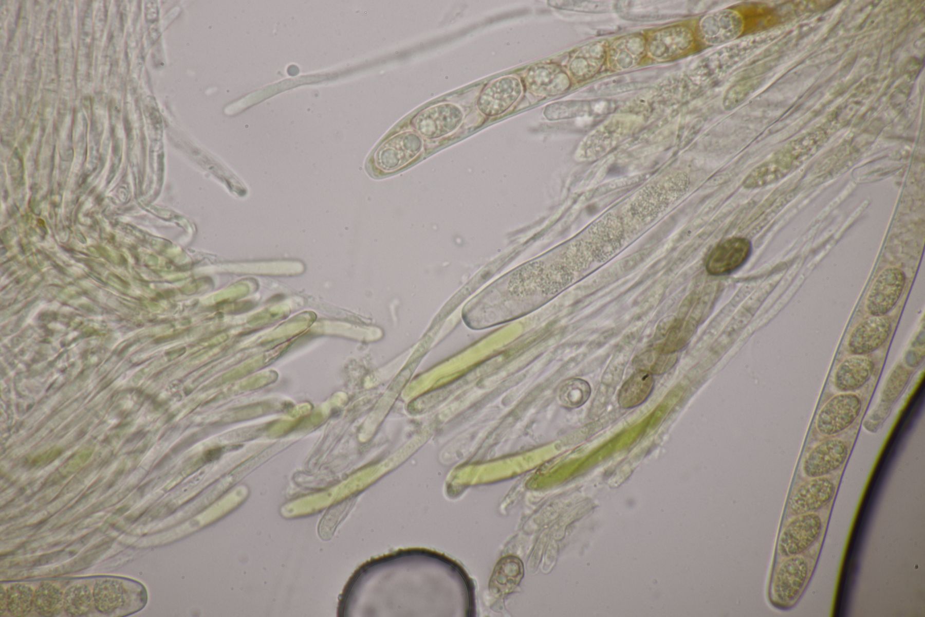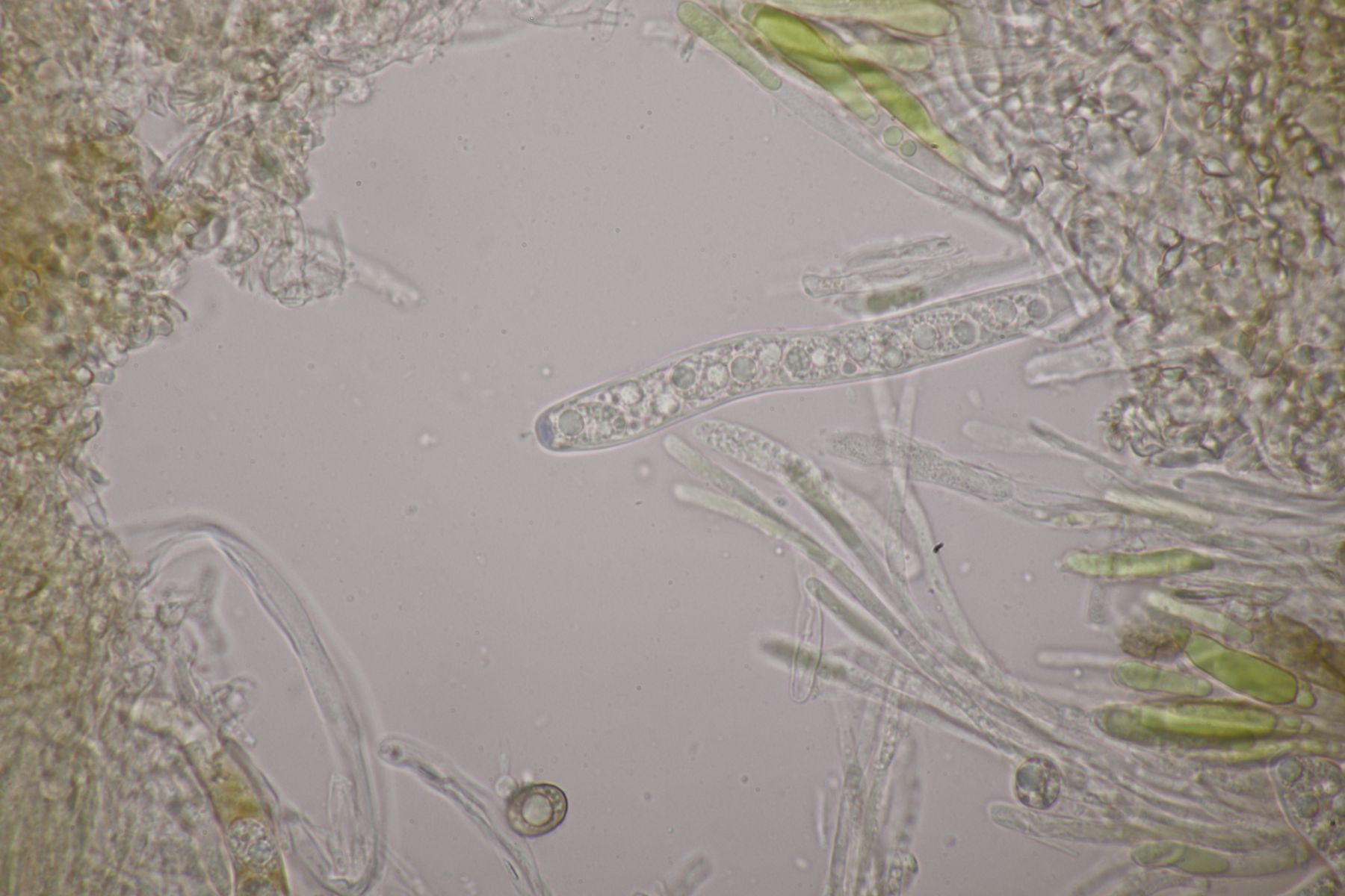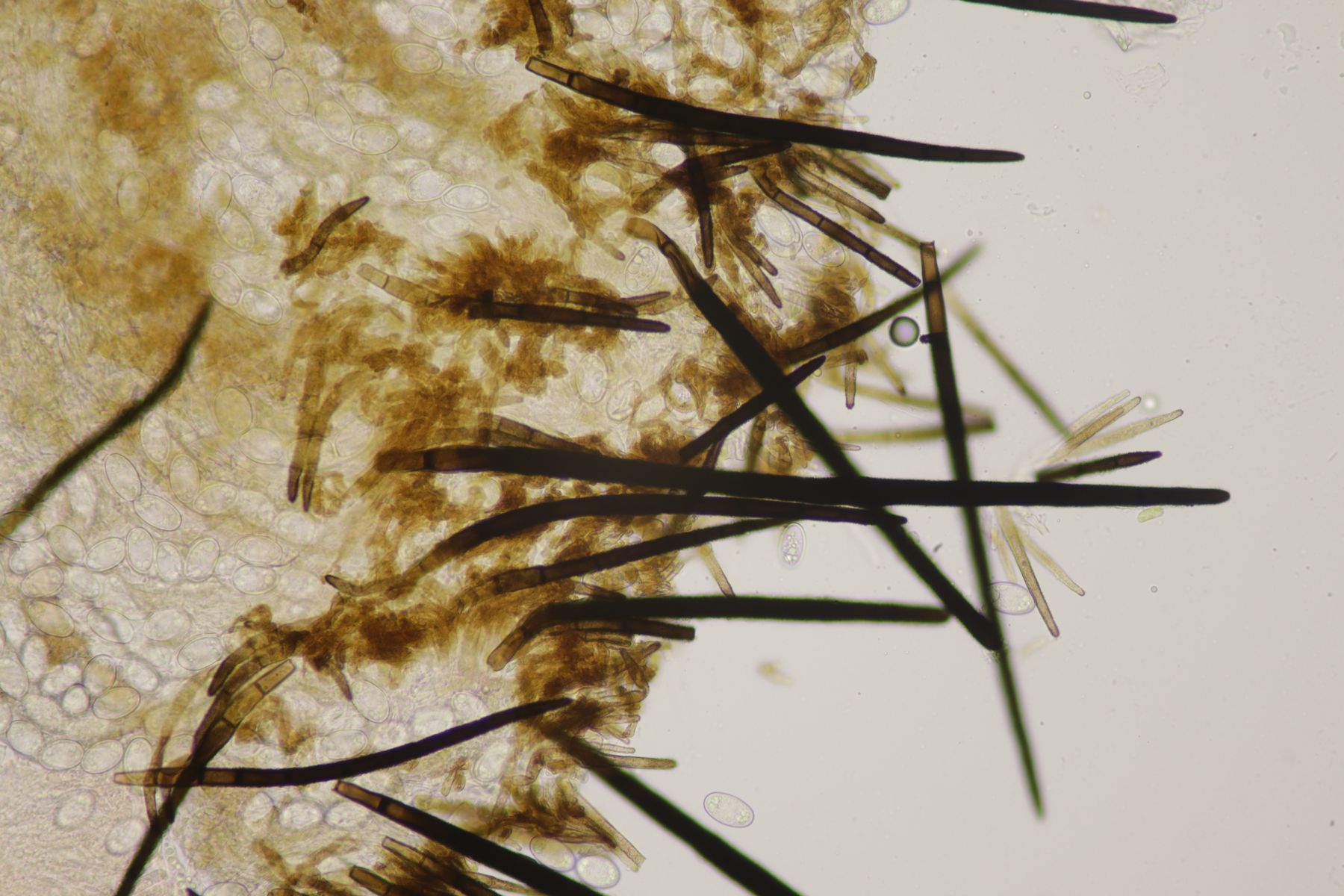 9. Und dann ein Griff in die feuchte Nadelstreu und die Nadel im Heuhaufen gefunden: Desmazierella acicola. Weitere Nachsuche hat dann keine weiteren Fruchtkörper zu Tage gebracht.