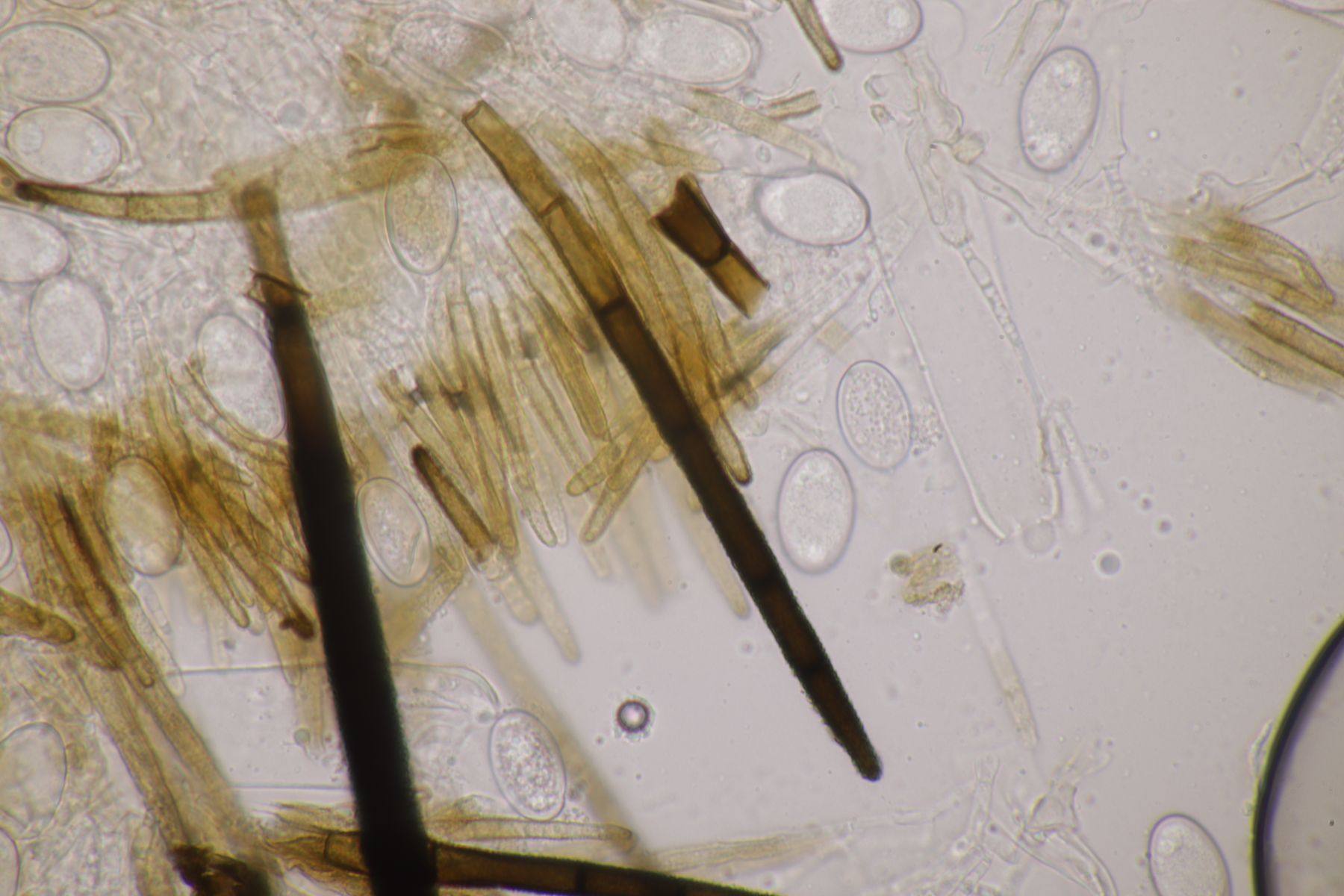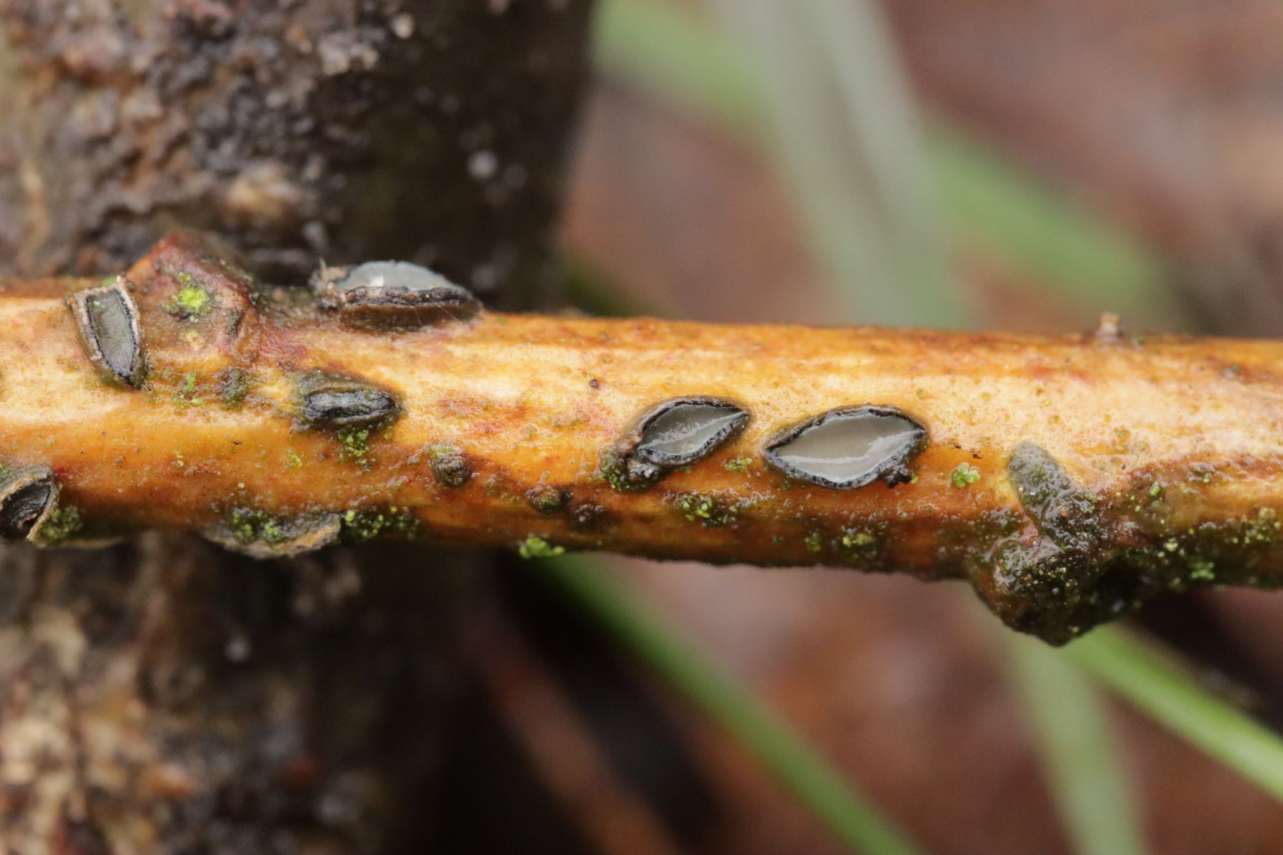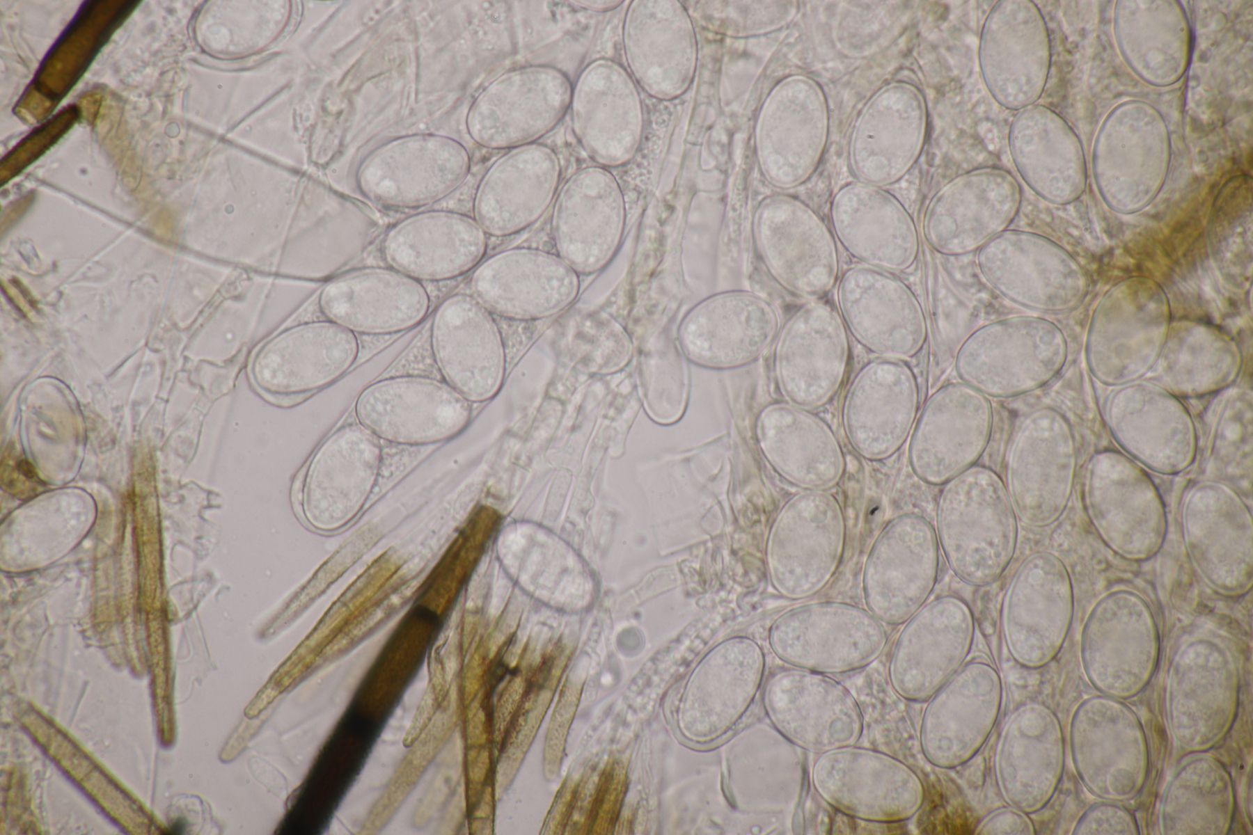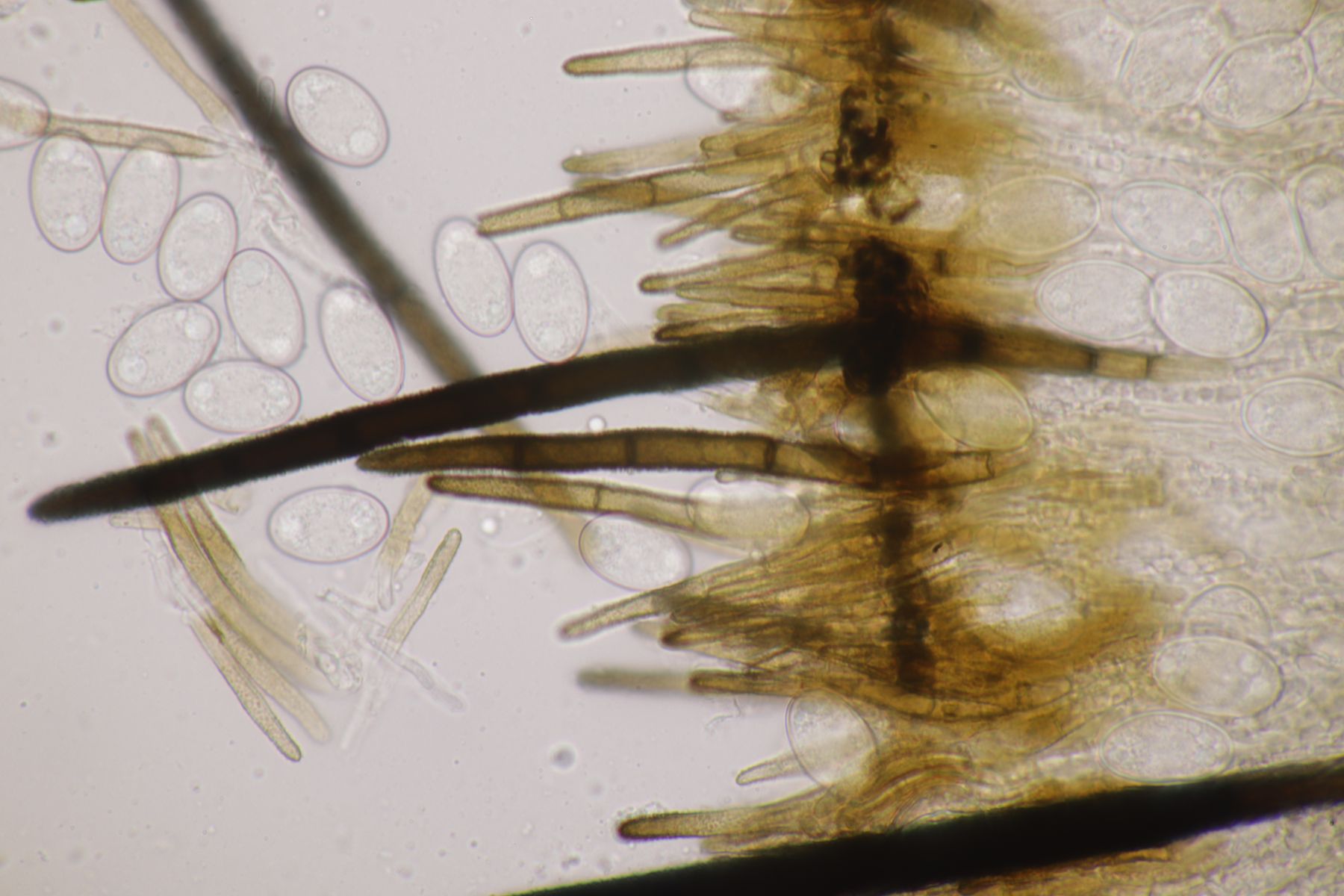 9. Und dann ein Griff in die feuchte Nadelstreu und die Nadel im Heuhaufen gefunden: Desmazierella acicola. Weitere Nachsuche hat dann keine weiteren Fruchtkörper zu Tage gebracht.