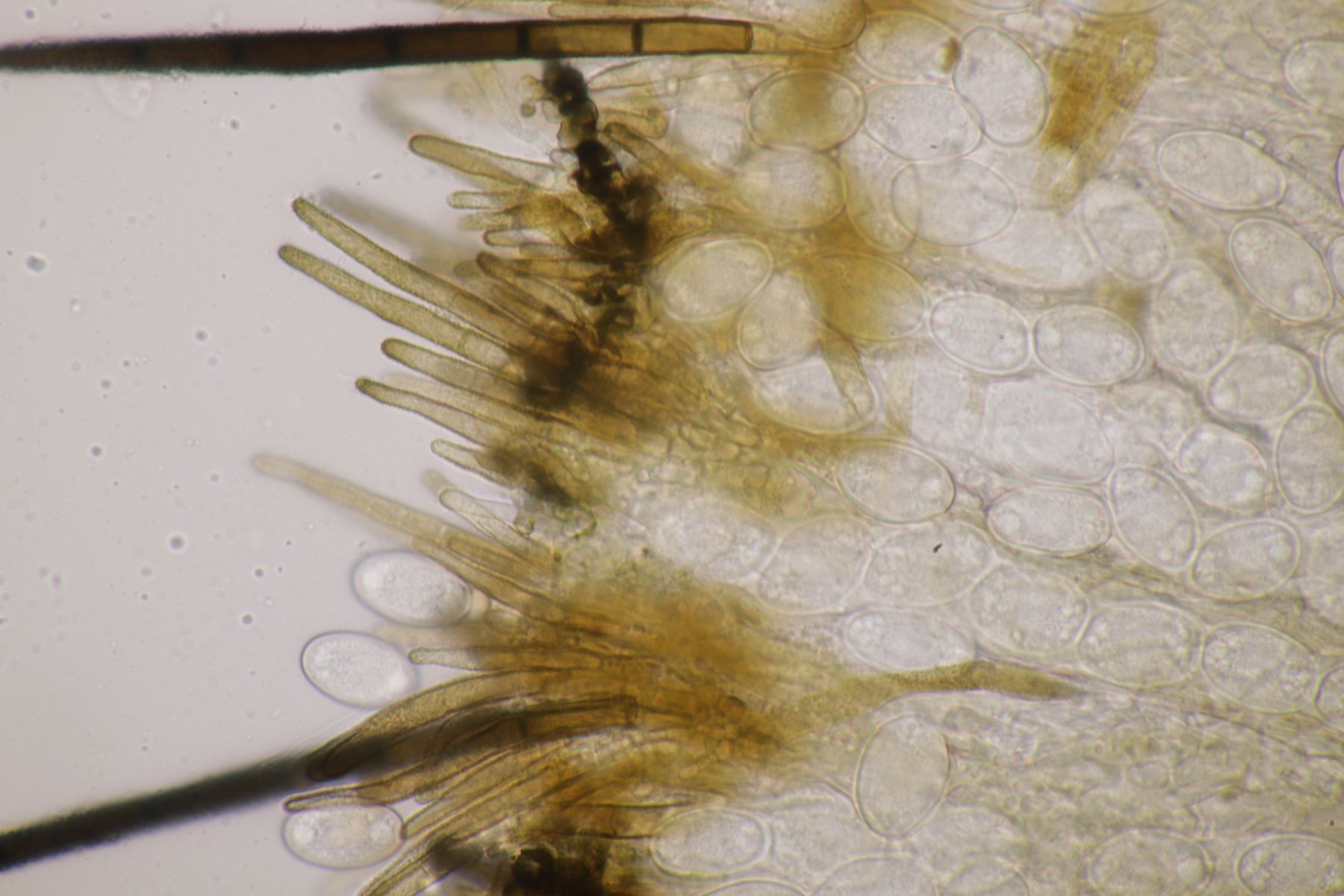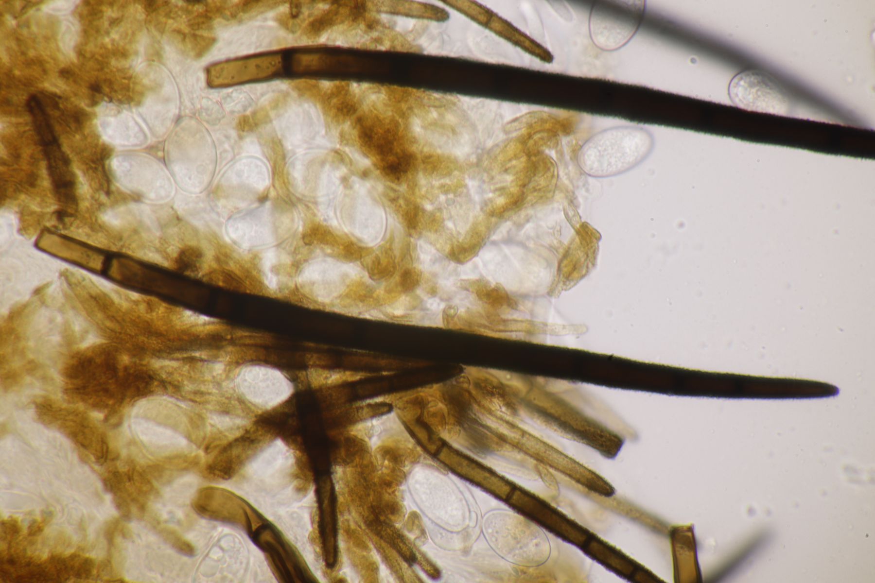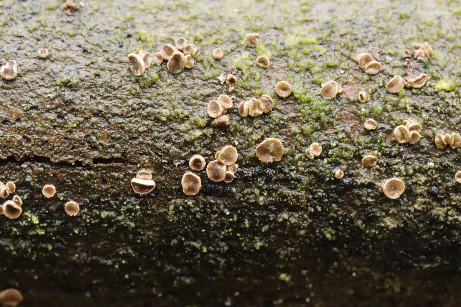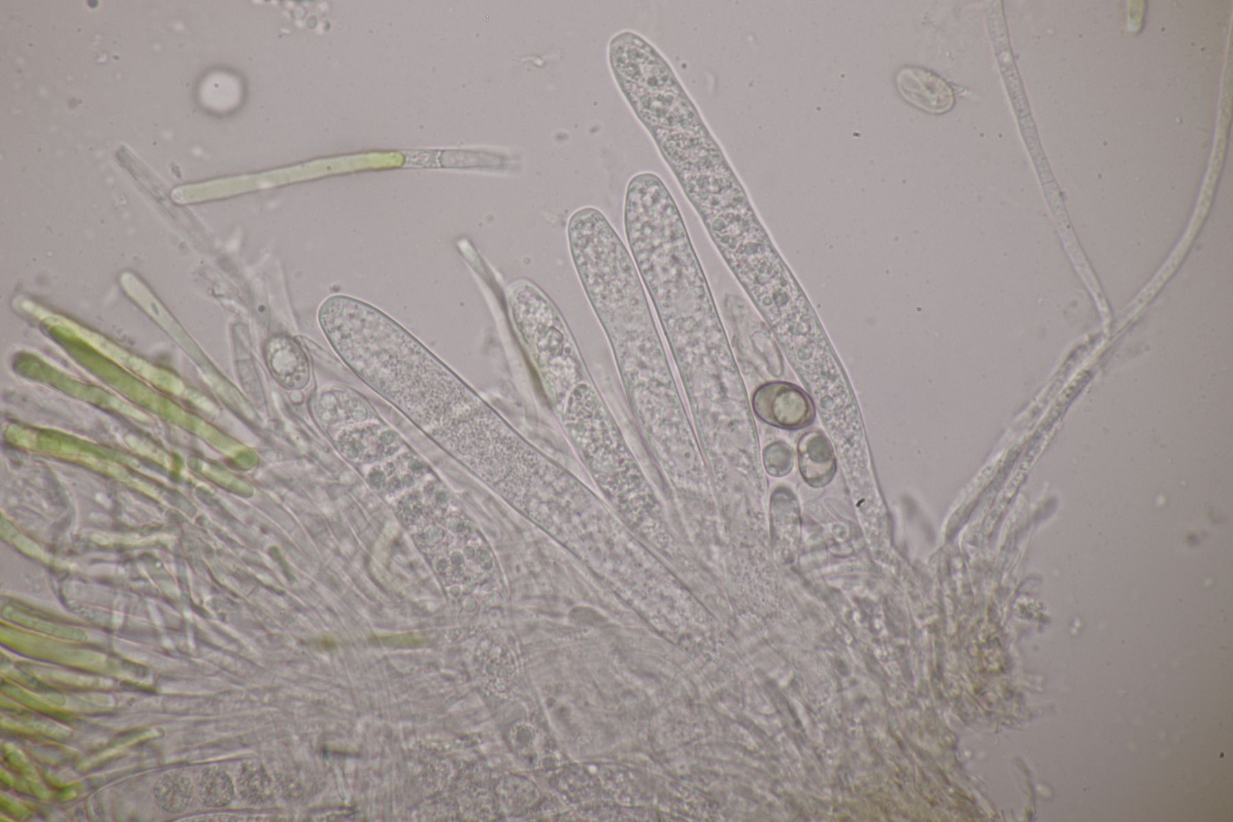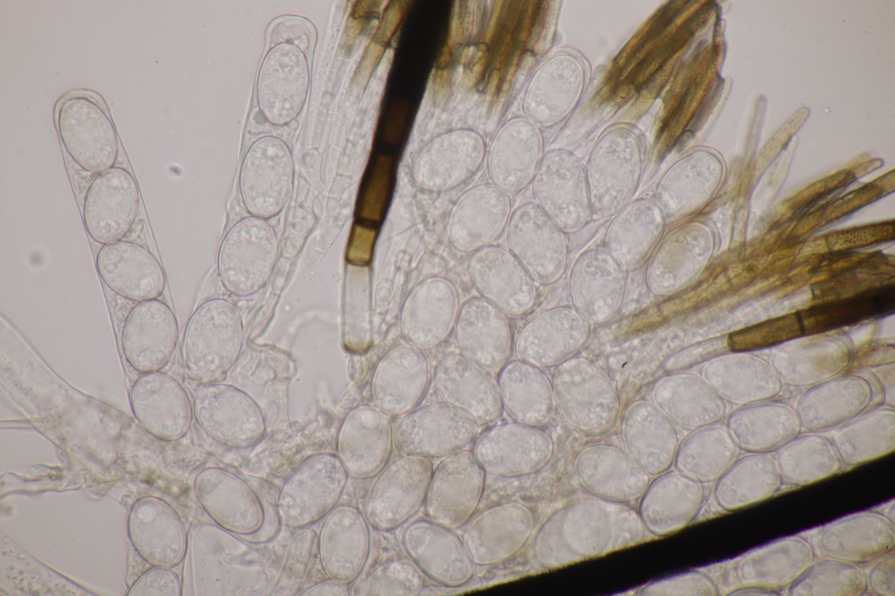 9. Und dann ein Griff in die feuchte Nadelstreu und die Nadel im Heuhaufen gefunden: Desmazierella acicola. Weitere Nachsuche hat dann keine weiteren Fruchtkörper zu Tage gebracht.