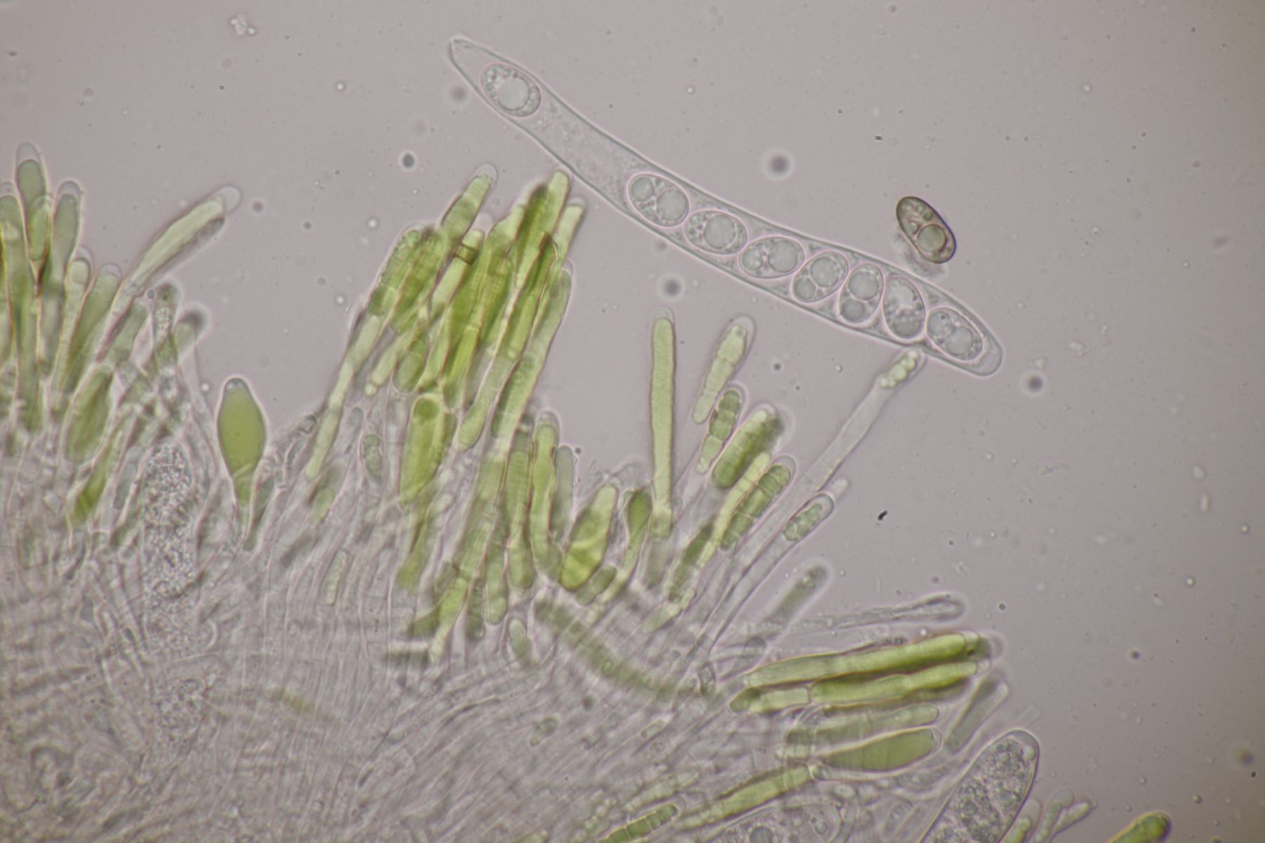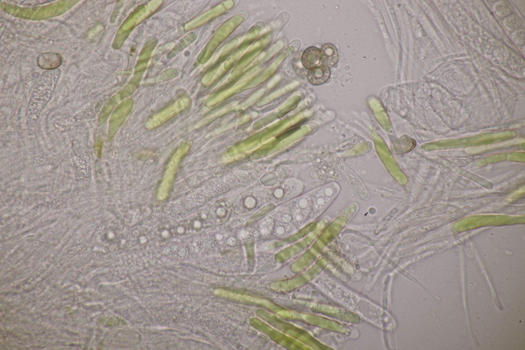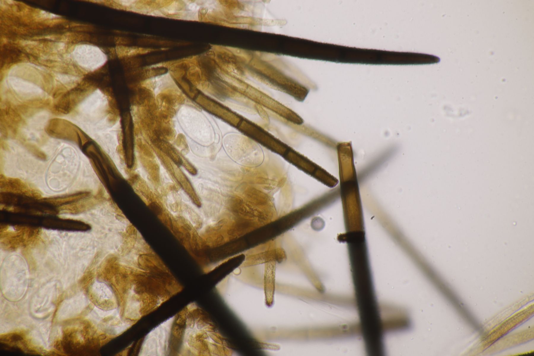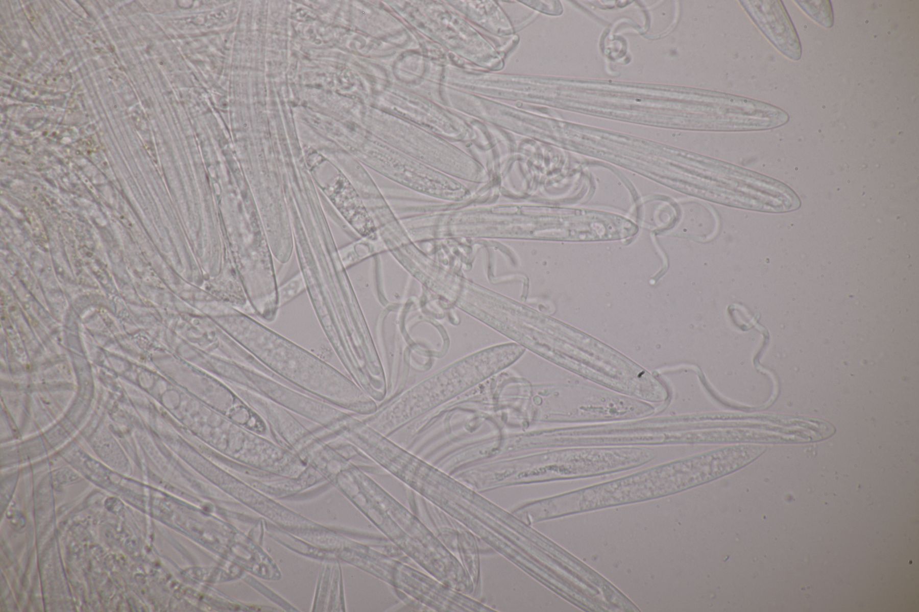 9. Und dann ein Griff in die feuchte Nadelstreu und die Nadel im Heuhaufen gefunden: Desmazierella acicola. Weitere Nachsuche hat dann keine weiteren Fruchtkörper zu Tage gebracht.