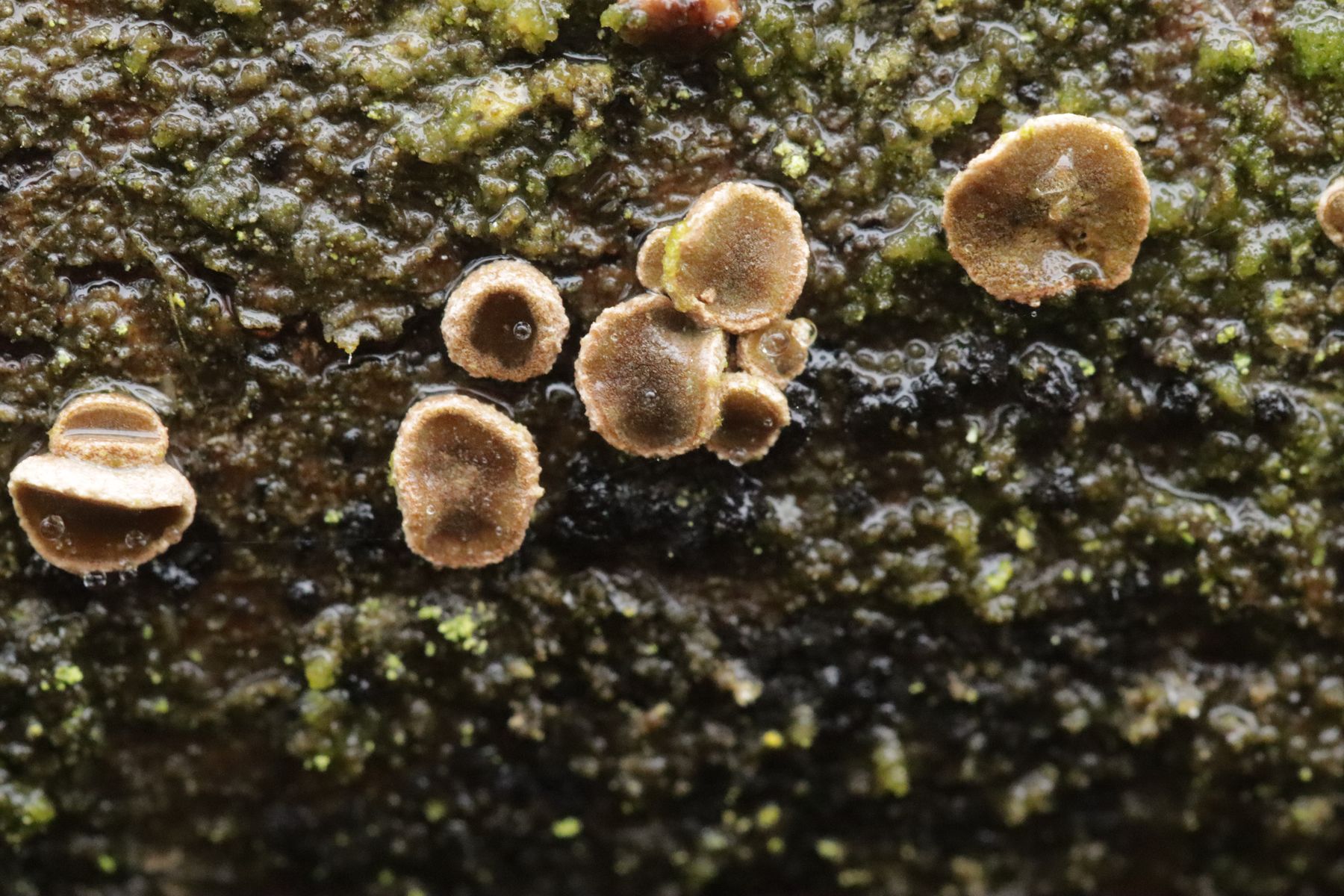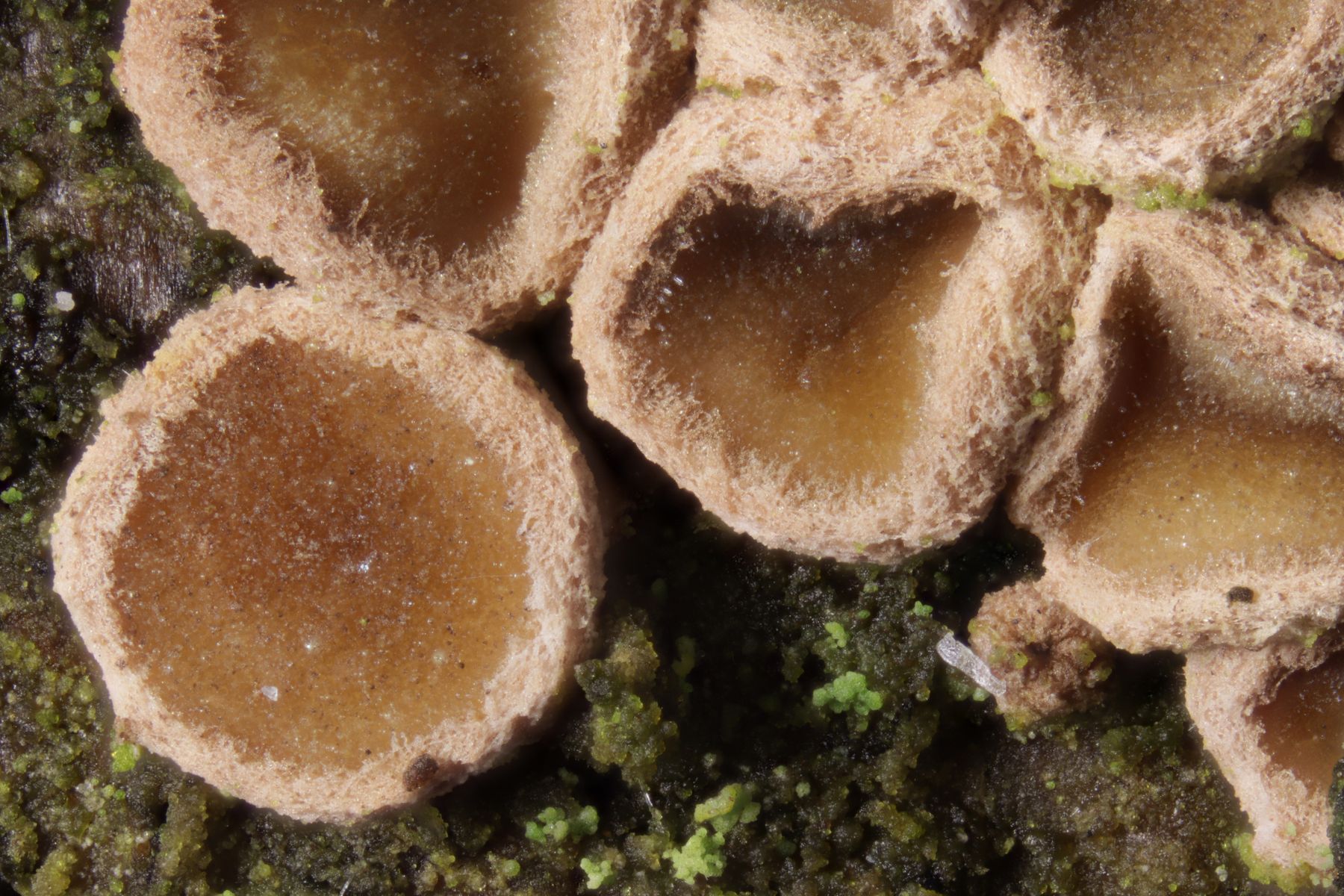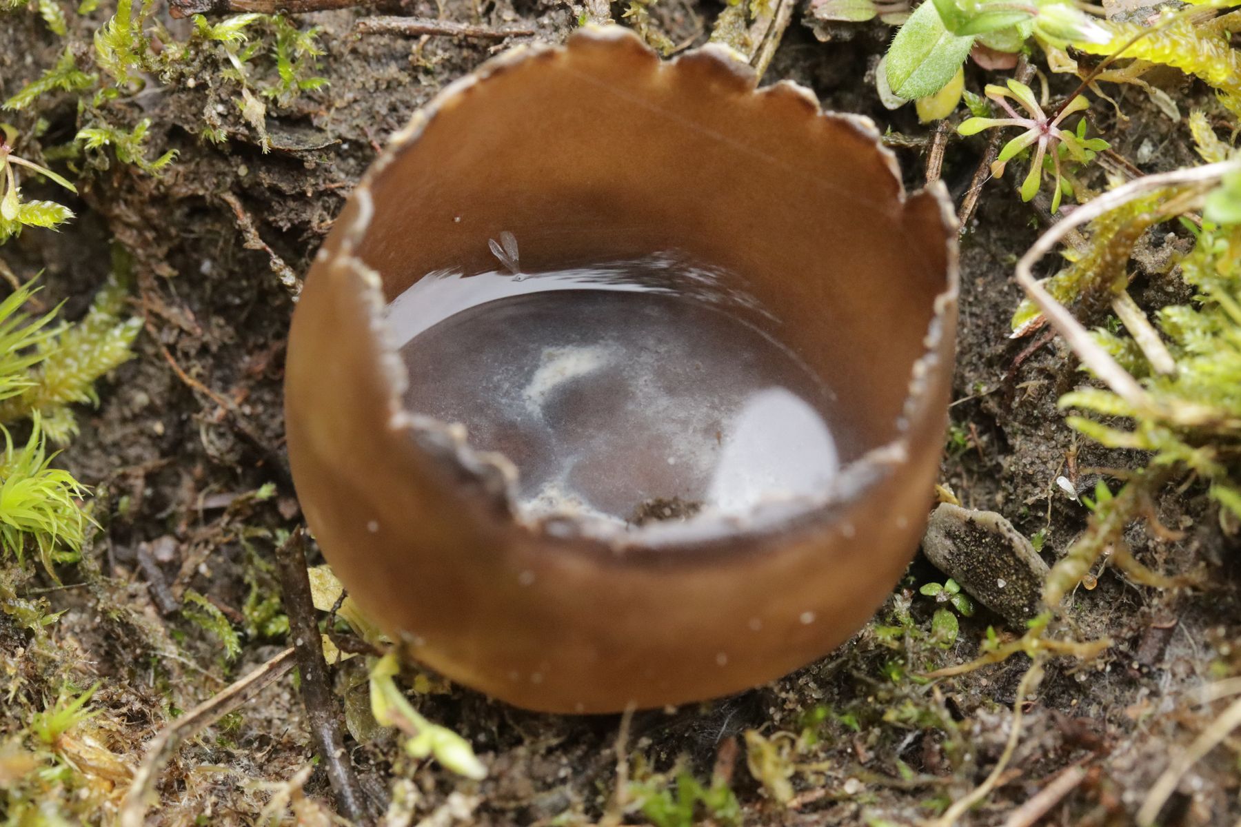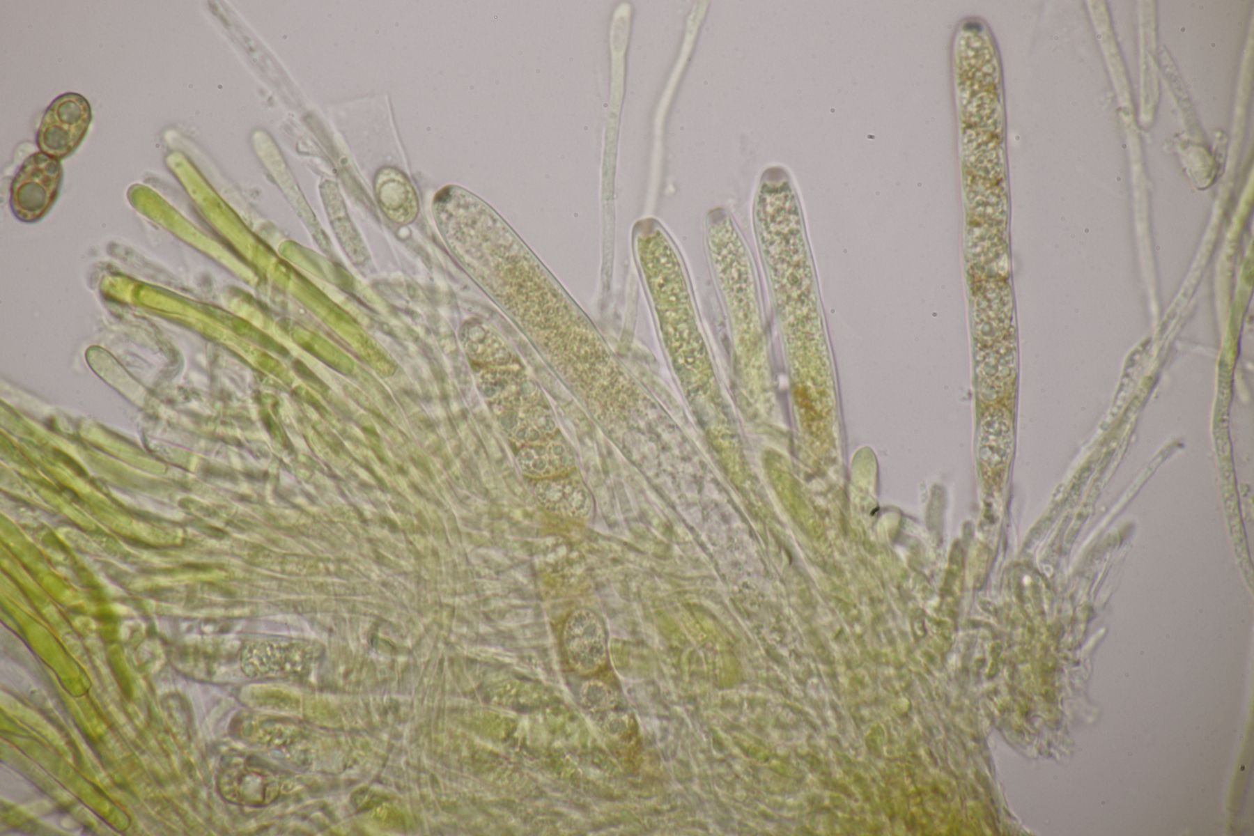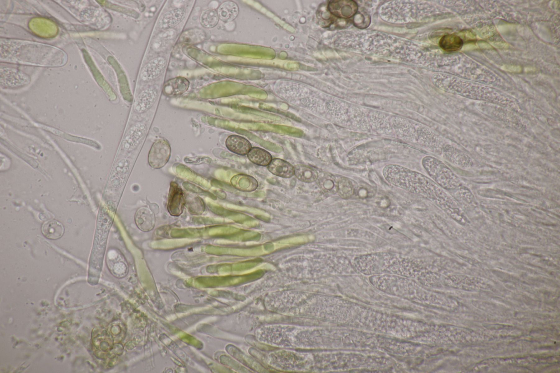 9. Und dann ein Griff in die feuchte Nadelstreu und die Nadel im Heuhaufen gefunden: Desmazierella acicola. Weitere Nachsuche hat dann keine weiteren Fruchtkörper zu Tage gebracht.