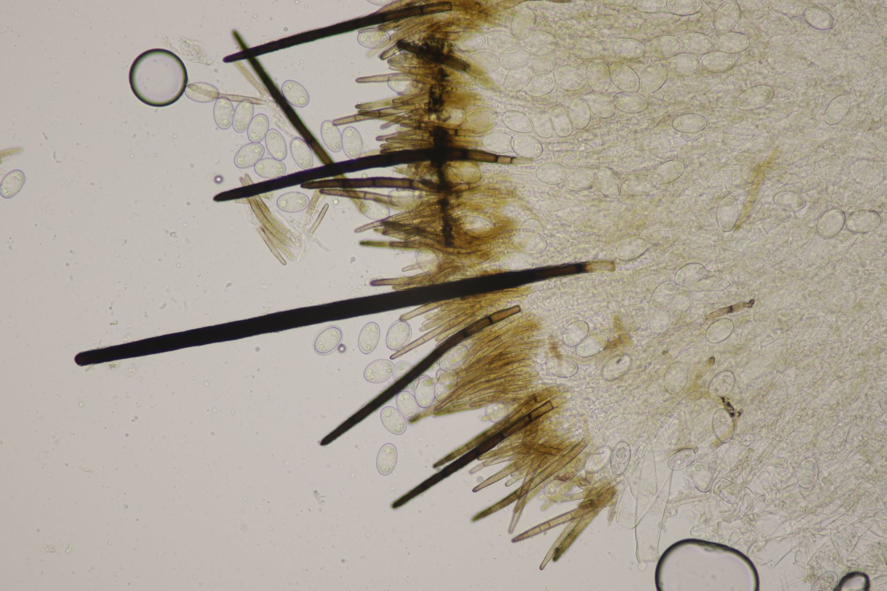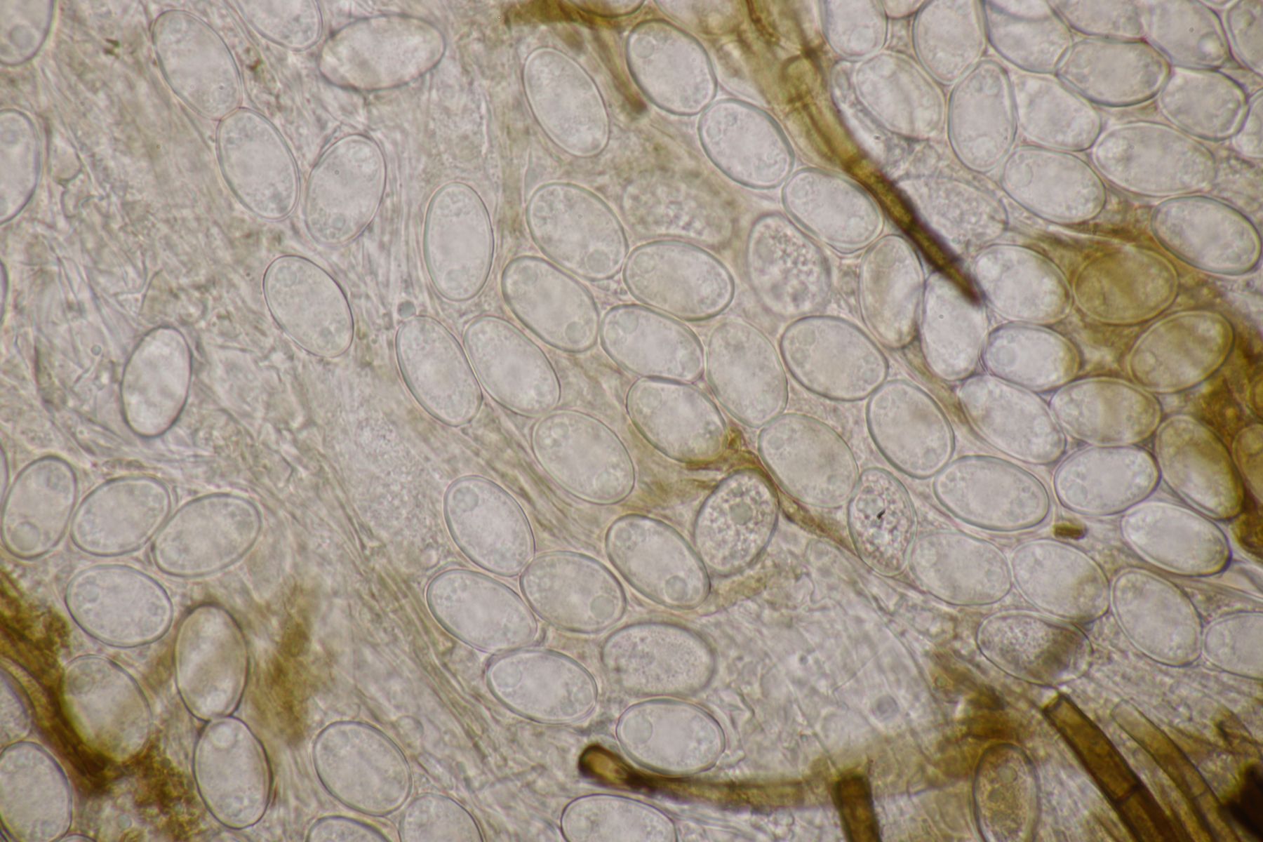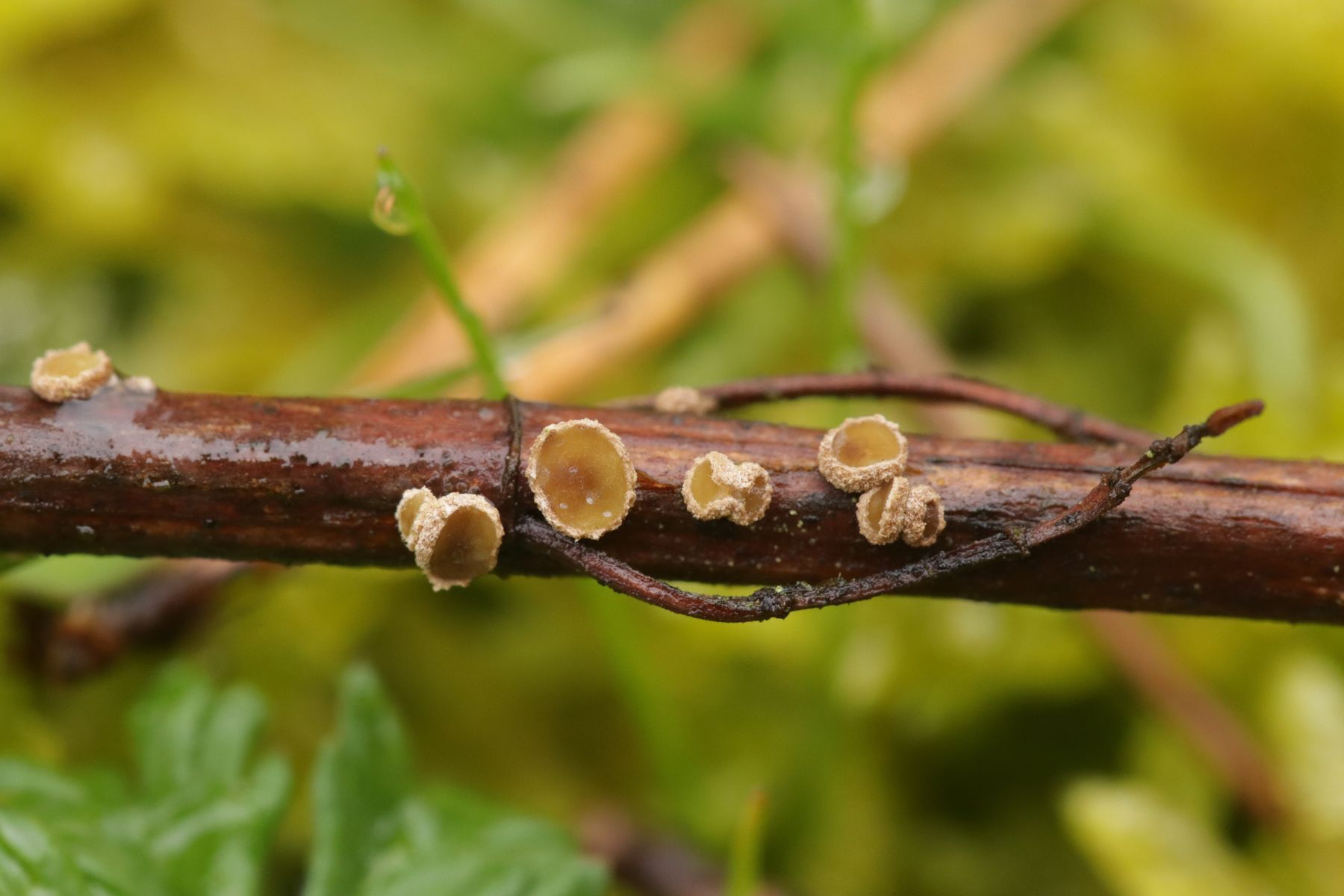 9. Und dann ein Griff in die feuchte Nadelstreu und die Nadel im Heuhaufen gefunden: Desmazierella acicola. Weitere Nachsuche hat dann keine weiteren Fruchtkörper zu Tage gebracht.
