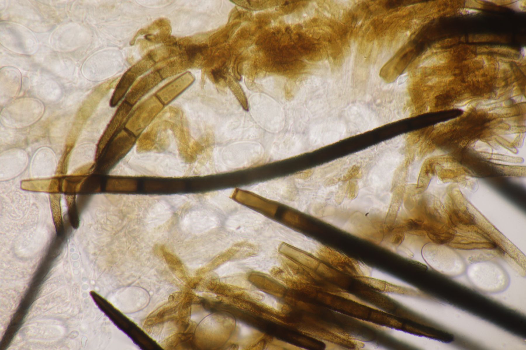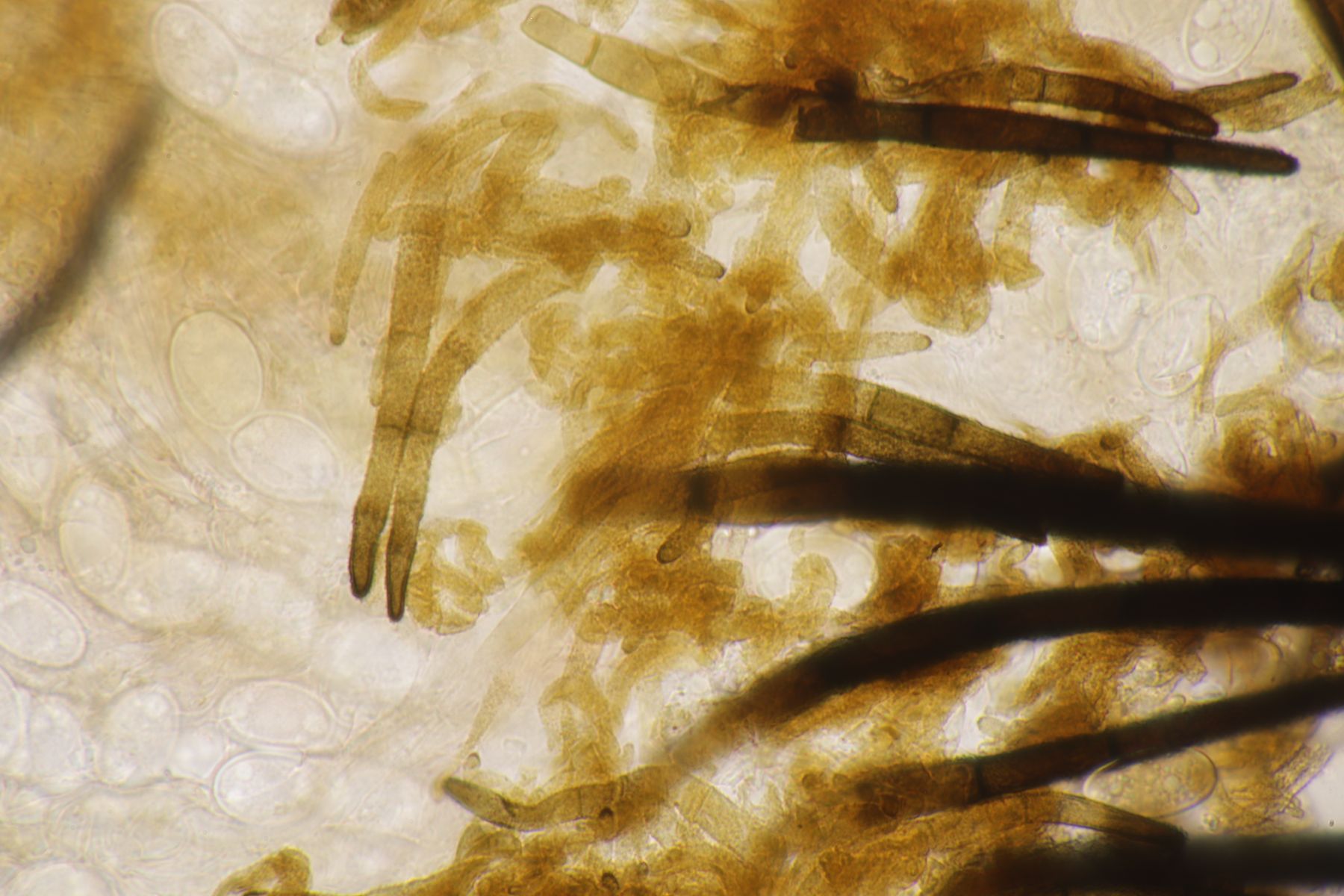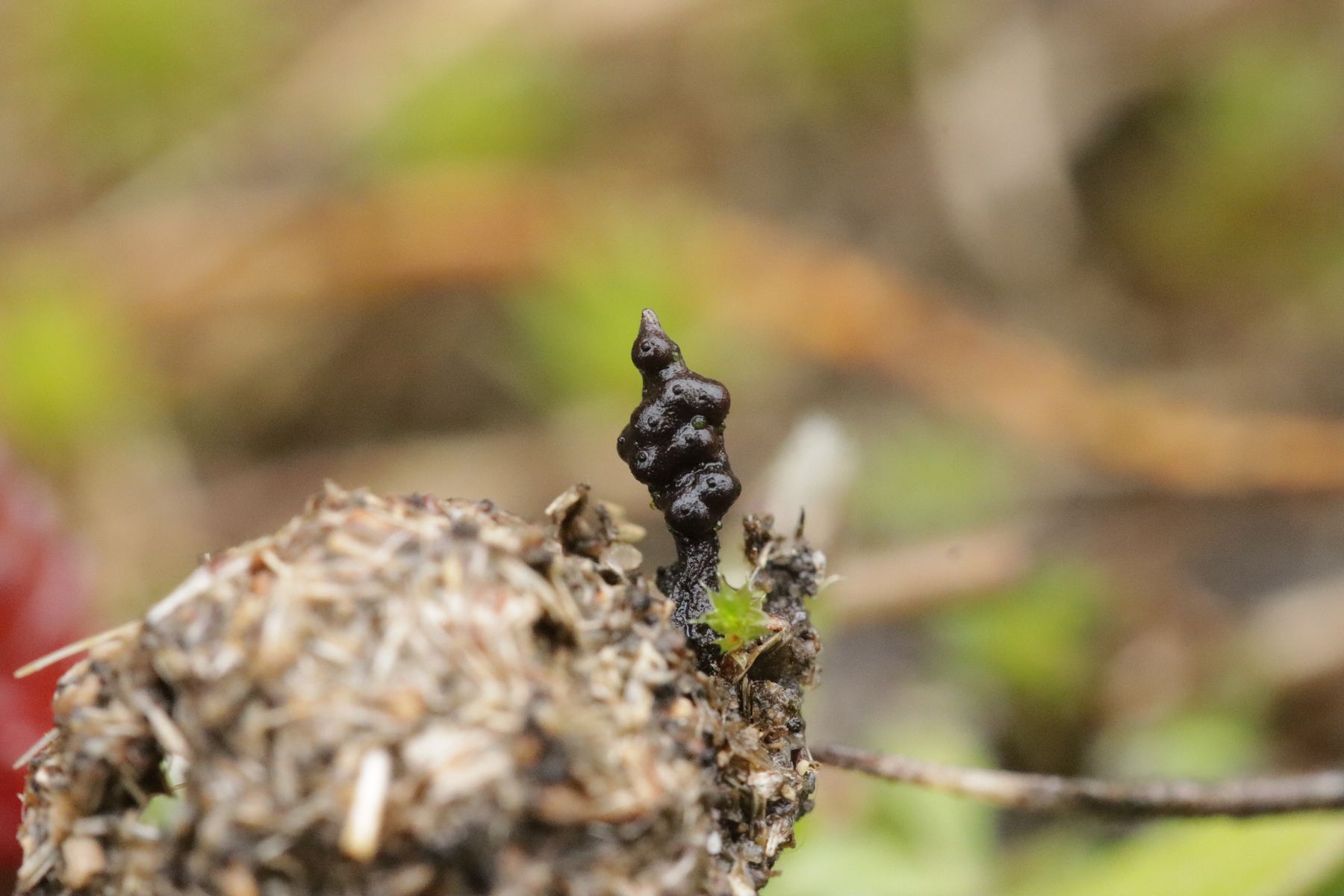 9. Und dann ein Griff in die feuchte Nadelstreu und die Nadel im Heuhaufen gefunden: Desmazierella acicola. Weitere Nachsuche hat dann keine weiteren Fruchtkörper zu Tage gebracht.
