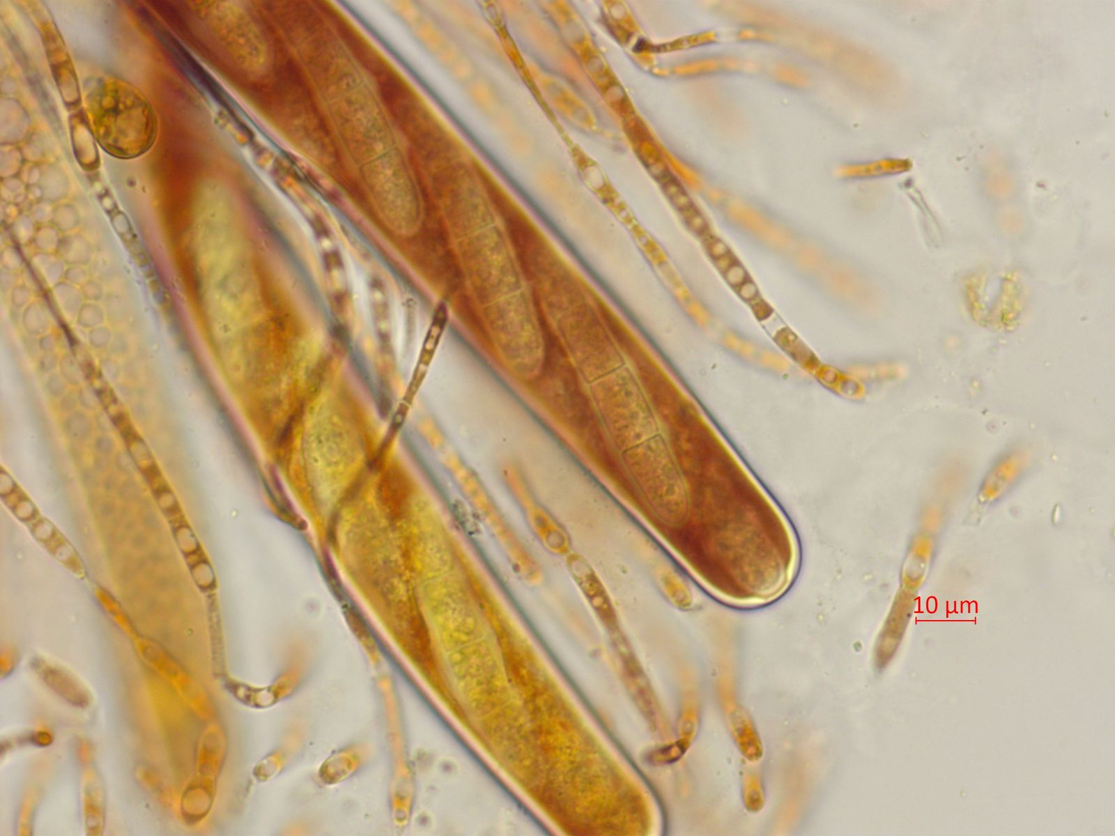 3fach septierte, ziemlich lange Sporen, Länge 50-55 ym, hyalin, IKI-, Substrat: Stroh vermischt mit Rindermist. Perithezium mit verlängertem Hals.
