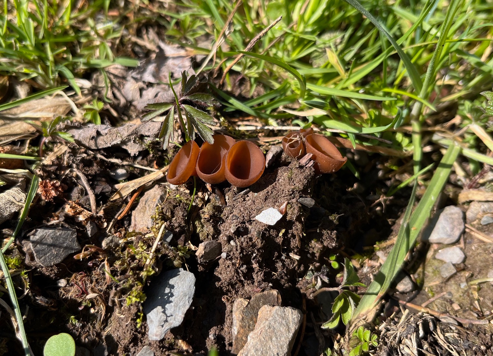 15. Diese Becherlinge und andere, die zwischen Scharbockskraut standen mussten mit zur Bestimmung. Aber die Hoffnung, dass es sich um Scharbockskrautbecher handeln könnte, löste sich wieder einmal in Wohlgefallen auf.