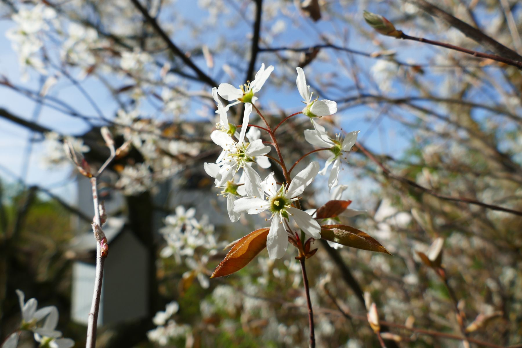 An der Felsenbirne, die vermutlich schon vor 50 Jahren vom Erbauer des Hauses gepflanzt wurde: