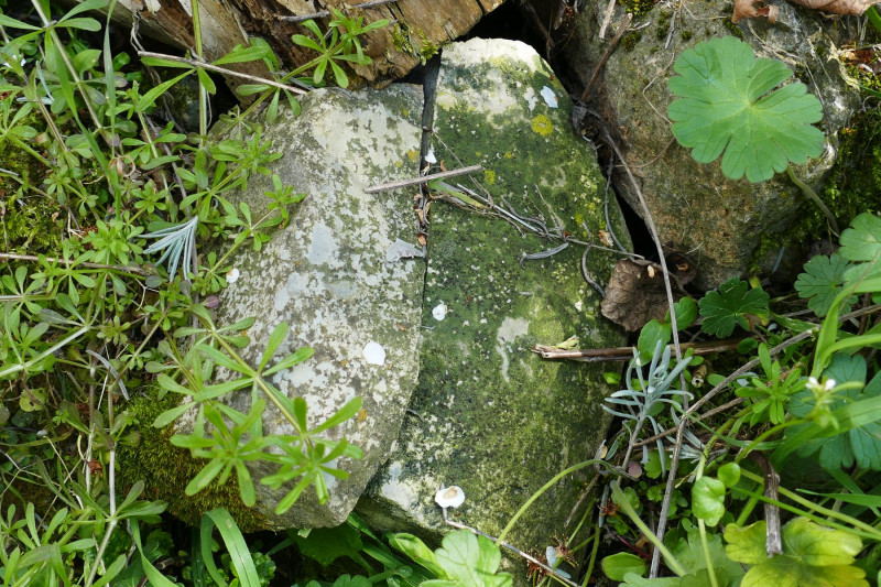 Bild 12a Feucht-schattiger Sandstein mit grüner Krustenflechte