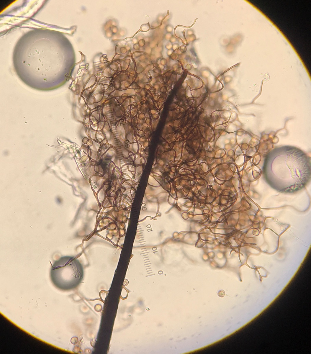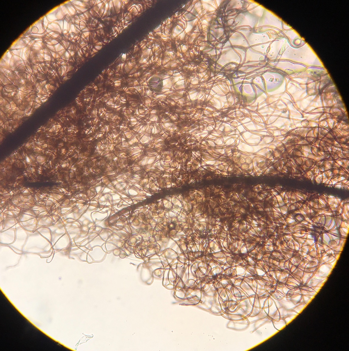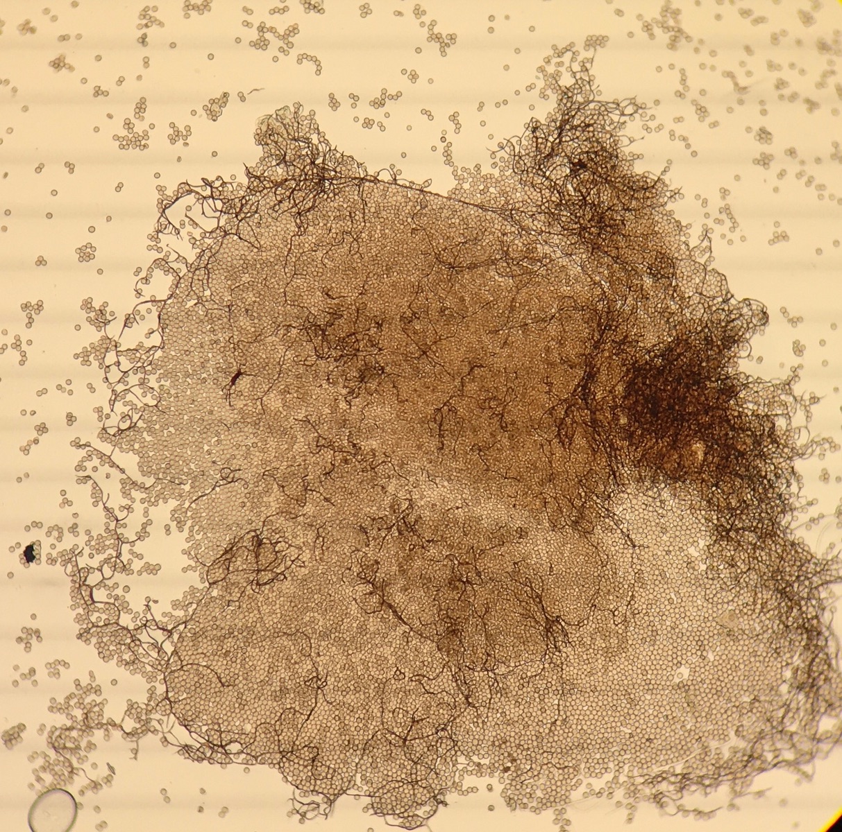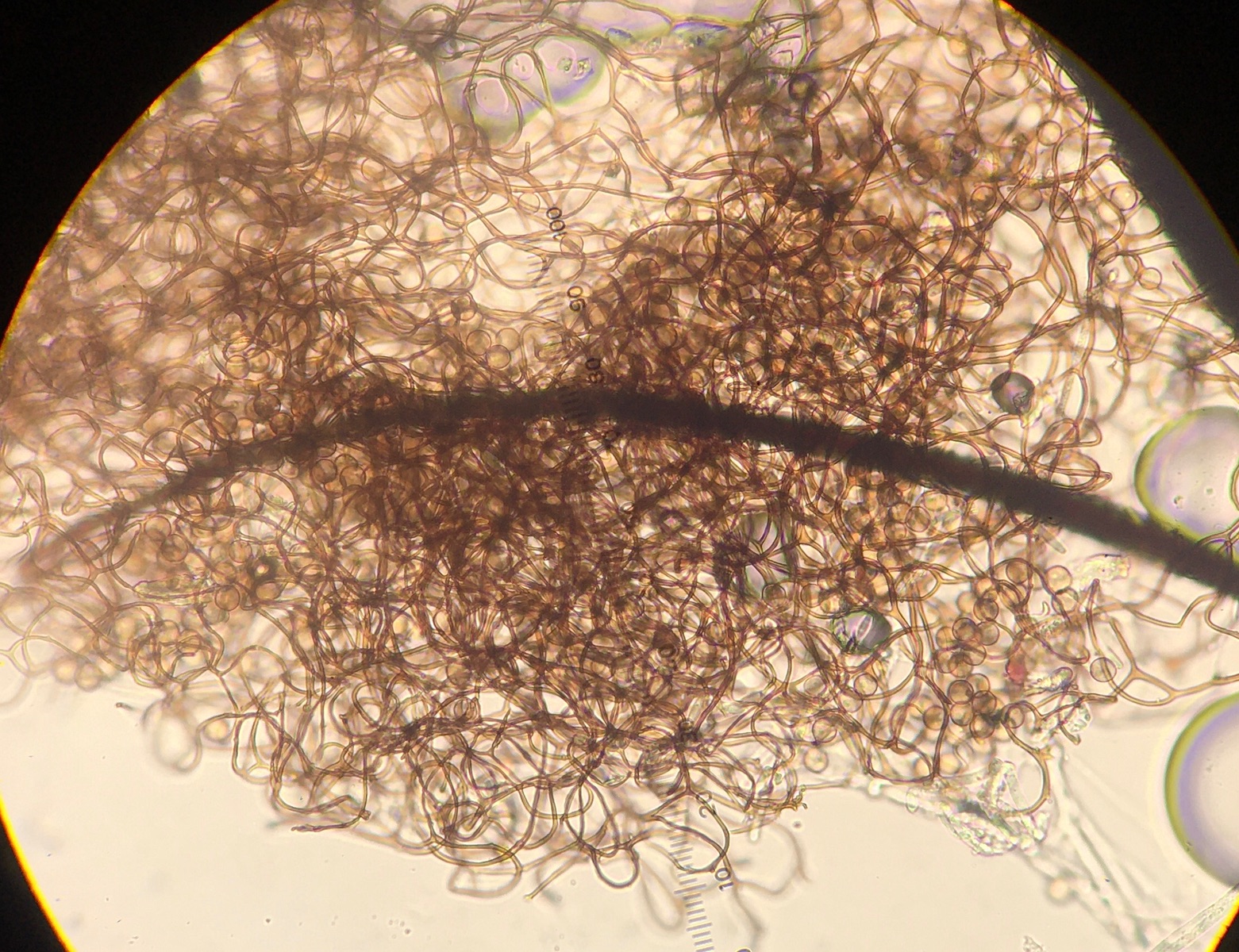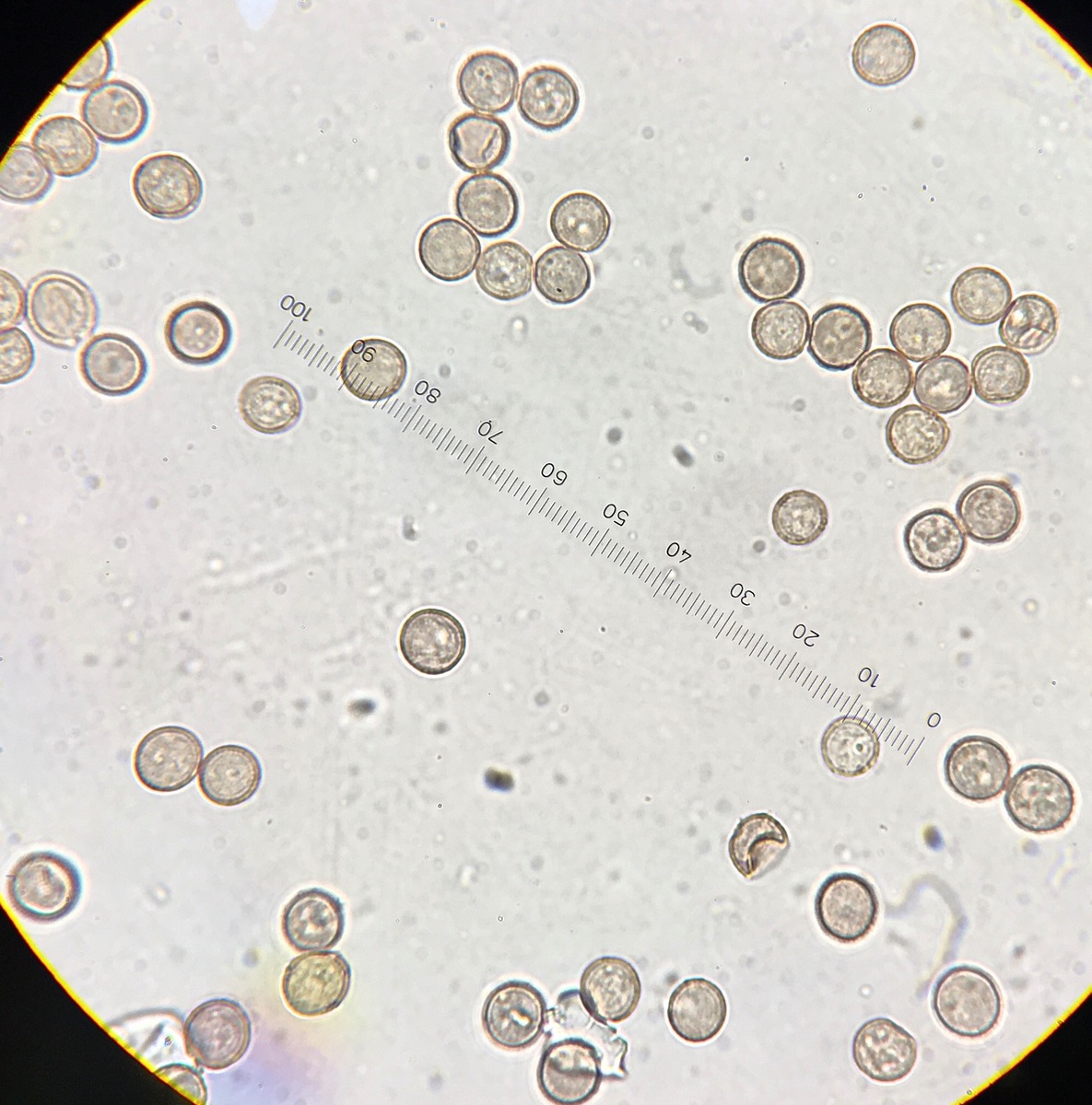 Mikroskopiert hab ich den Fund auch - die Sporen messen 7,5-9 x 6,5-8,5, sind subglobos bis globos und fein rau, wie ich meine. Die Capilitiumfasern sind eher glatt und verzweigt.