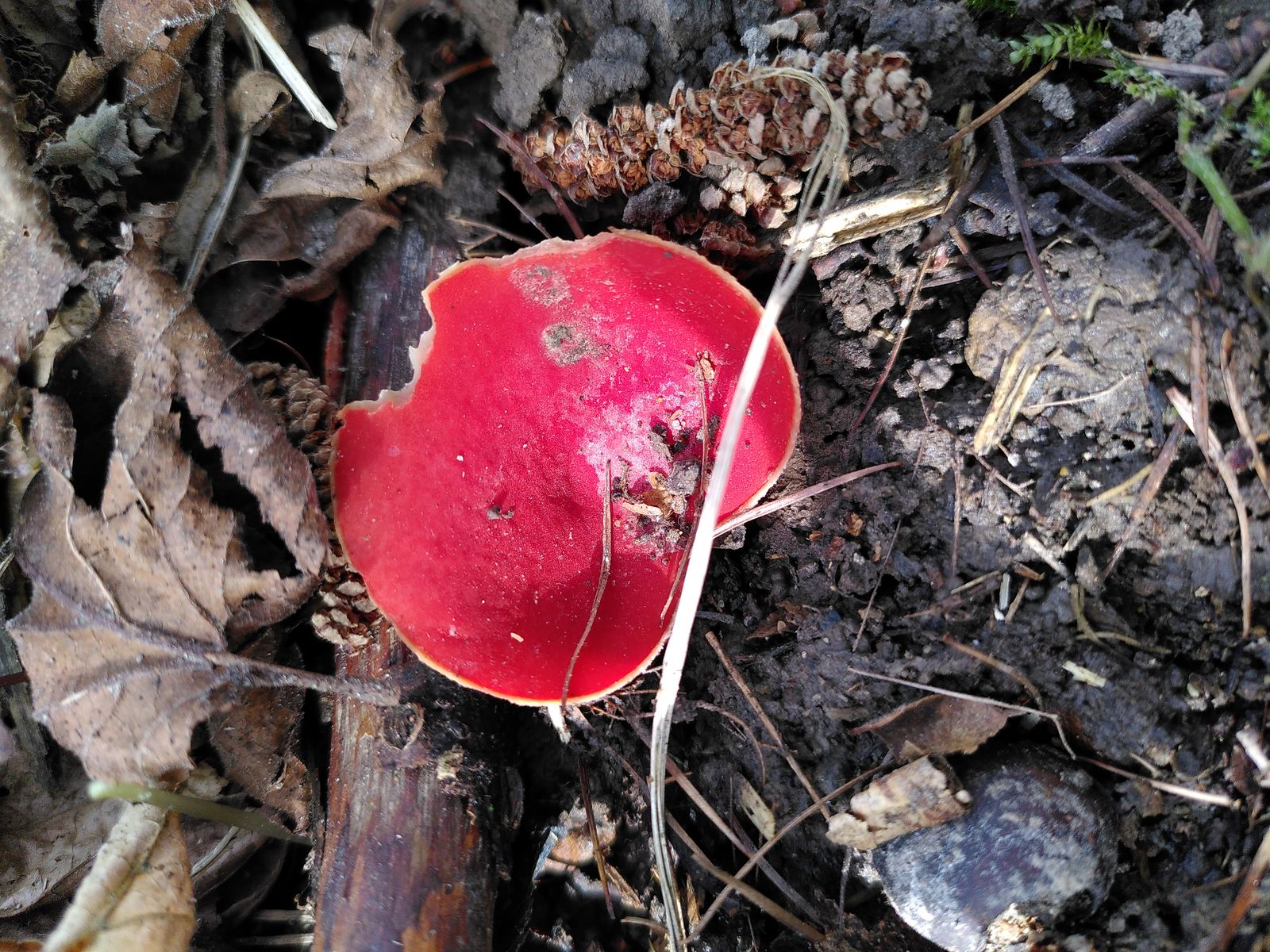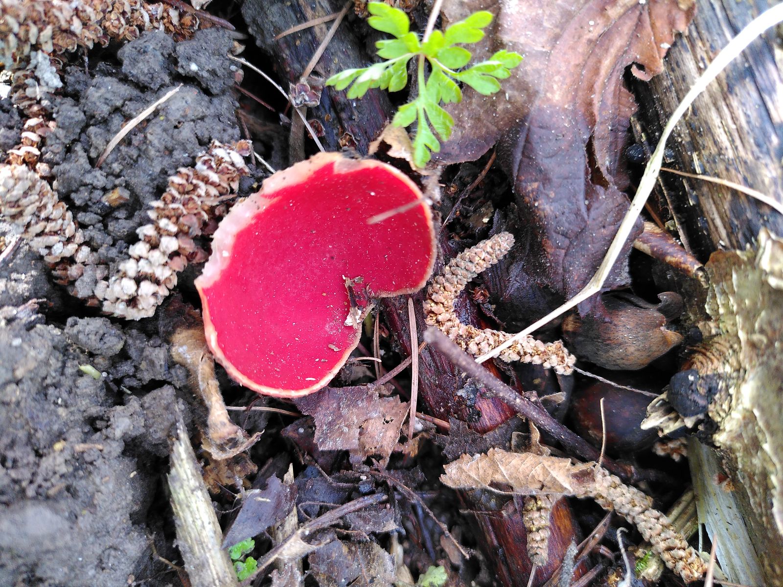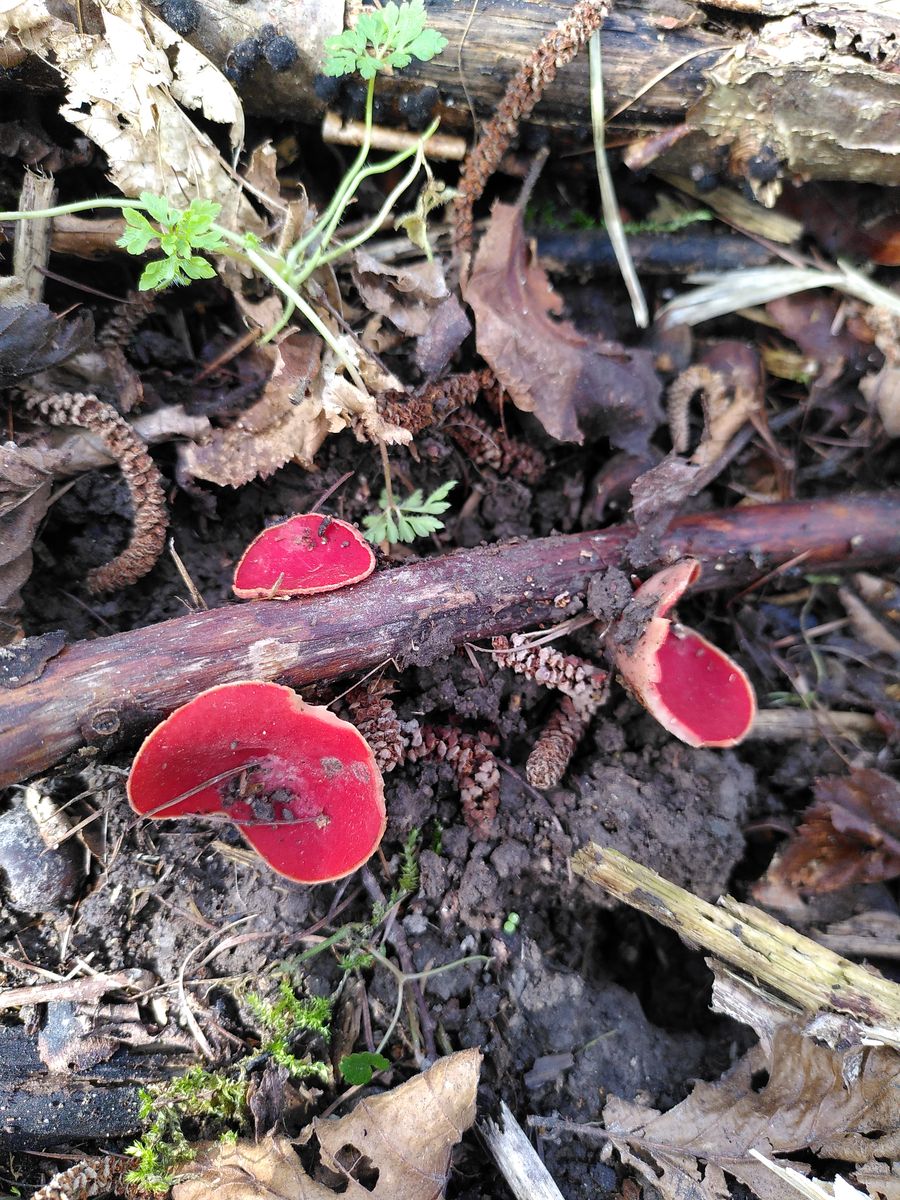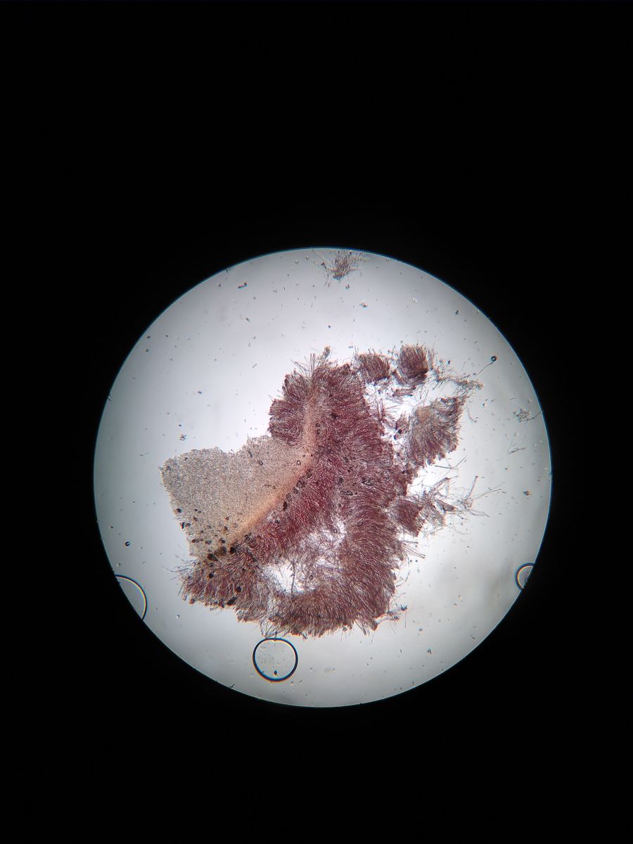 heute gab es keine Morcheln, aber dafür gleich 4 Kelchbecherlinge, von denen ich einen unters Mikro gelegt habe. Ich saß an einem fremden Mikroskop mit kaputtem 40er und ohne Immersionsöl, deshalb gibt's nur ein Bild von der Fruchtschicht mit 10er-Objektiv und dem Smartphone durchs Okular. Das Ergebnis ist entsprechend ganz hübsch, aber sinnlos