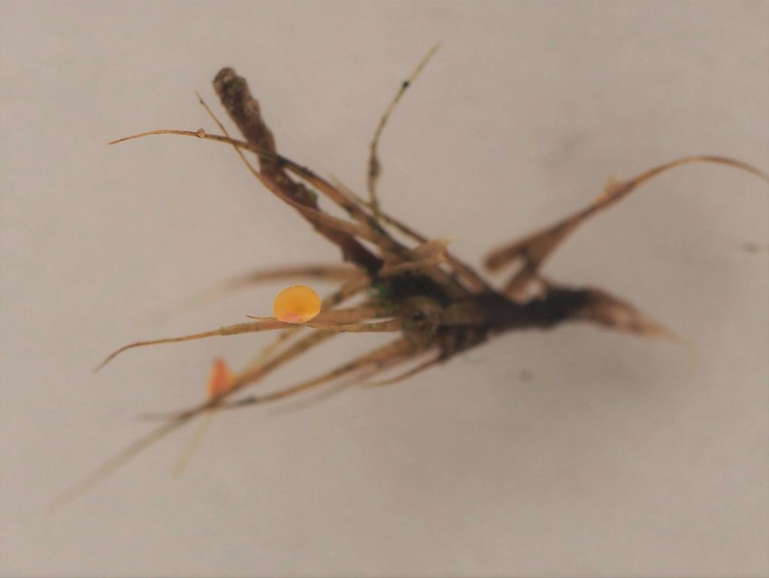 Gelbe helotiale Becher an Moos: Luteodiscus epibryus