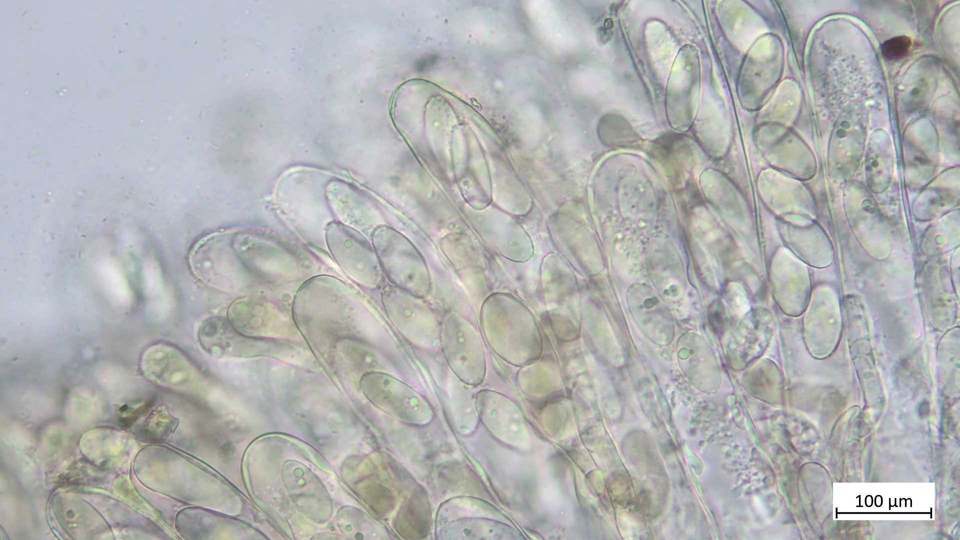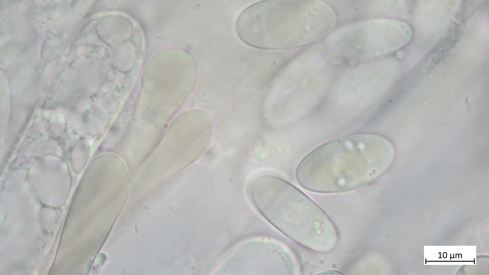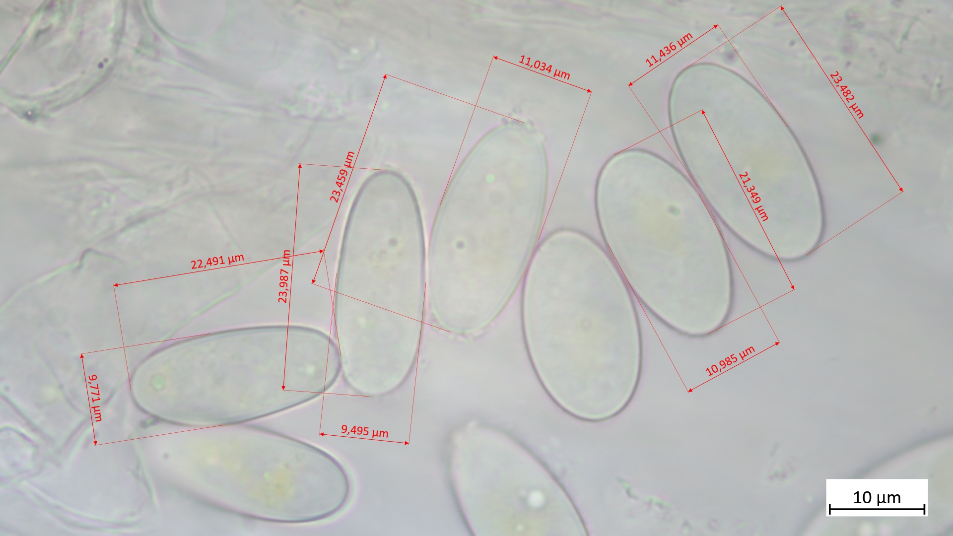 Die Sporen würden passen von Form (Bilder) und Größe: 21,3-24,0 µm (av. 23,0 µm, SD 0,9 µm) x 9,5-11,4 µm (av. 10,5 µm, SD 0,8 µm); Q = 1,9-2,5 (av. 2,2, SD 0,2)(n = 5)