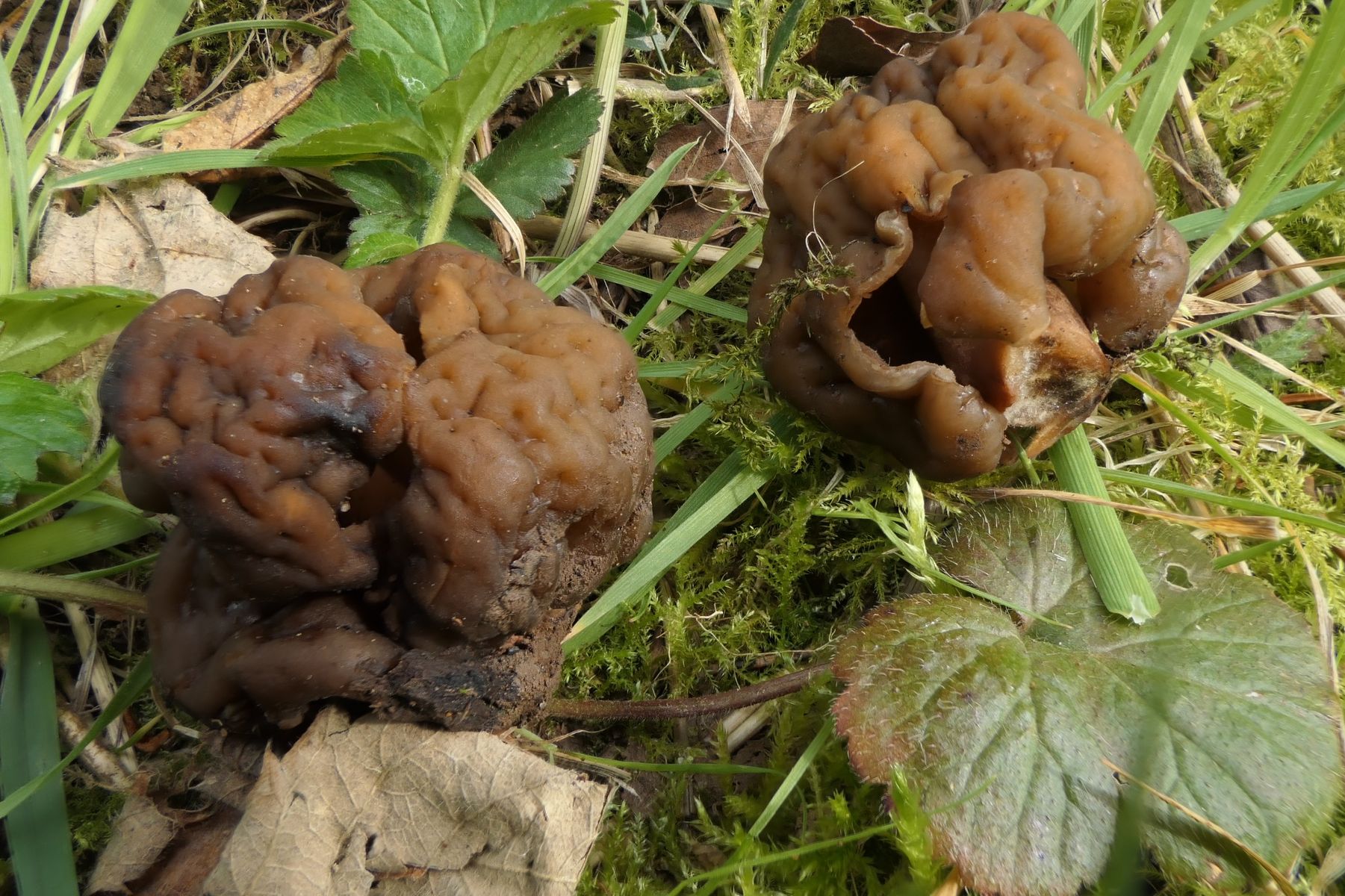 heute ist uns beim APV-Treffen eine etwas seltsame Gyromitra untergekommen (bei Obstbäumen, Weißdorn, entfernt aber auch Nadelbäume). Auf basischem Boden.