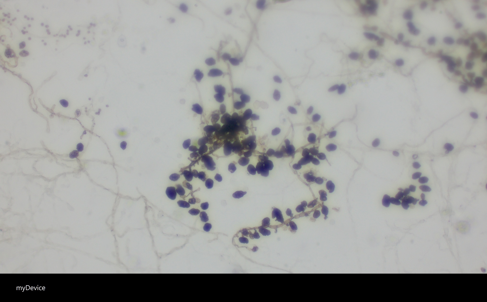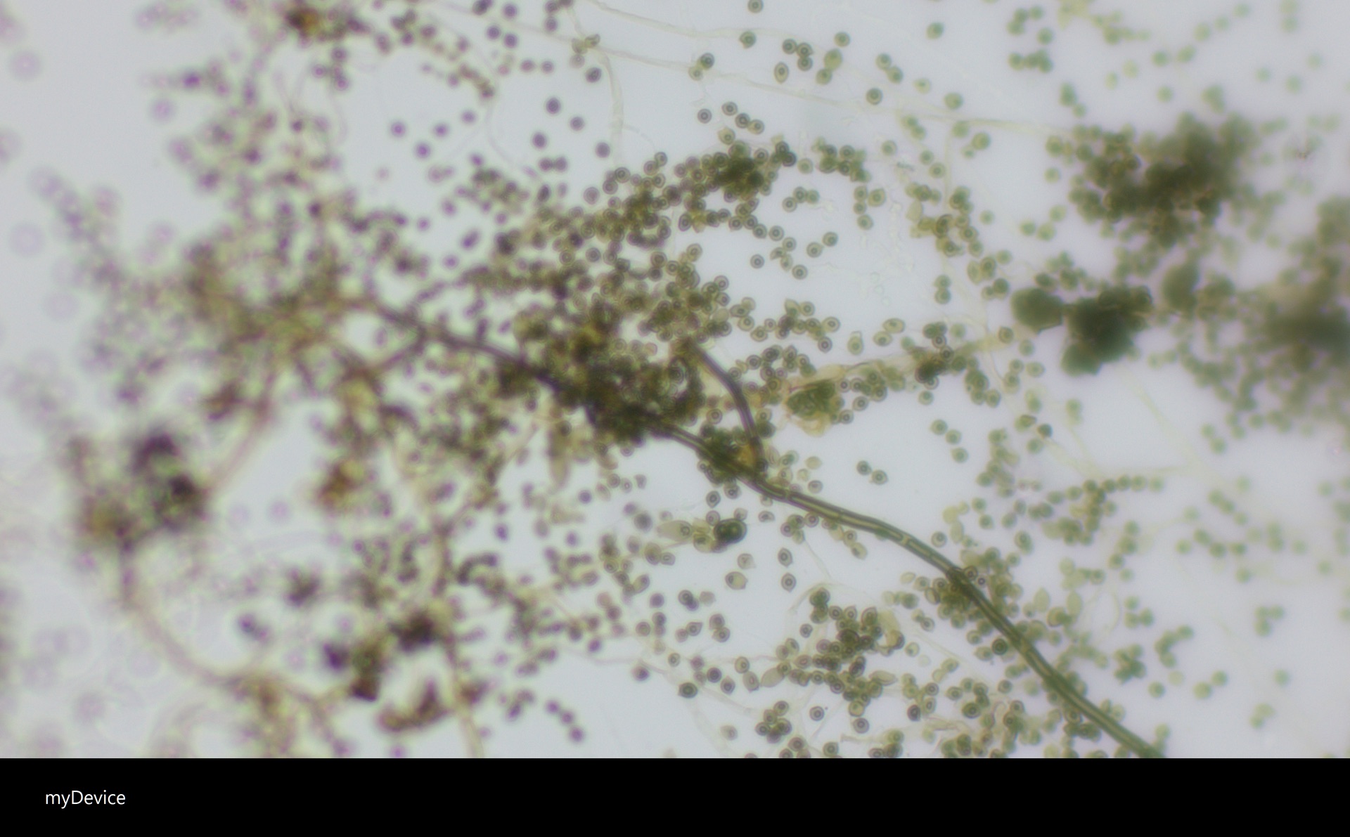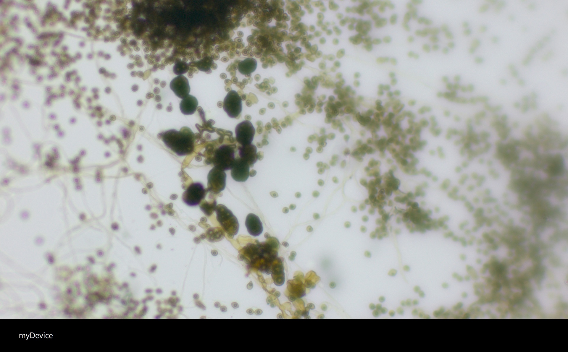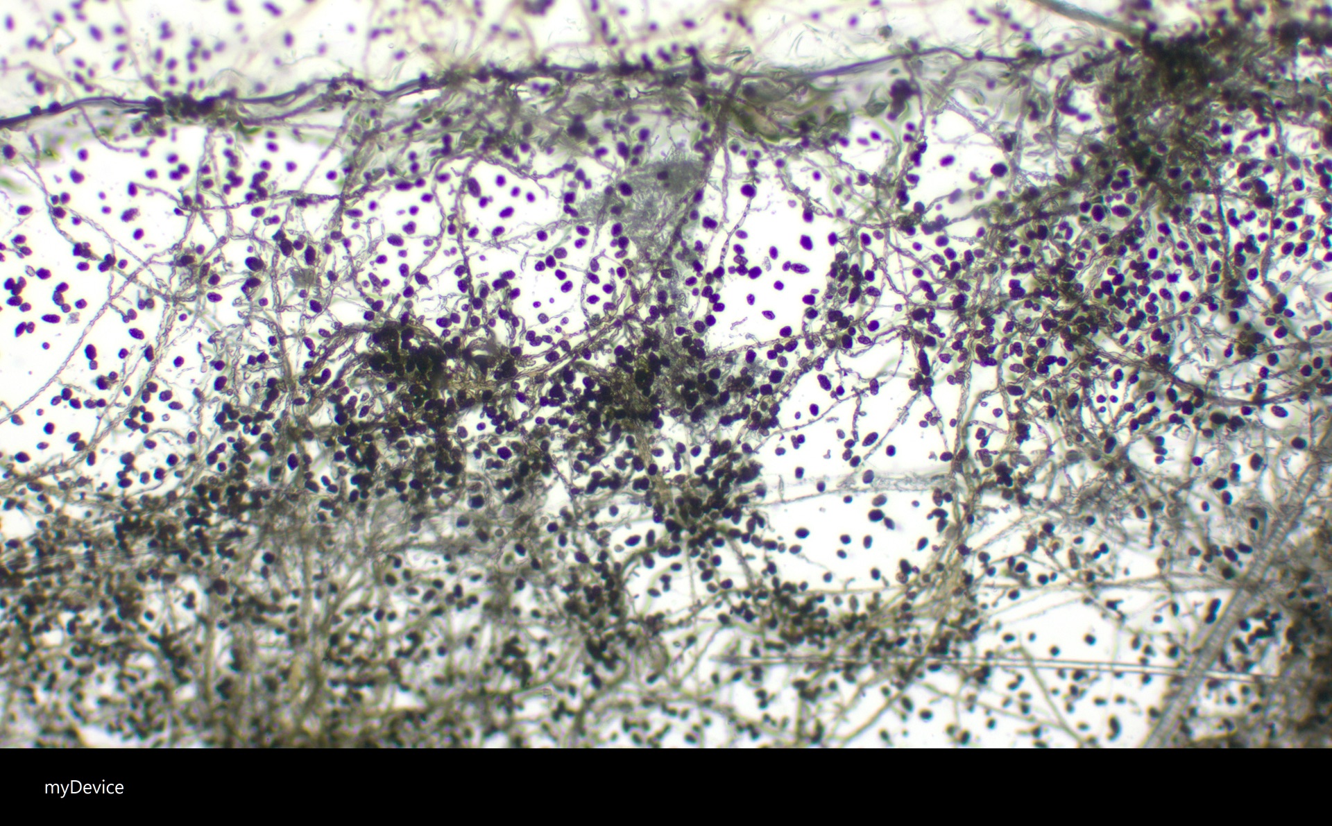 Eine größere Vergrößerung habt ihr nicht wählen können? Pilze allein aufgrund von Myceleigenschaften zu bestimmen ist unmöglich. Zumindest sehe ich nix, was hier für Aspergillus niger spricht.