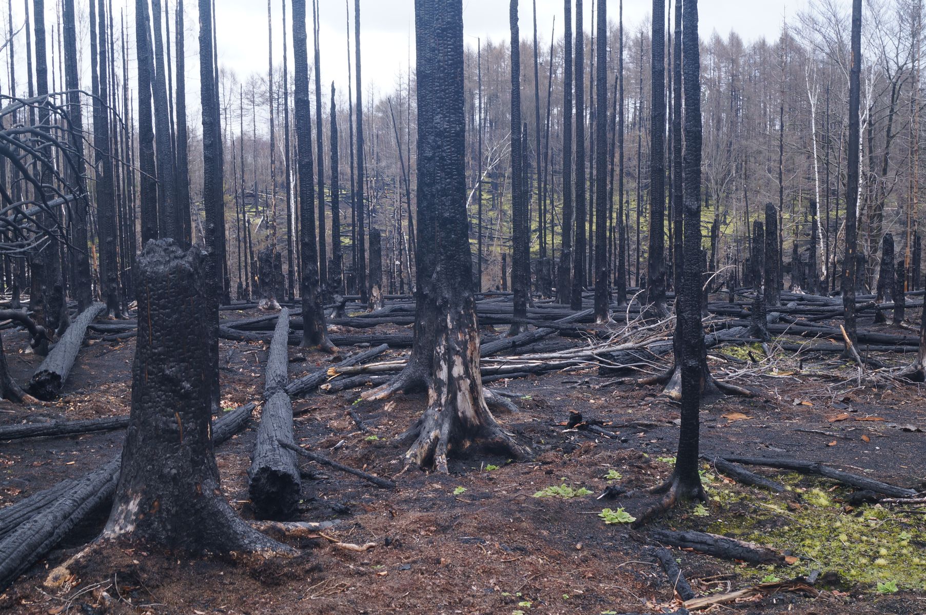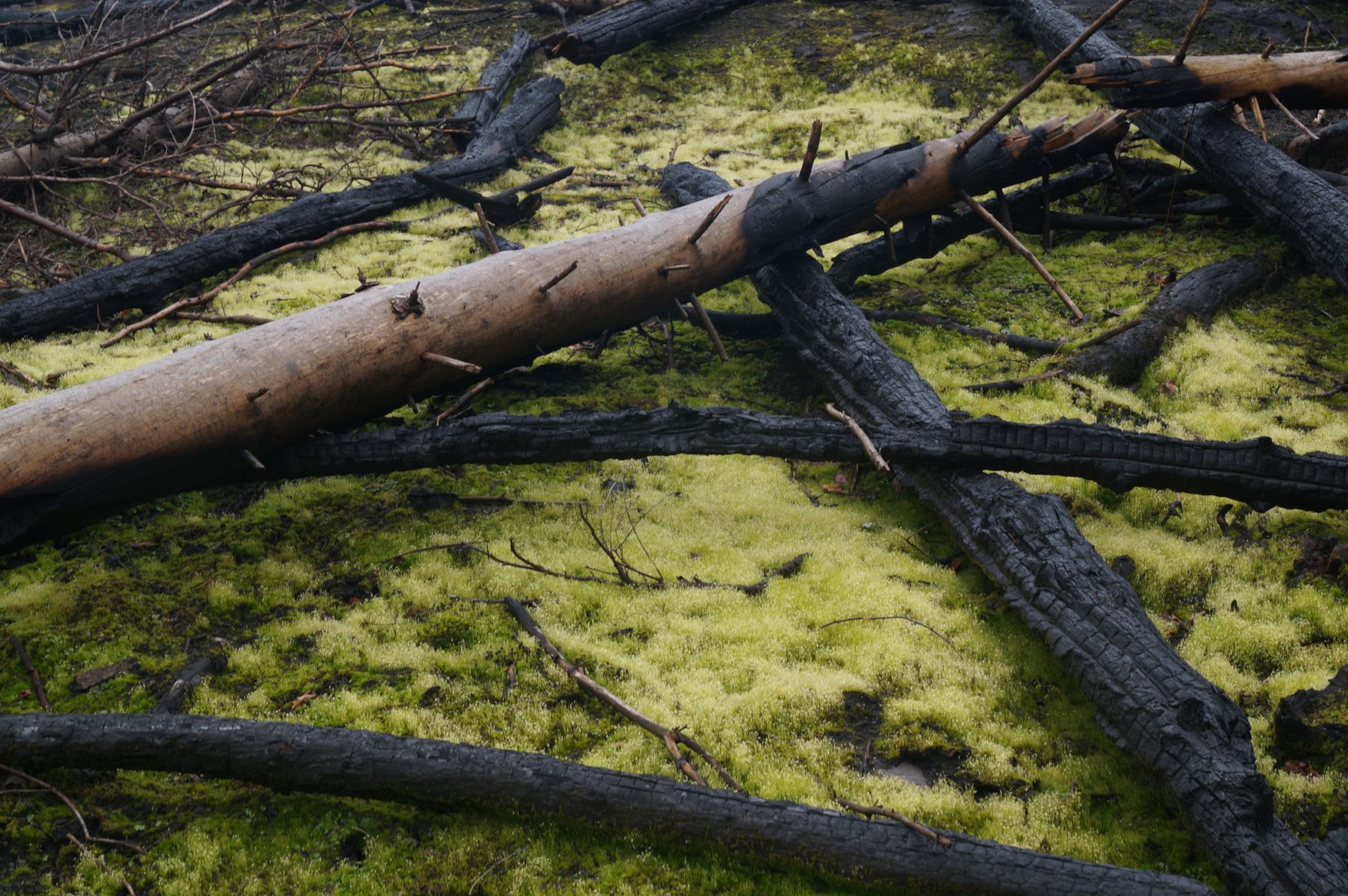 Einige Impressionen von den Brandstellen. Es war beeindruckend wie schnell die verbrannte Erde wieder "grün" wurde. Es waren vielfach spannende Moose zu beobachten.
