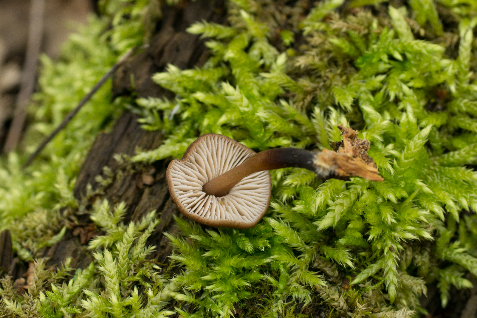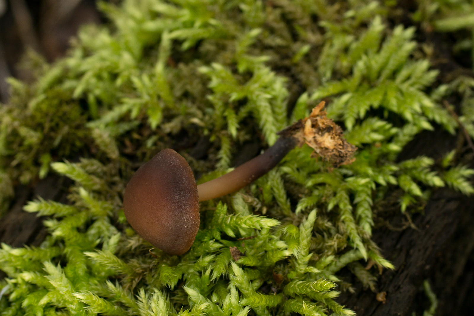 Er wuchs auf einem Stück verrottendem Laubholz auf einigermaßen kalkhaltigem Boden. Ca. 2cm hoch, Stiel und Hut schwach weiß bepudert.