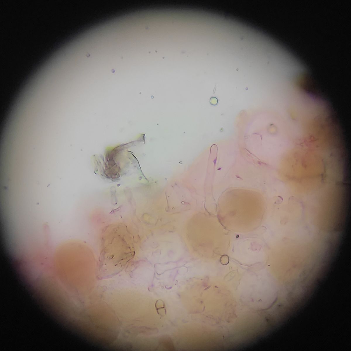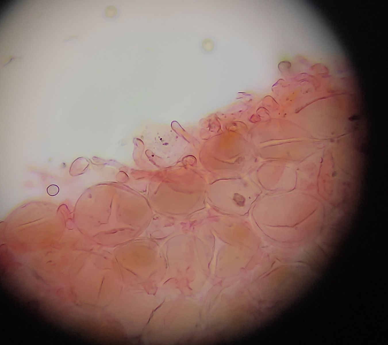Da ich ein paar Tage frei habe, dachte ich mir ich müsste mal wieder bissl mikroskopieren üben. Objekt der Begierde war dieser Dachpilz.