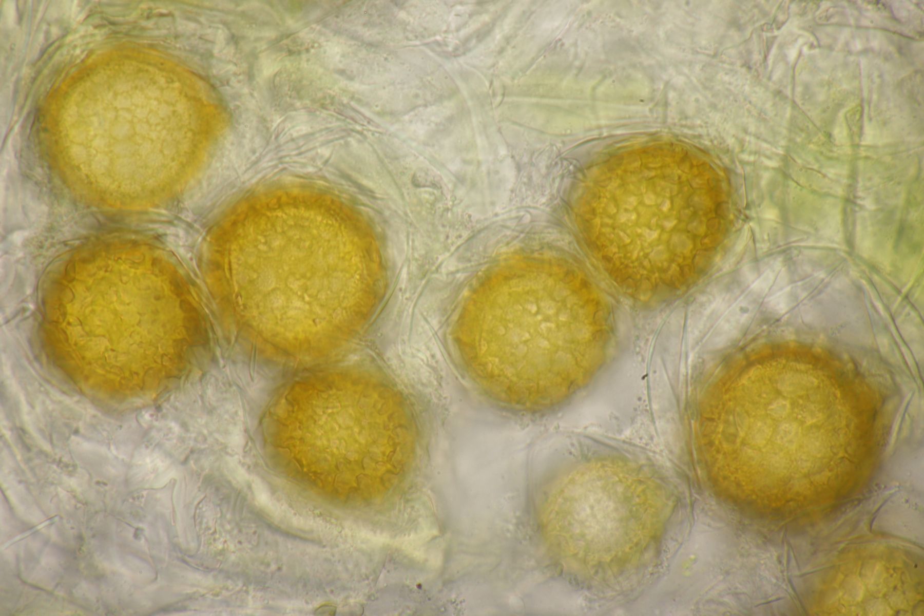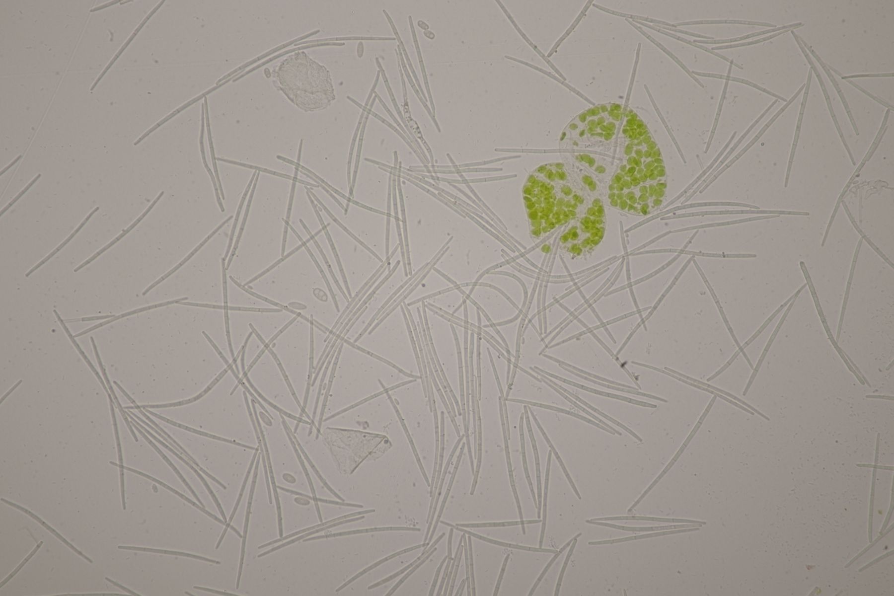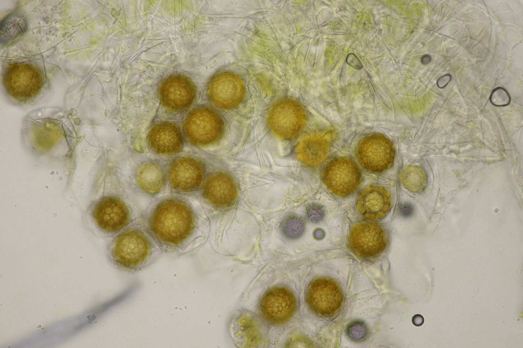 6. Ein kleines, aprikosenfarbenes Becherchen auf Pinus sylvestris Nadeln, das ich für Pseudohelotium pineti halten möchte