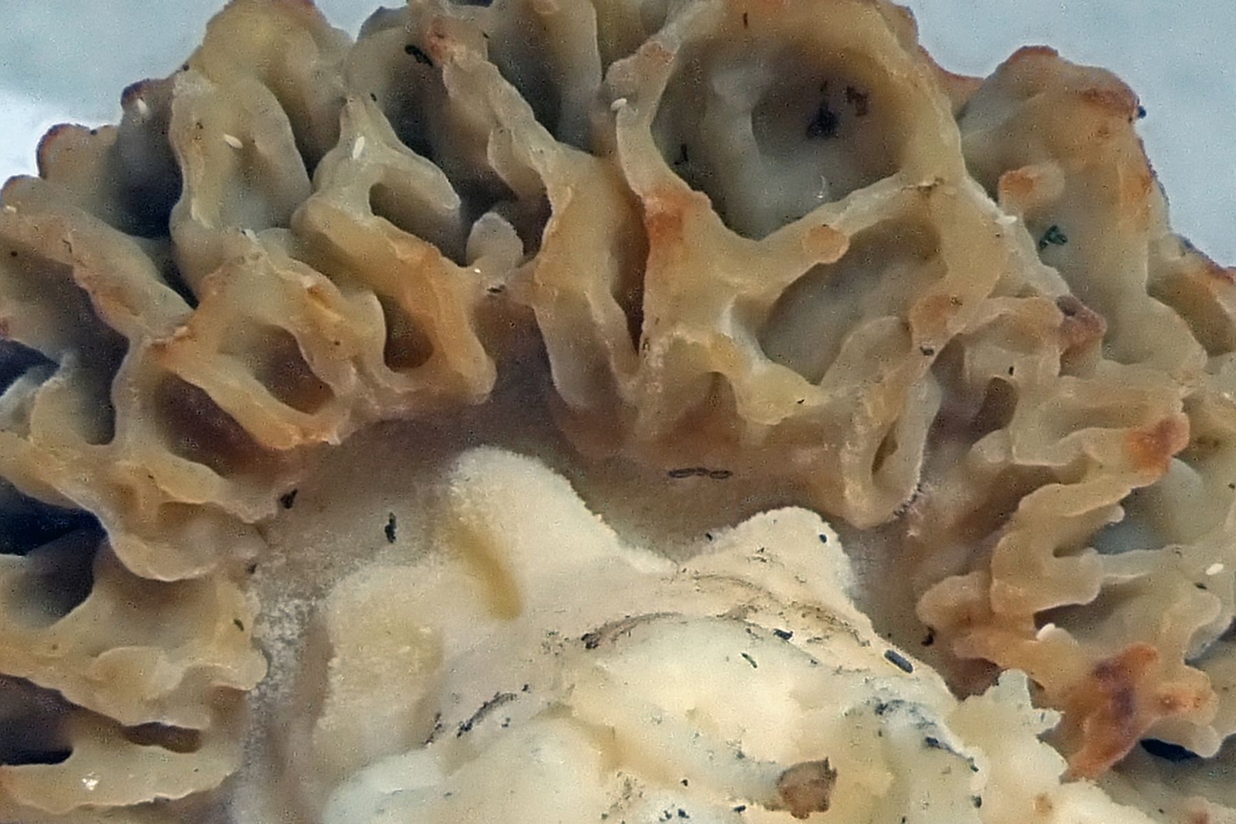 die Morchella vulgaris cf habe ich jetzt noch näher betrachtet. Habe auch nochmals eine Nachlese am Standort betrieben und noch einen reiferen Fruchtkörper für eine Untersuchung mitgenommen.