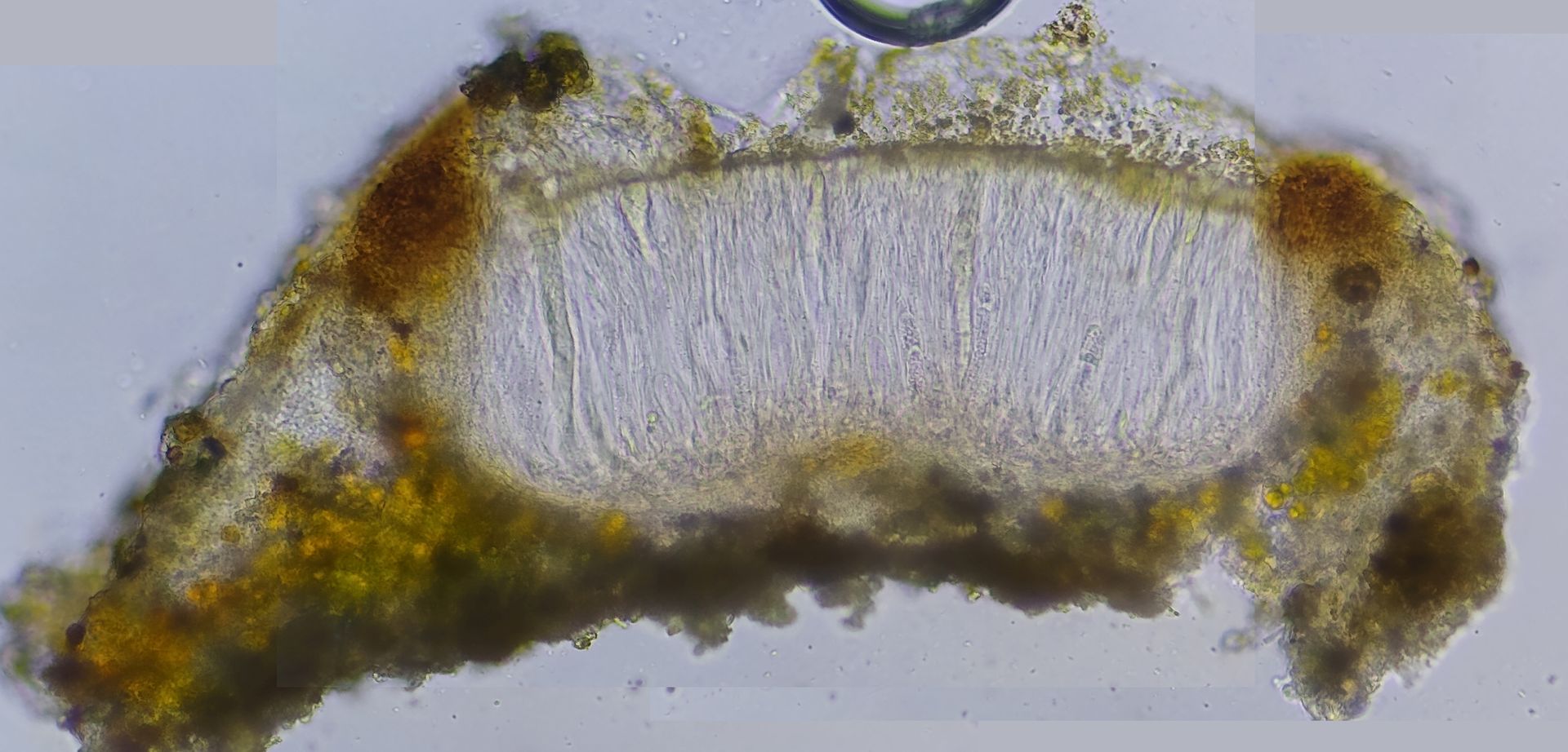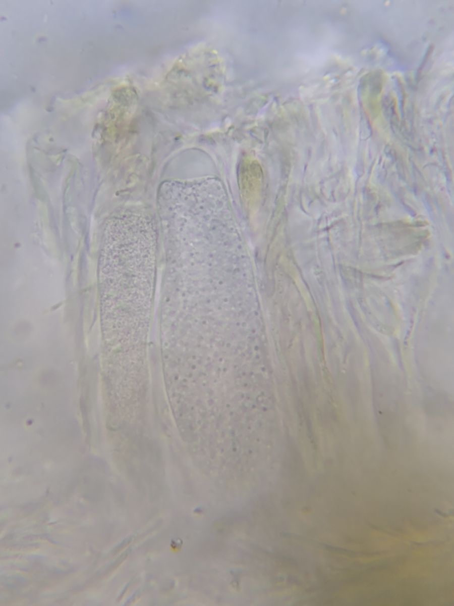 Das Excipulum ist braun und auf den oberen Teil beschränkt. Das Hymenium ist etwa 90-100µm dick