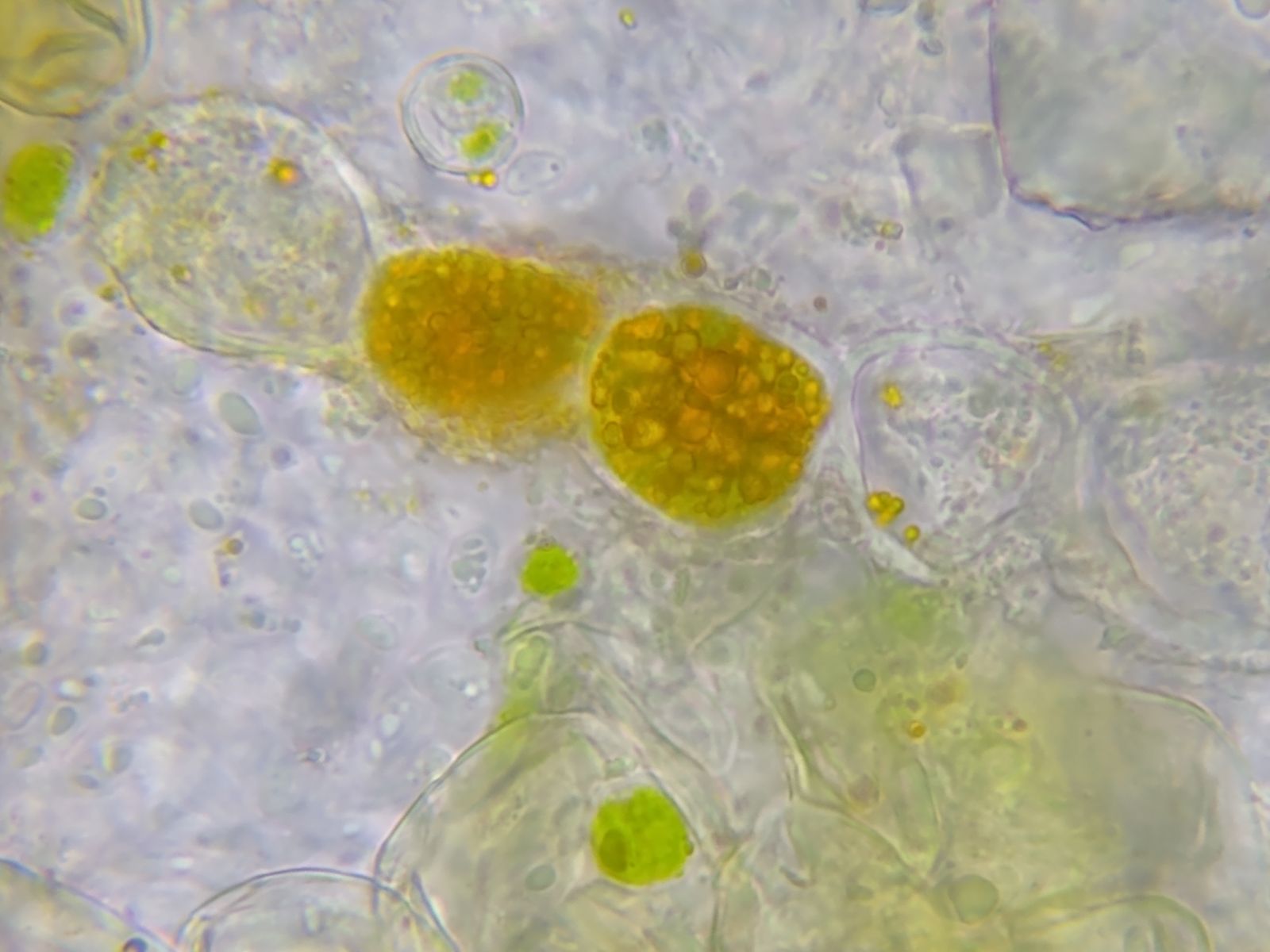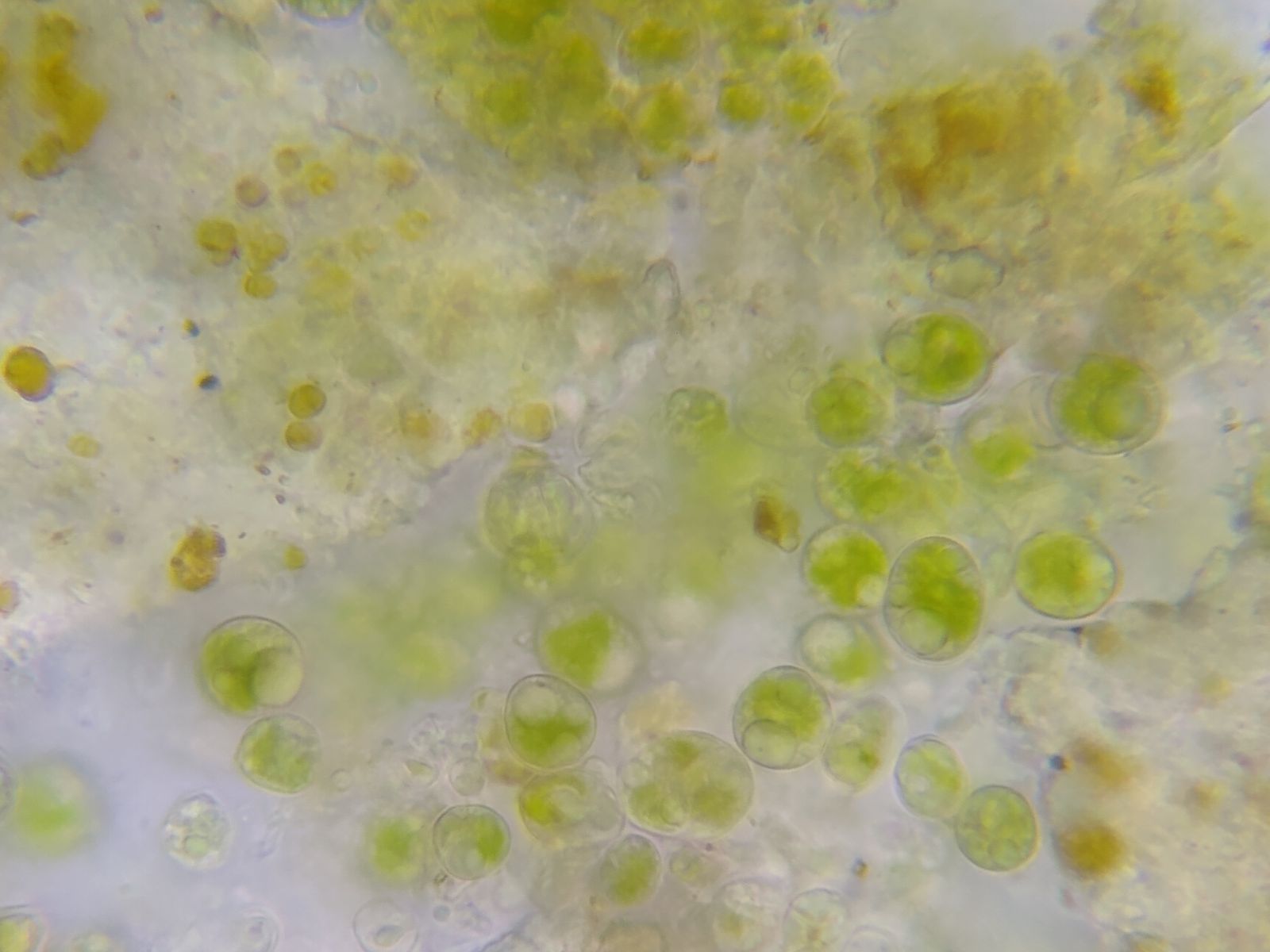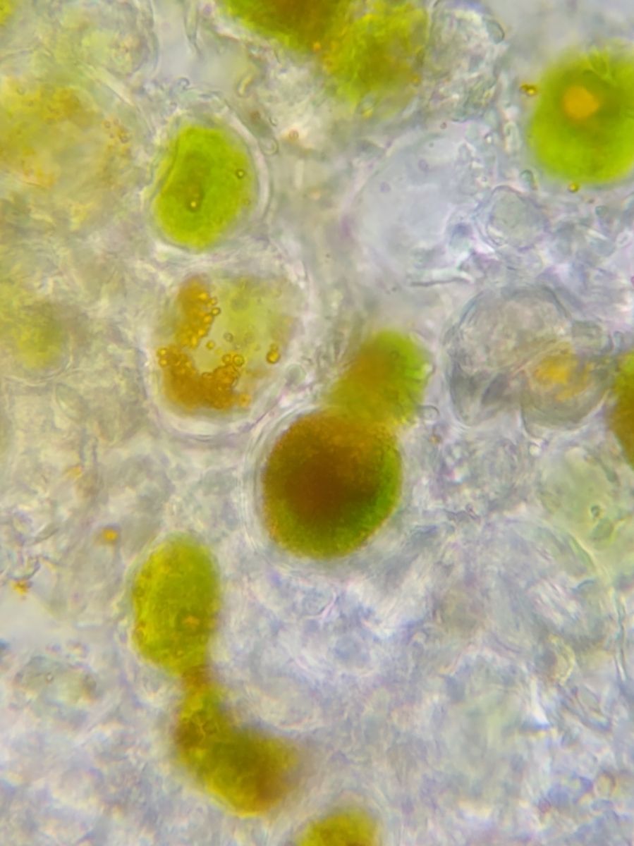 Bild 6 Der coccoide Algenpartner weist riesige gelbe Tropfen auf - Trentepohlia oder nicht - das ist hier die große Frage