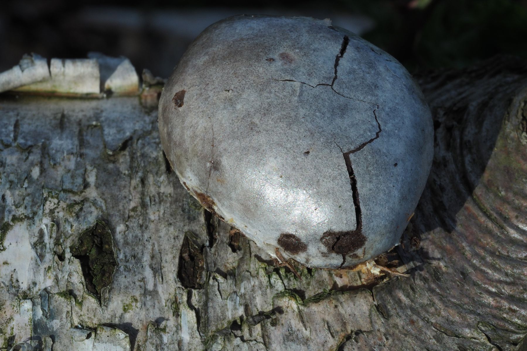 Bild 5: Alter silbrig glänzender Fruchtkörper, Außenhülle bereits aufgerissen