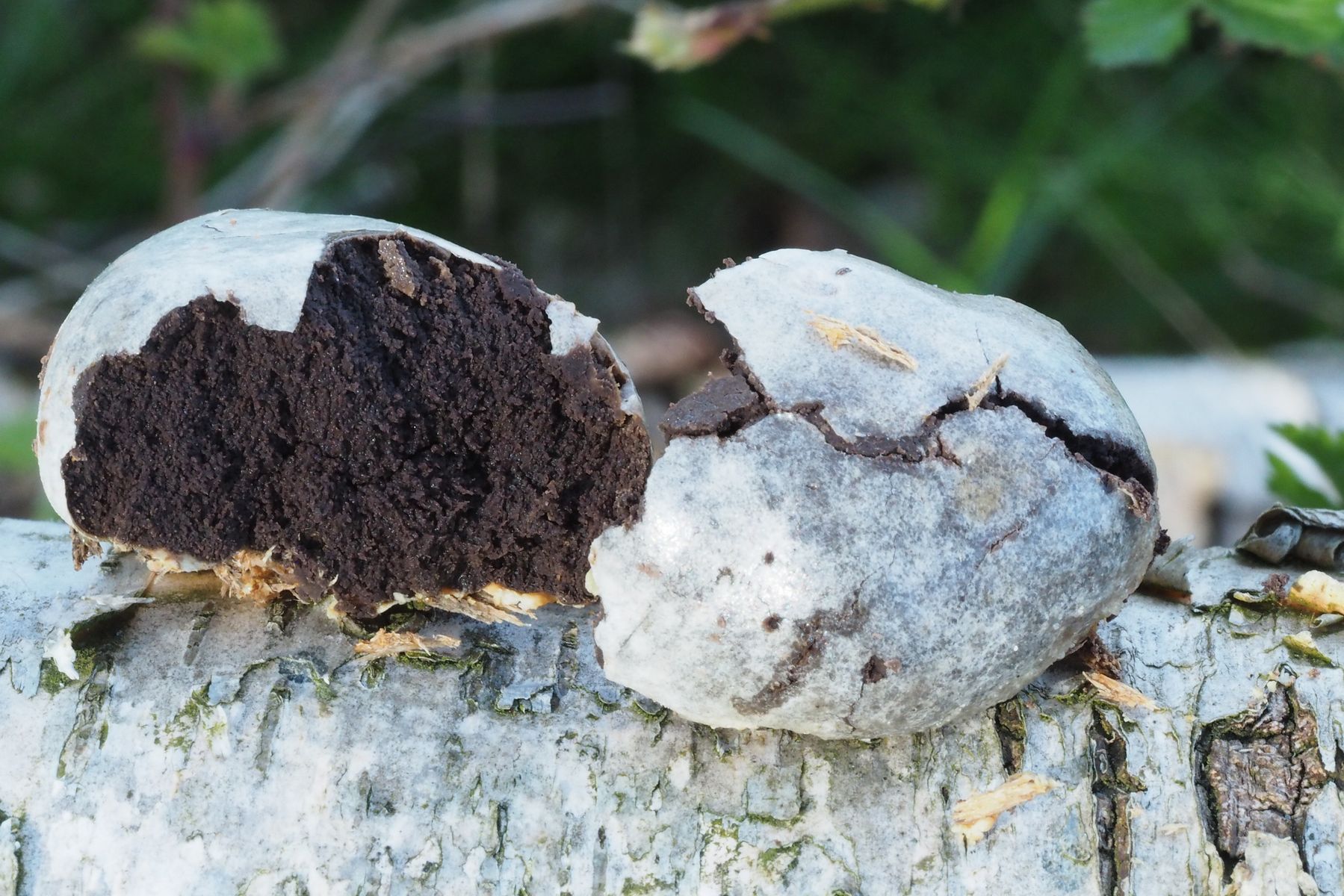 Bild 6: Durchbrochener Fruchtkörper mit "braunem Innenleben"