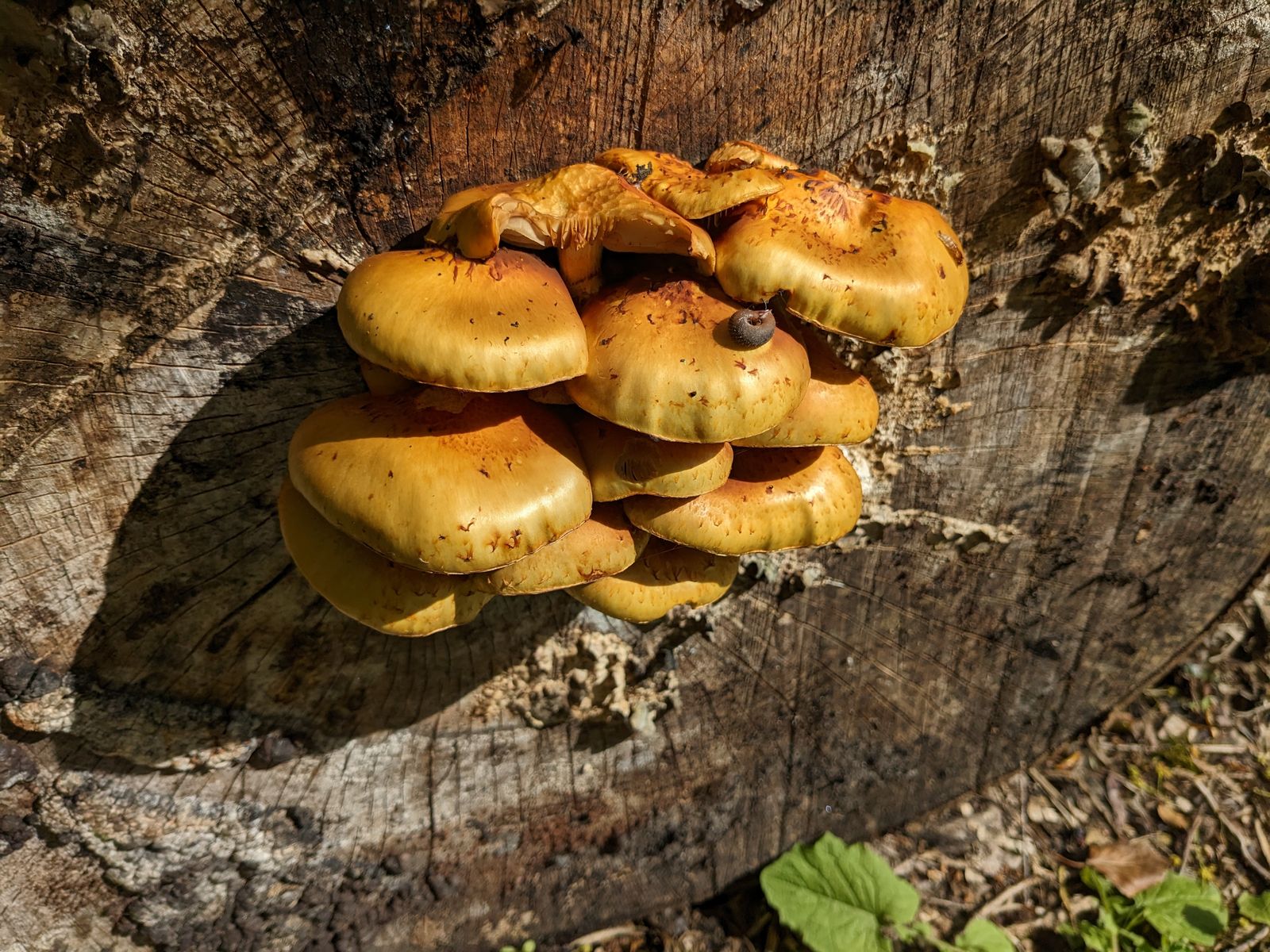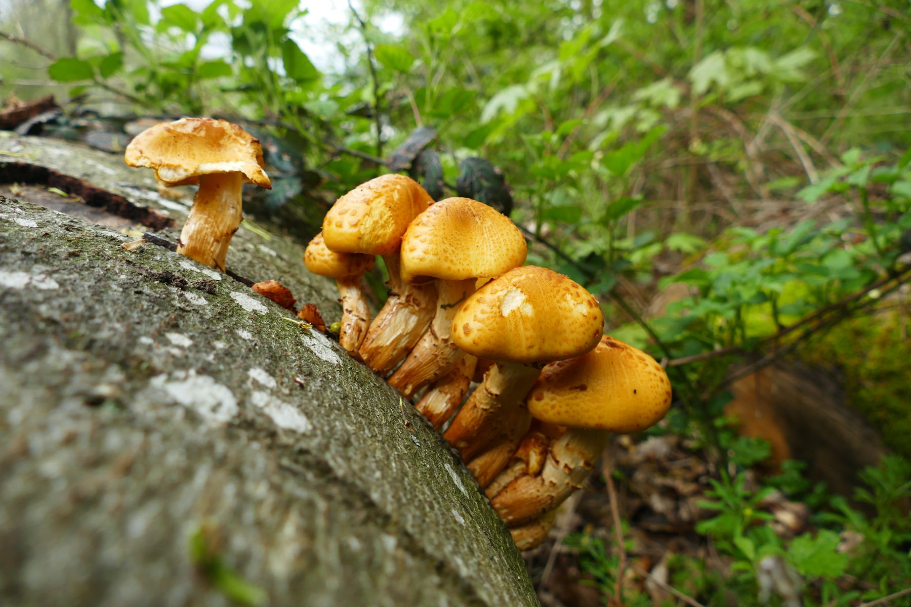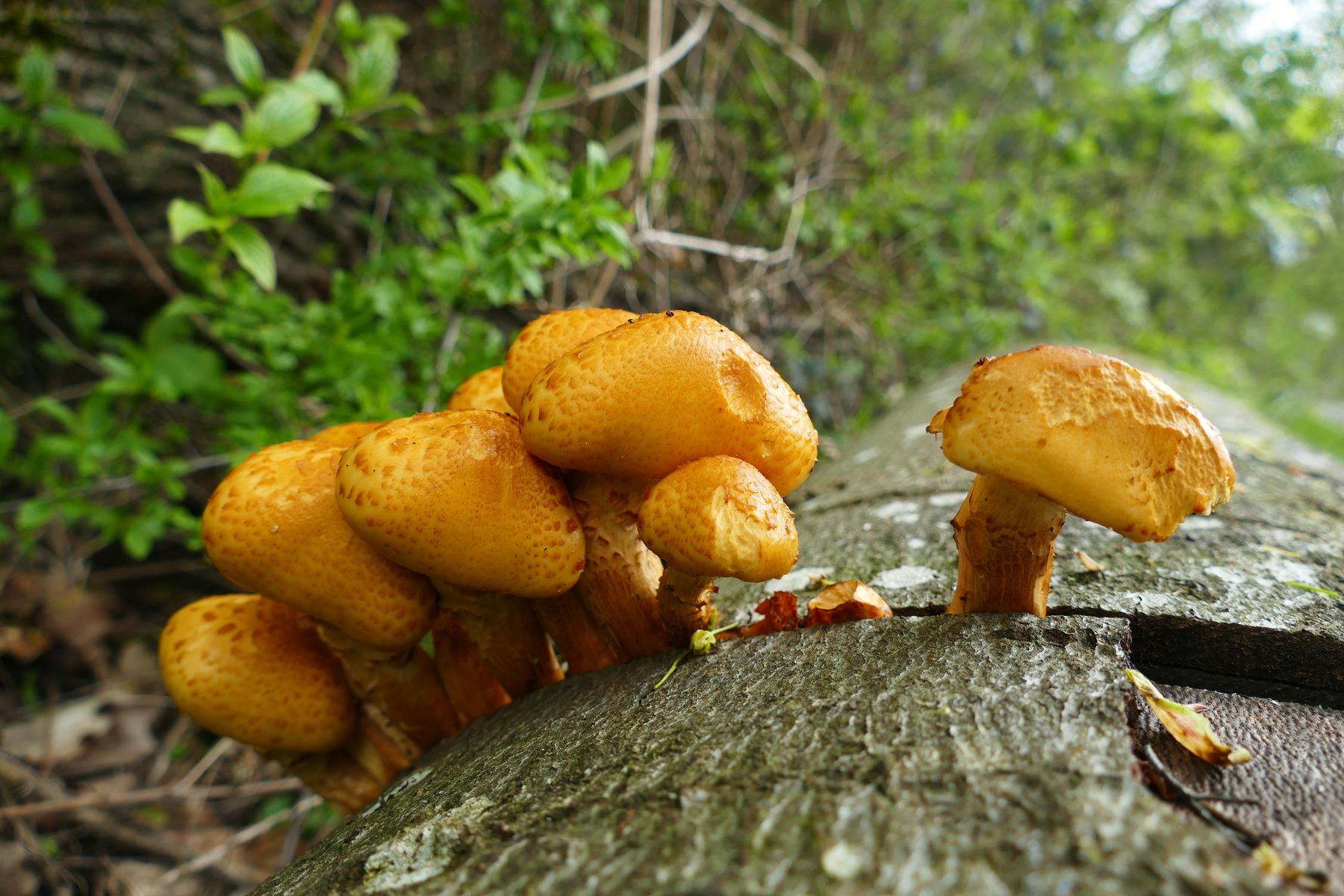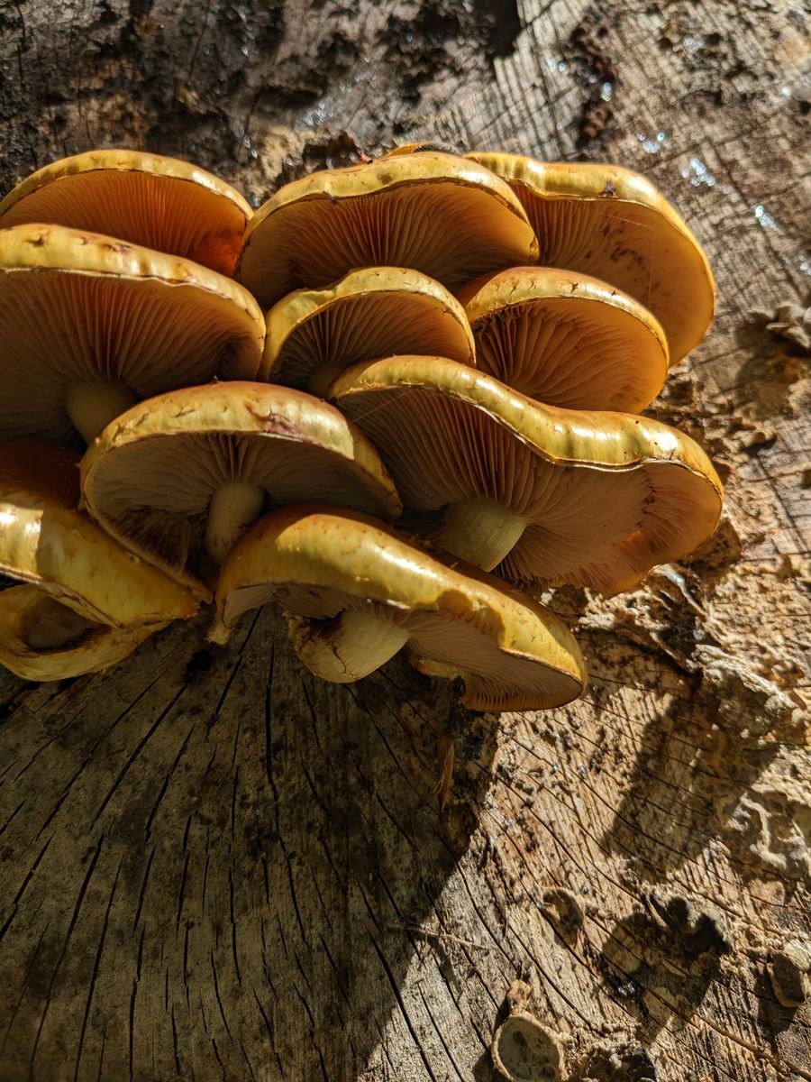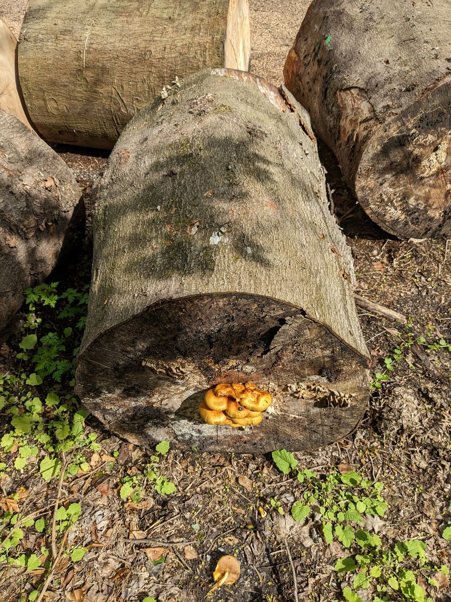 am Sonntag fielen mir auf dem Heilbronner Hausberg von Weitem unrealistisch gelbe Objekte an einem Baumstamm (Rotbuche) auf.