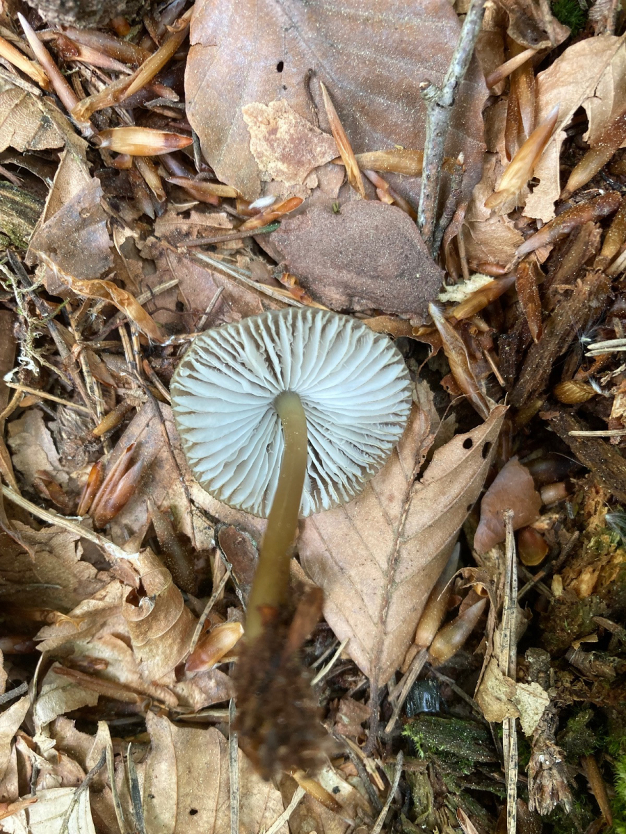 Nitrathelmlinge ziehe ich aufgrund des doch recht hellen Stieles, (ähnlich Fichtenzapfenrübling/ strobilurus esculentus) und des weniger hygrophanen und weniger gerieften Hutes eher nicht in Betracht.