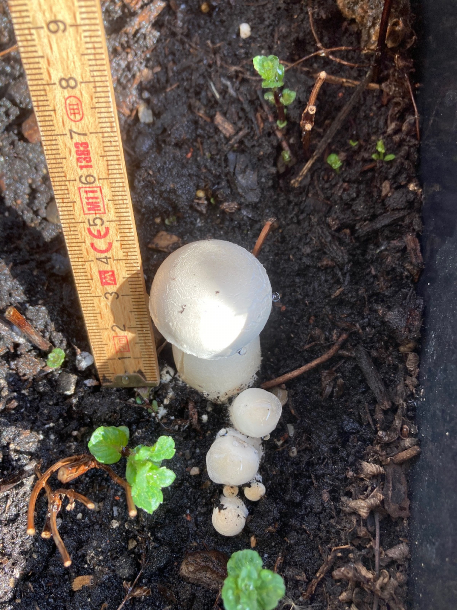 Ich habe in meinem kleinen Hochbeet Pilze. Normalerweise ist da nur Pfefferminze drinn.