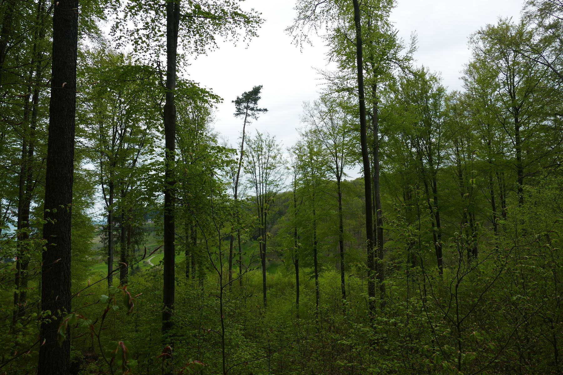 Bild 1 Waldabschnitt am Hang über Sandstein mit Pilzfund