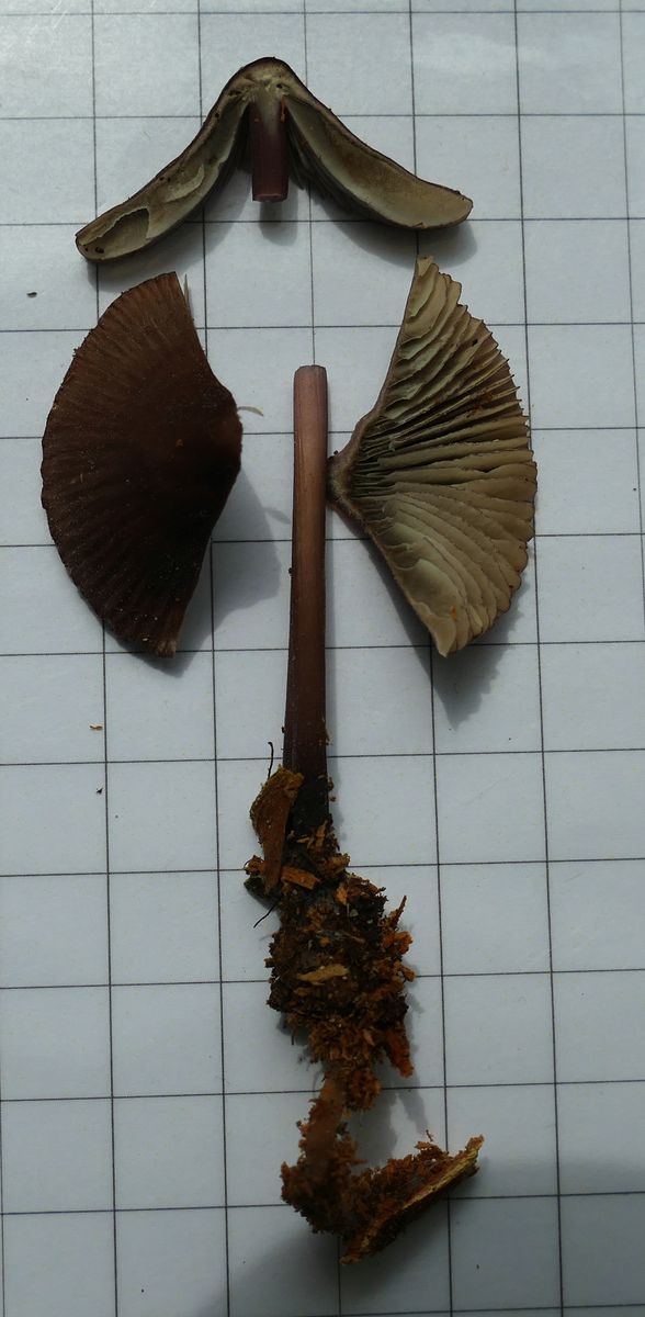 Könnte es sich um Mycena rubromarginata handeln?