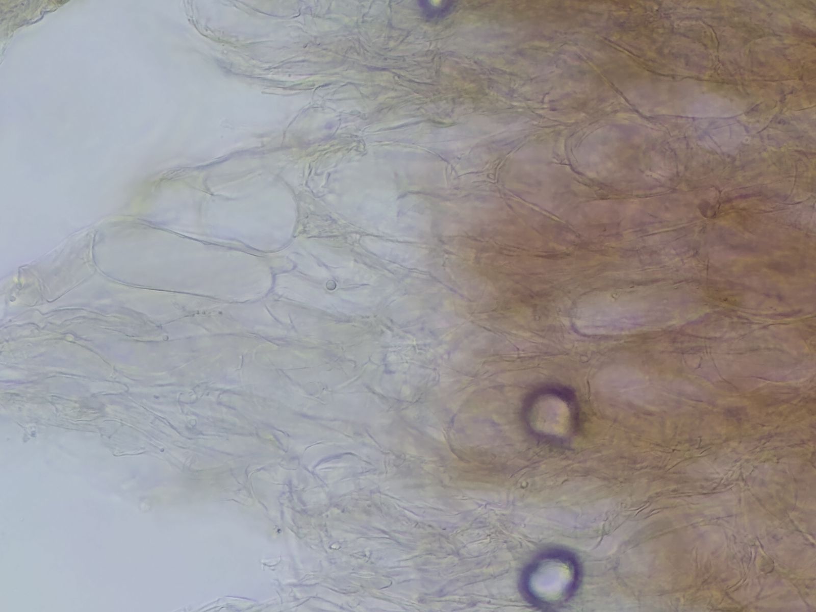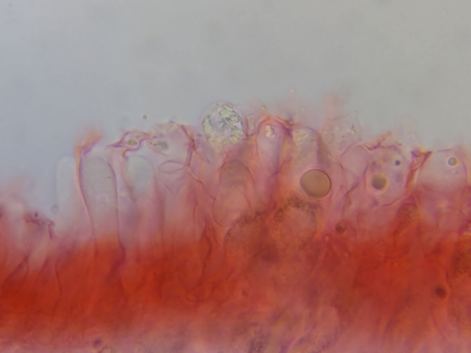 Typische mycena-artige Cheilozystiden mit unförmigen Auswüchsen habe ich nicht finden können.