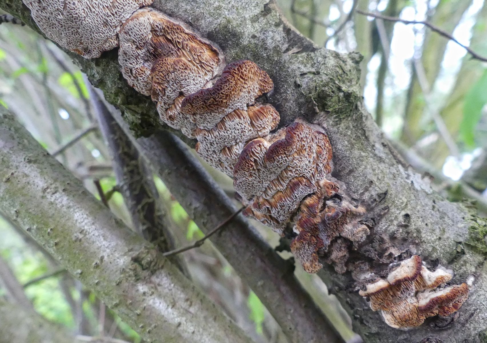 Den Pflaumen-Feuerschwamm kenne ich mit deutlich feineren Poren.