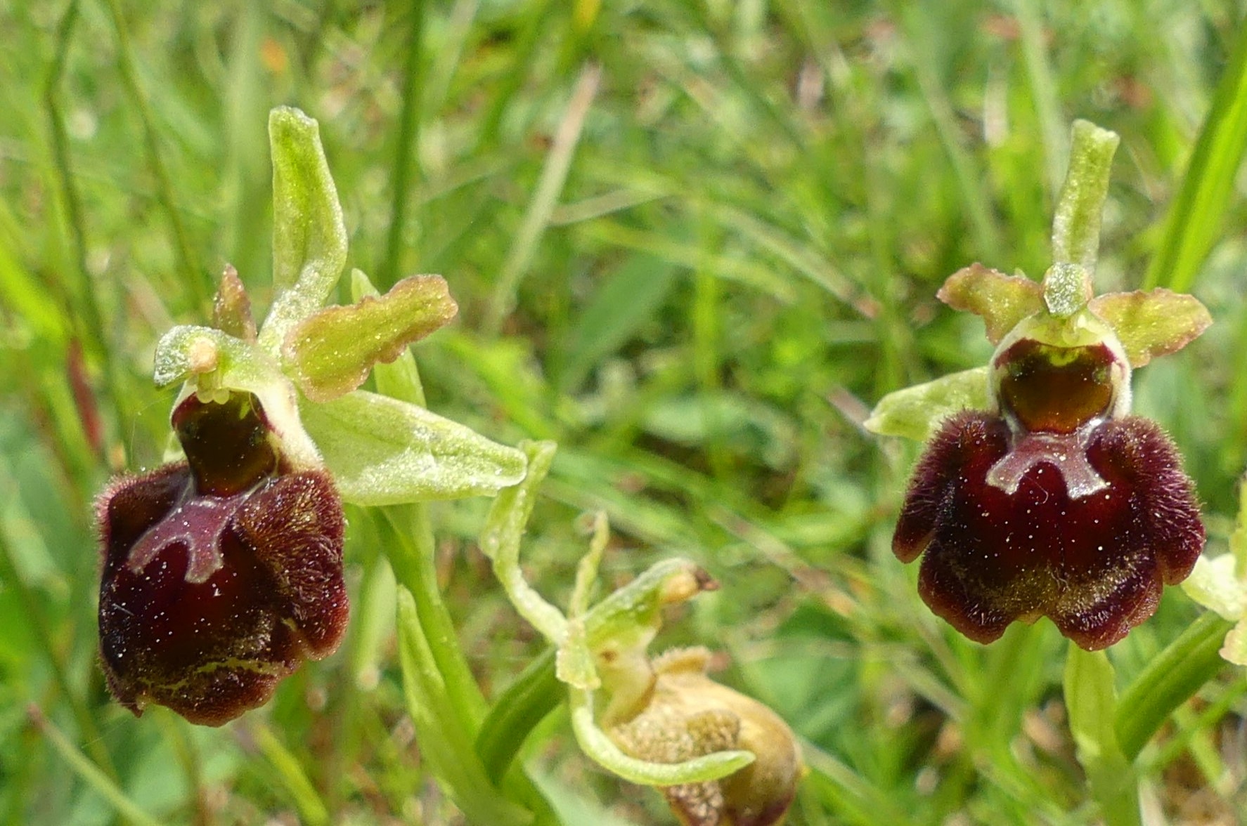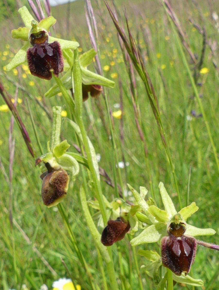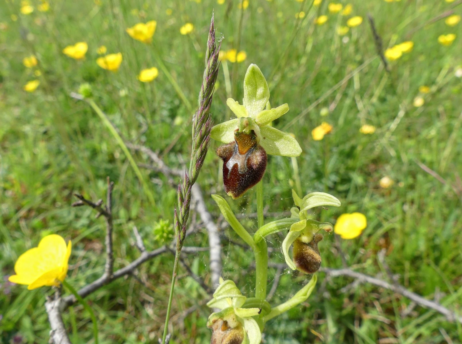 Gleich daneben standen Spinnen-Ragwurzen (Ophrys sphegodes)