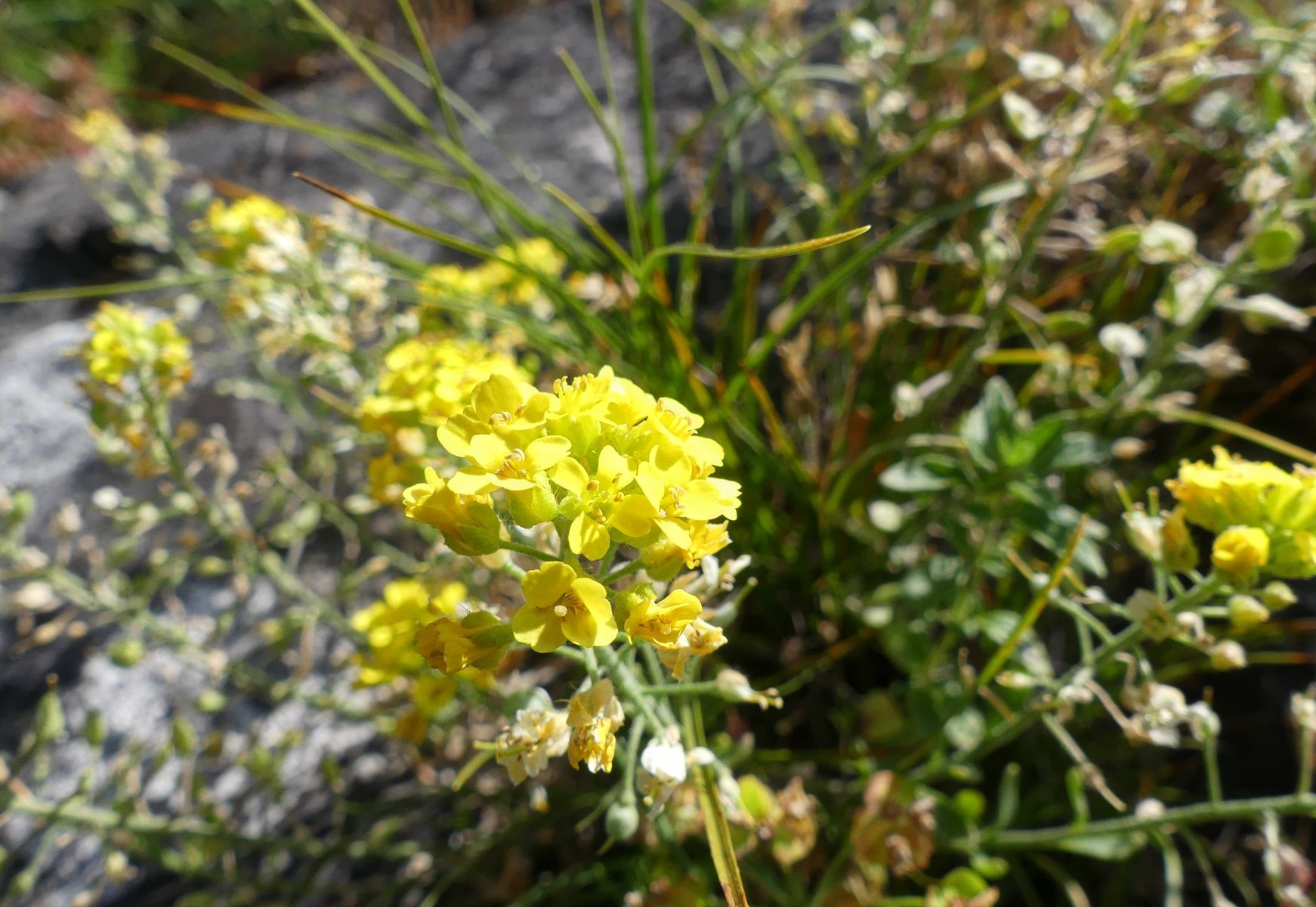 Entweder Berg-Steinkraut (Alyssum montanum), in Bayern RL2, oder Alyssum gmelinii, in Bayern RL1. Das muss ich mir vor Ort noch einmal genauer ansehen, wobei beides schöne Funde sind.