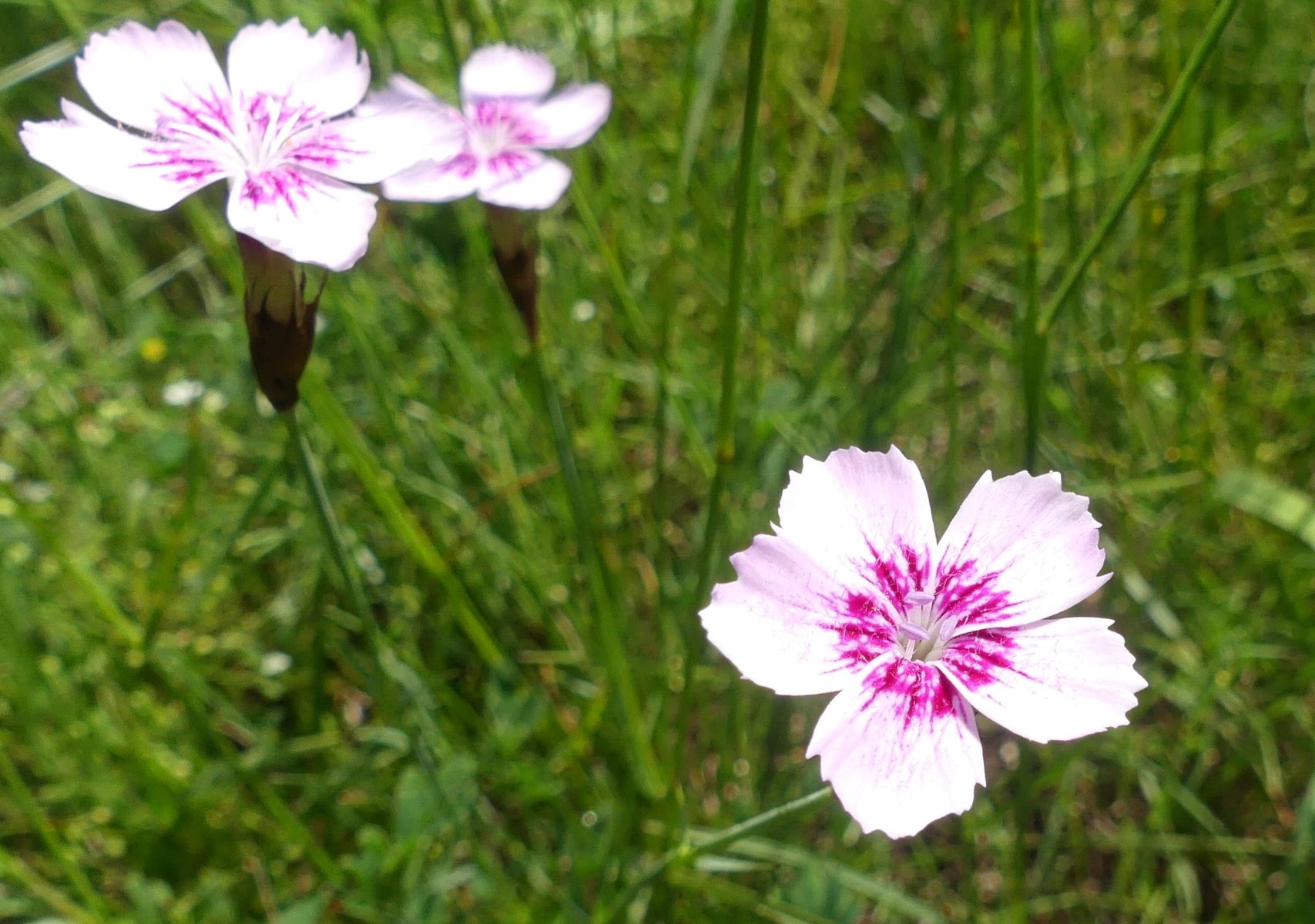Und dann fand ich etwas ganz komisches. Kartäusernelken? Heidenelken? Mit weißen Blüten? Hat jemand eine Idee?