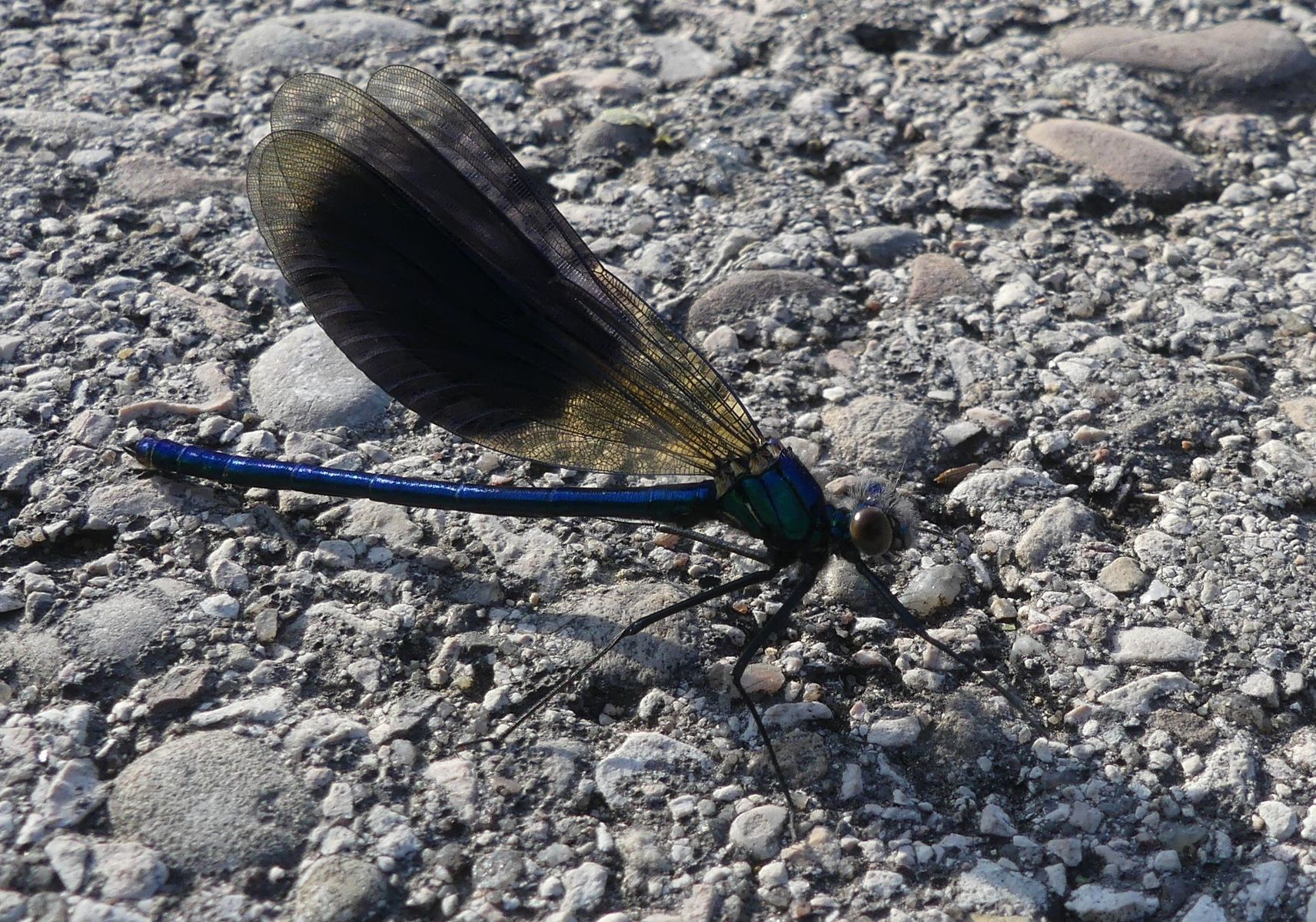 die Prachtlibelle könnte ein Männchen der Gebänderten Prachtlibelle Calopteryk splendens sein.