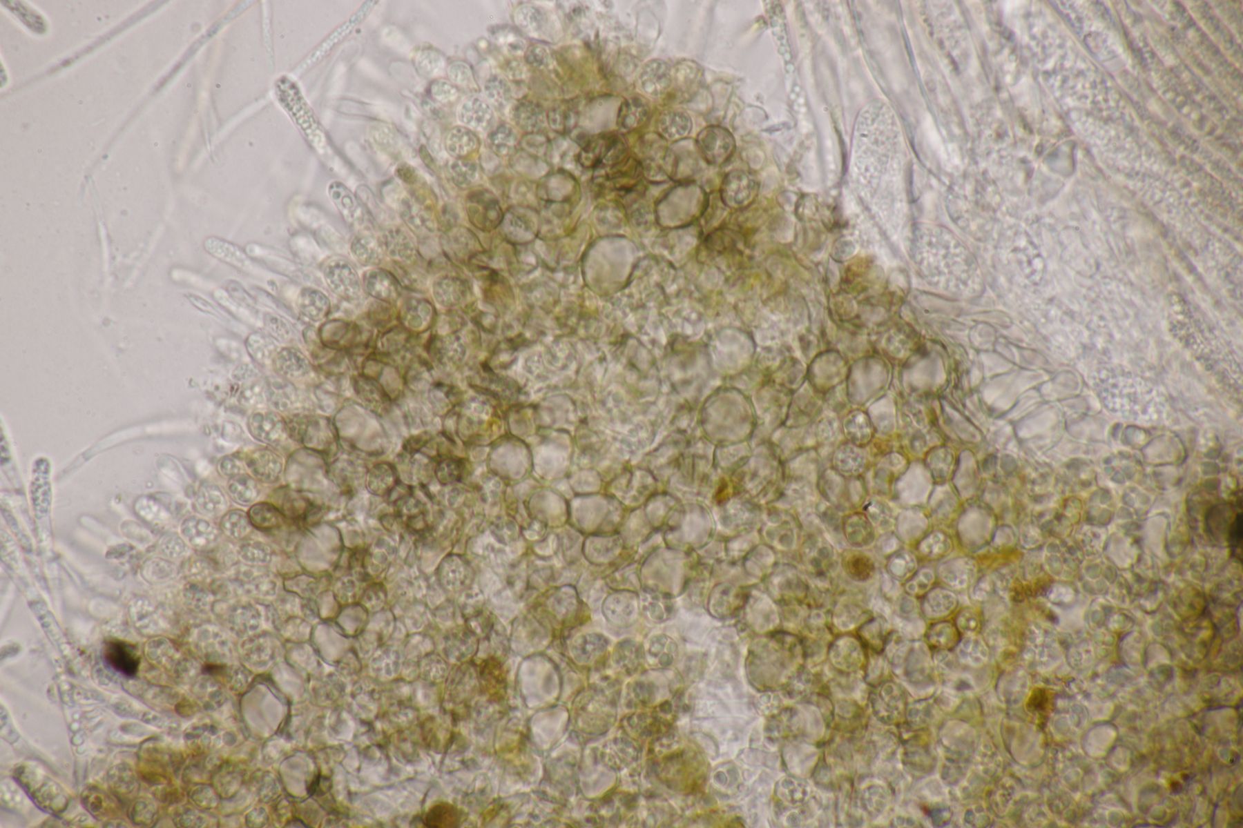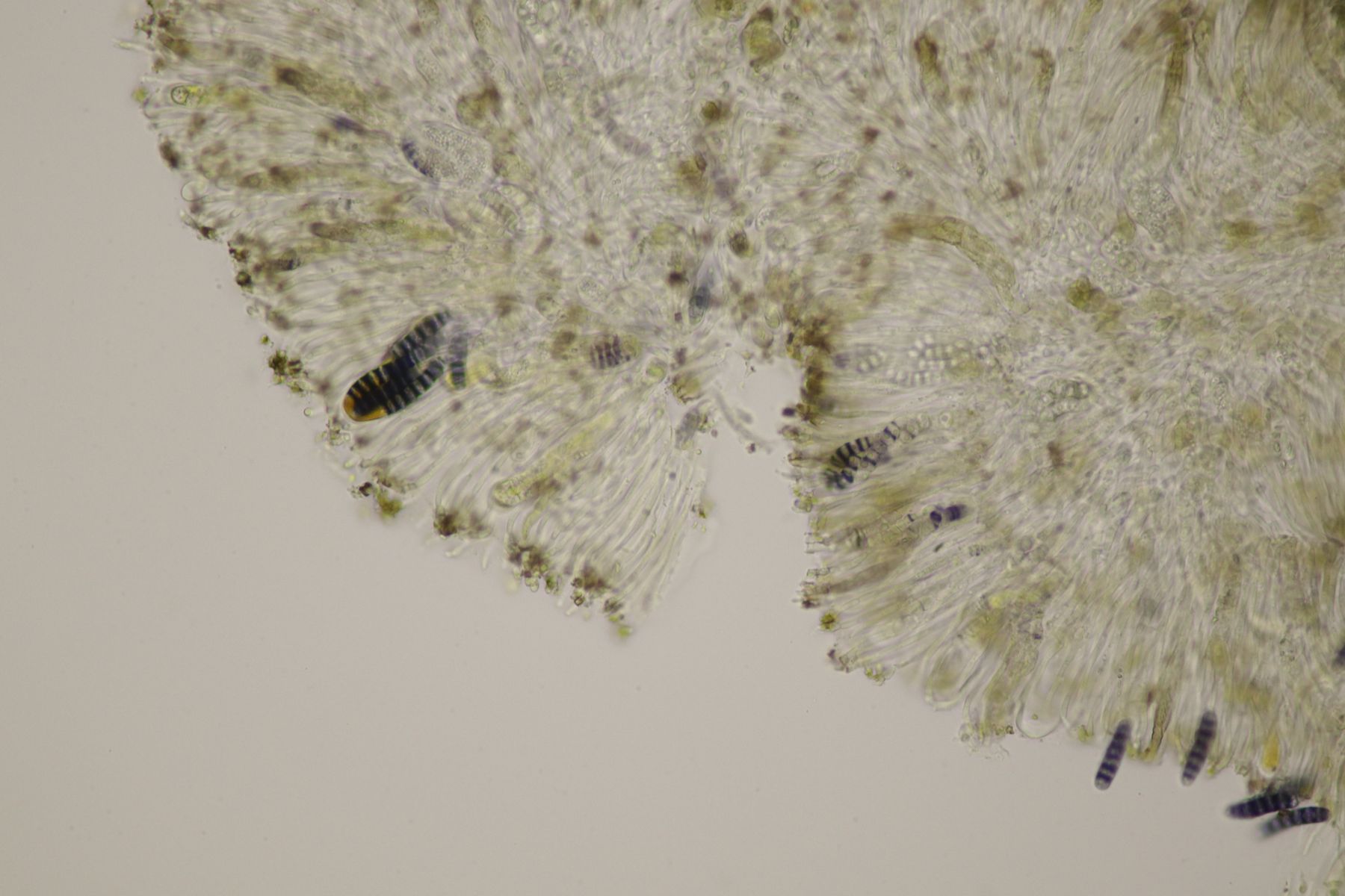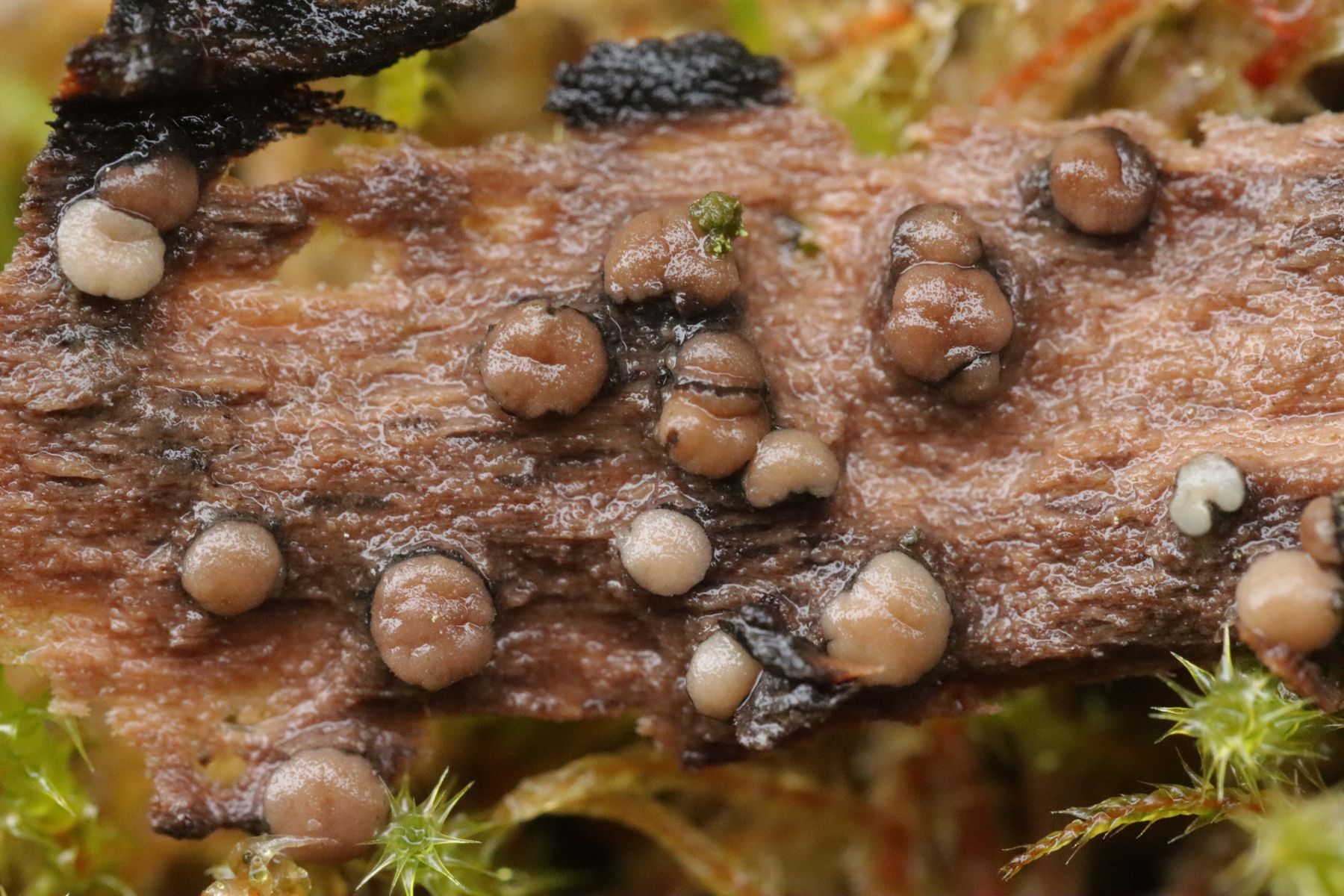 3. In einem Bach auf Holz wuchs neben Vibrissea flavovirens auch dieser Pilz, zu dem mir jede Idee fehlt....