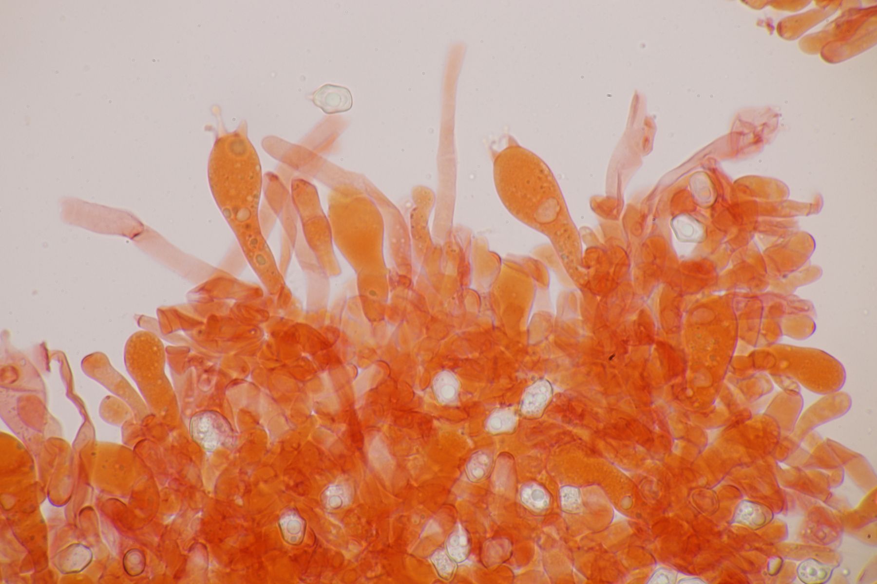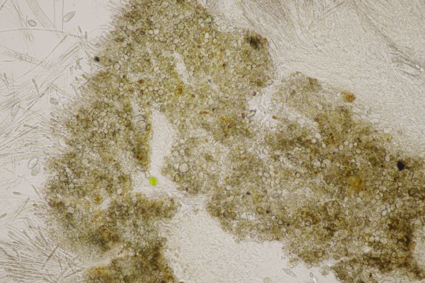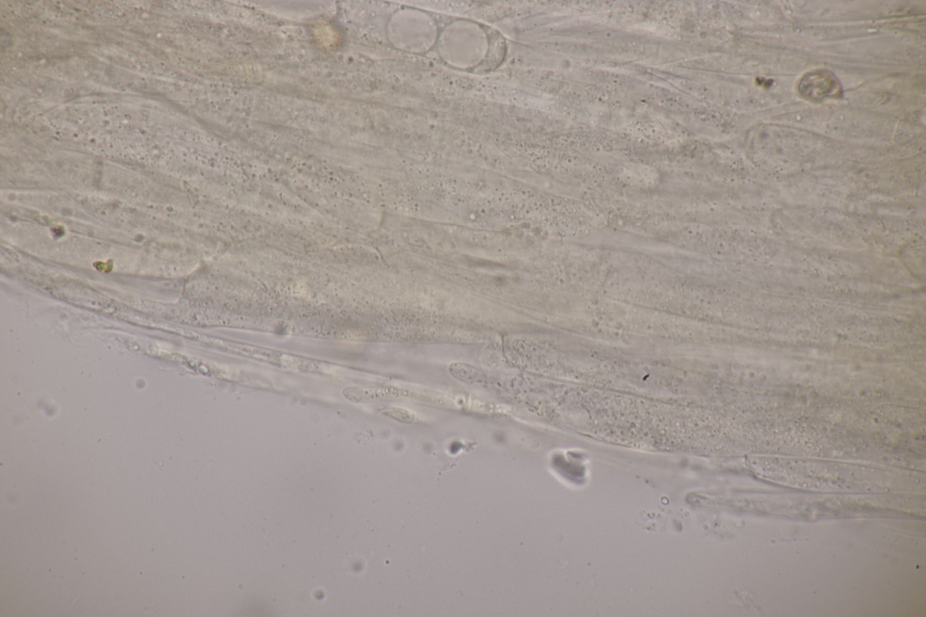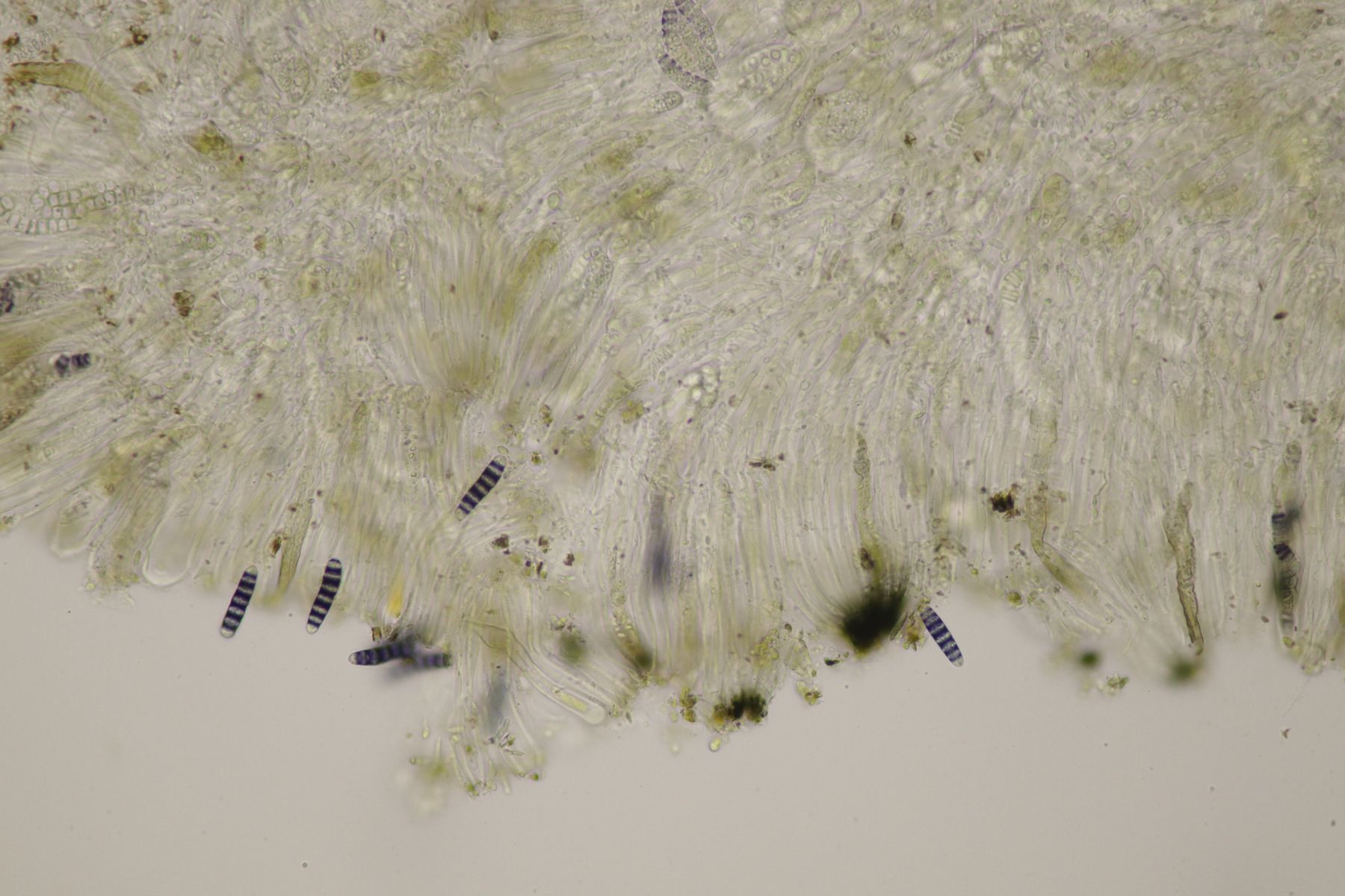 3. In einem Bach auf Holz wuchs neben Vibrissea flavovirens auch dieser Pilz, zu dem mir jede Idee fehlt....