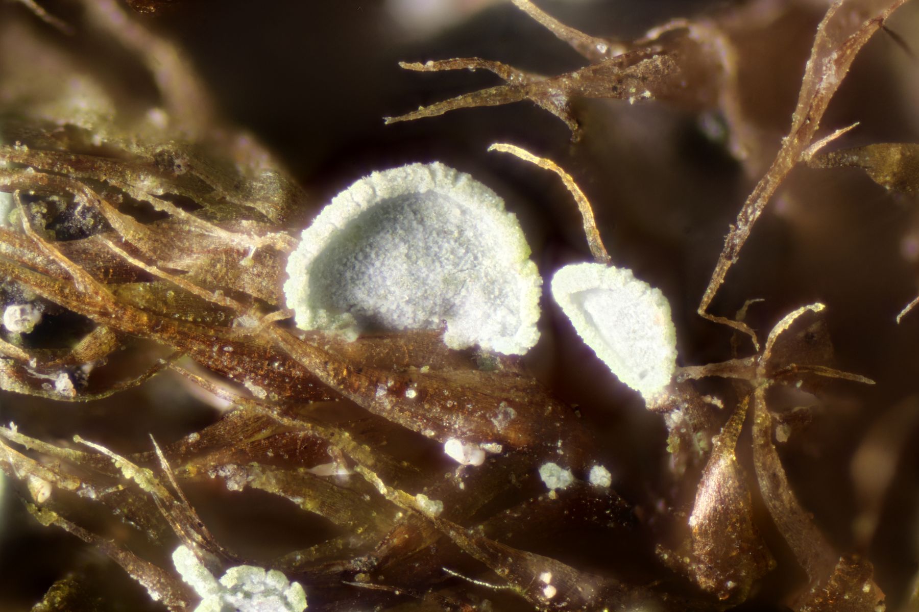 5. Manchmal braucht man etwas Glück und muß sich an den richtigen Baum stellen um Wasser zu lassen. Dann findet man auf einem Moospolster Normandina pulchella